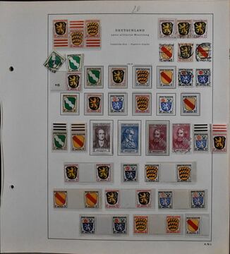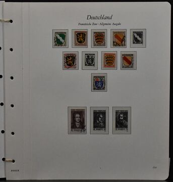 Französische Zone, 1945/49, gest. Slg. mit Allg. Ausgabe Nr. 1/13, Baden Nr. 1/37, 46, Rheinl.-Pfalz Nr. 1/41, sowie Württemberg Nr. 1/39 etc., auf Lindner-Vordrucken. Mi. 1700,-
