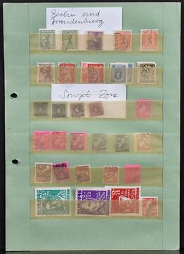 SBZ, auf Steckseiten etwas unübersichtlich aufgezogene Slg. ab Berliner Bär, dabei Ostsachsen und Provinz Sachsen, auch Zähnungsbesonderheiten, Zus.-Dr. usw.