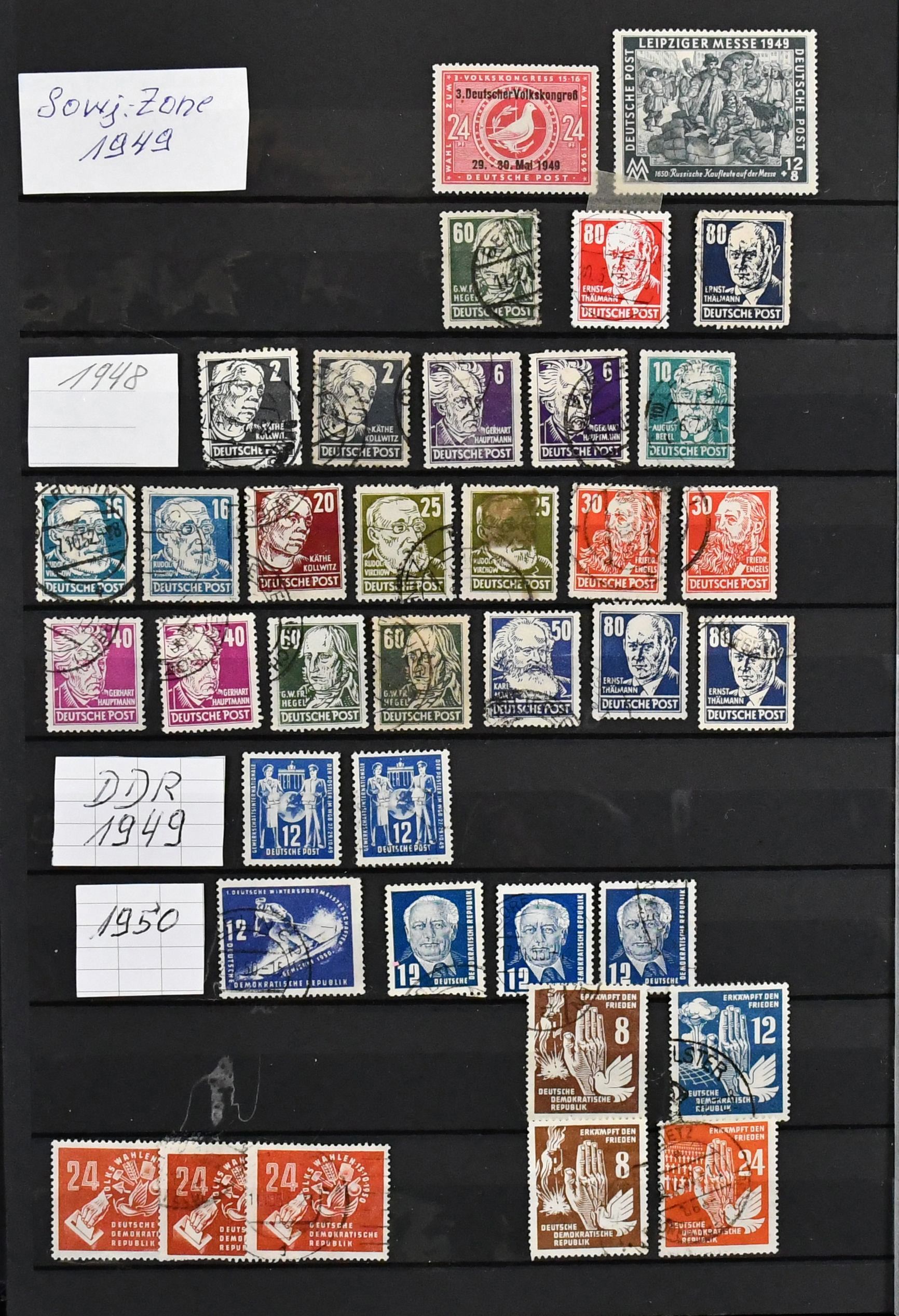 DDR, 1949/1990, umfangreicher, gestempelter, sortenreicher Bestand mit vielen, insbesondere in den 50er Jahren, bedarfsgestempelten Ausgaben. Dabei die ersten Jahre besonders stark (Mi. bis 1959 bereits 14.000,-) inkl. Nr. 242/59 mehrf., mehrere Akademie-Sätze, 17 Chinesen-Werte, reichlich kpl. Sätze usw. Mi. gesamt ca. 29.000,-, dazu sicherlich noch der ein oder andere Plattenfehler, so von uns auf Anhieb Nr. 284I (Mi. 250,-) entdeckt