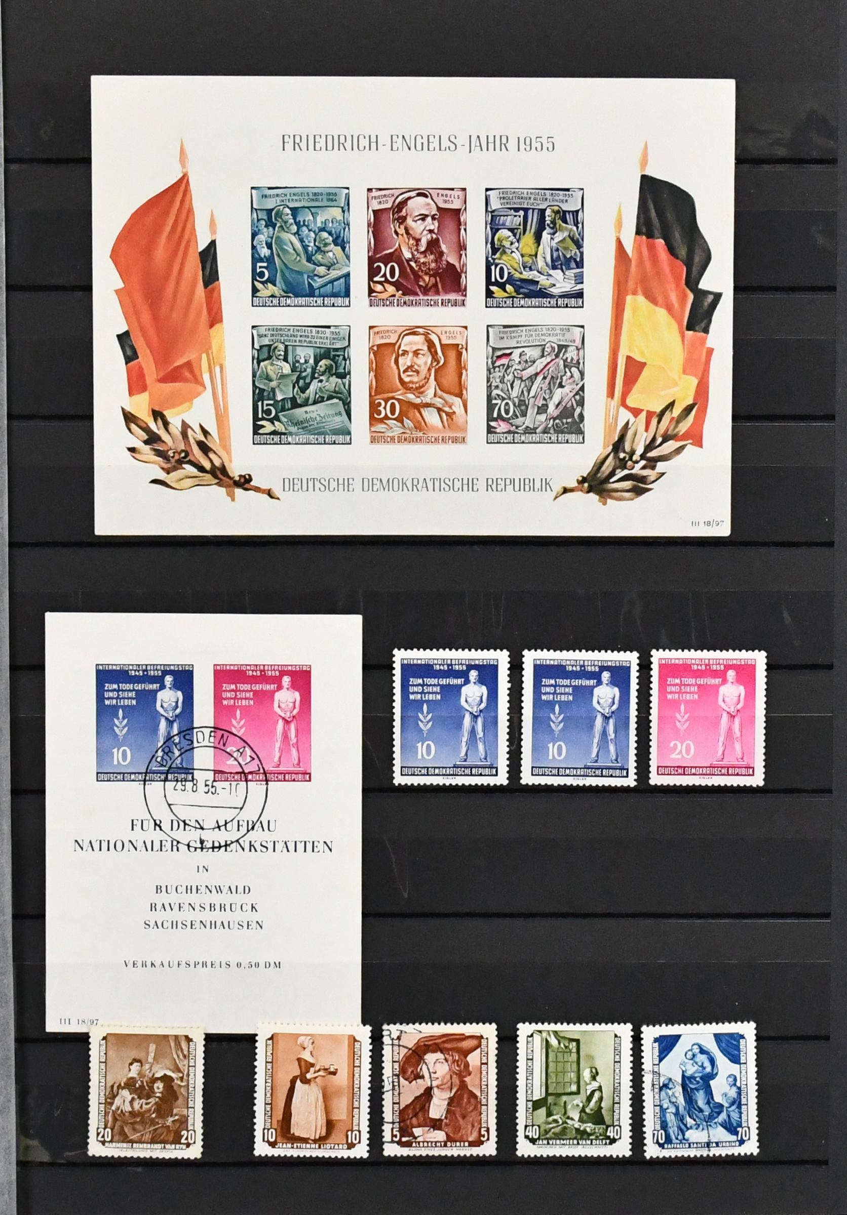 DDR, 1949/1990, umfangreicher, postfr. und gest., anfangs etwas ungebr. Bestand ab Nr. 242, chronologisch in sechs dicken Alben. Dabei eine riesige Anzahl kpl. Sätze, rund 800 Blöcke u. Kleinbögen, bessere Ausgaben wie Nr. 261/70 postfr., Bl. 7 gest., etliche Male Nr. 284/88, fünf Marx-Blöcke, Bl. 11/15 mehrf., usw. Mi. 22.000,-
