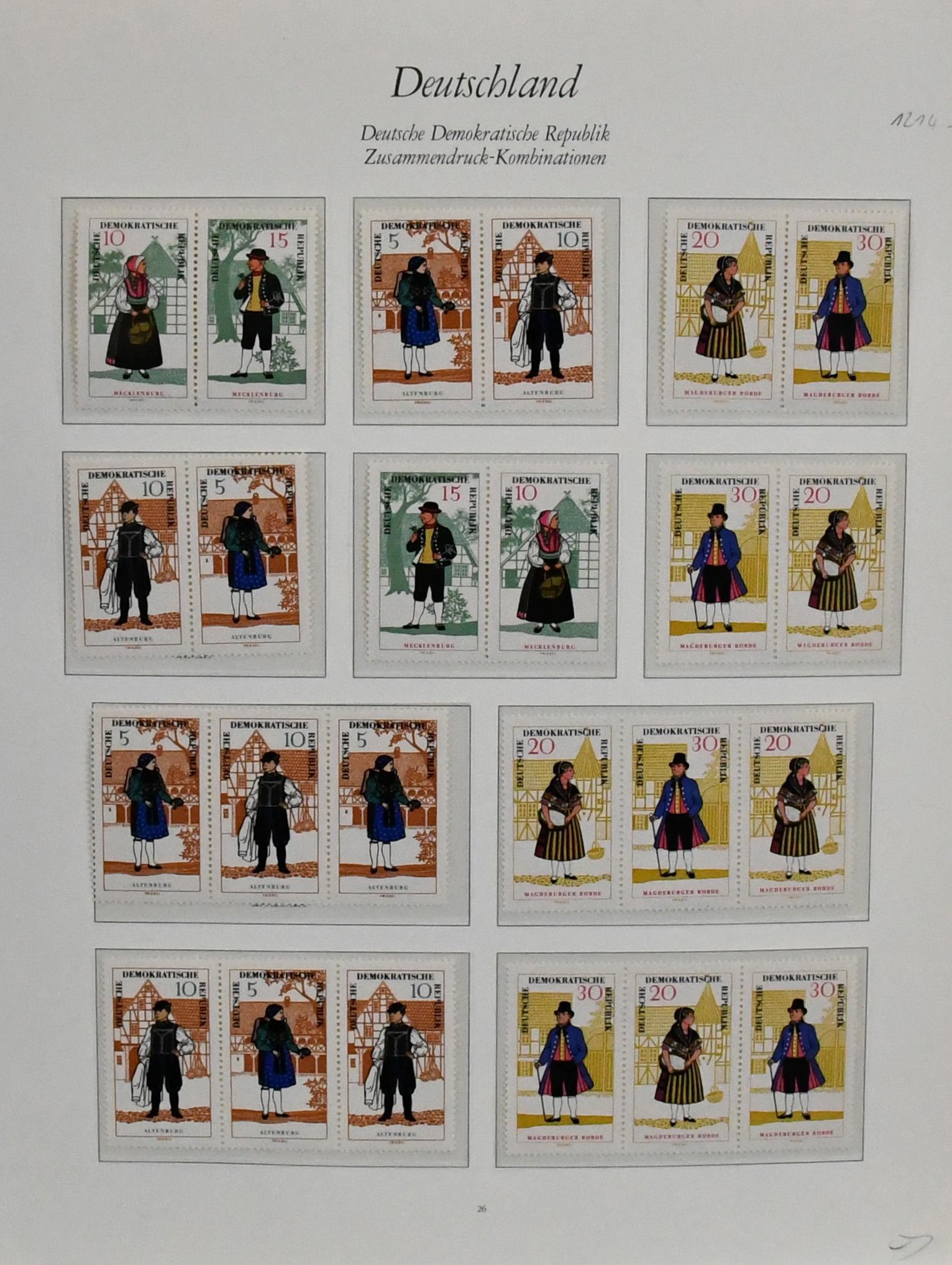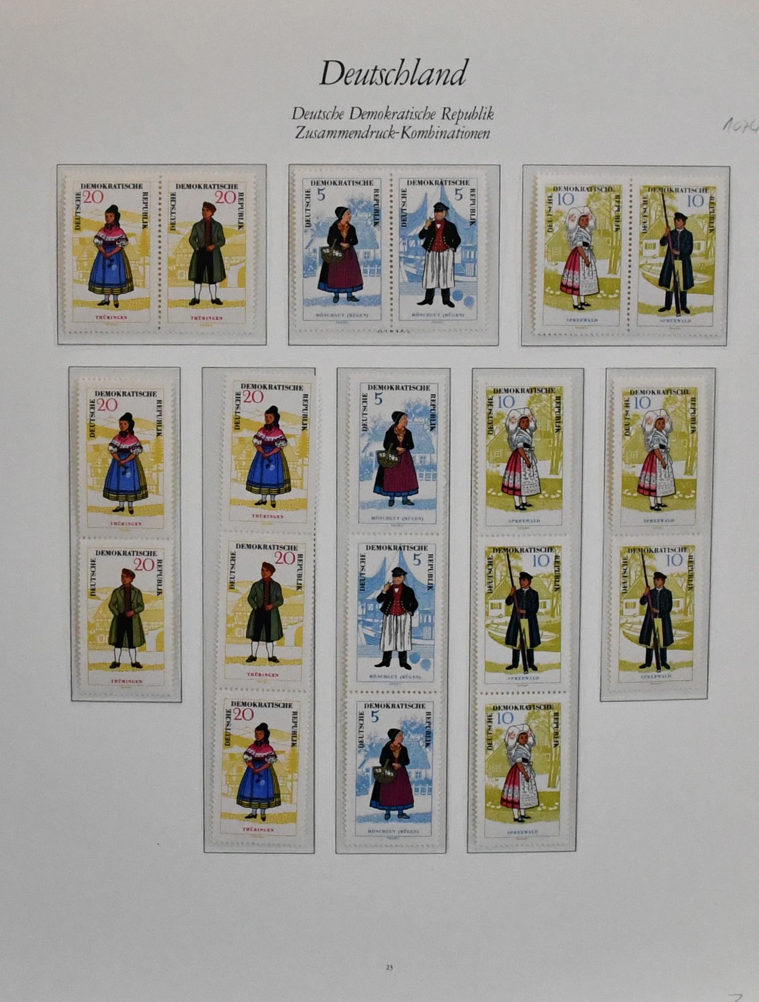 DDR, 1955-90, Zusammendrucke, saubere, zweibändige postfrische Spezialslg. ab Fünfjahresplan, mit den guten Zus.-Dr. der 60er Jahre wie Weltraum, Olympia, Trachten, Pioniere usw. Michel fünfstellig!