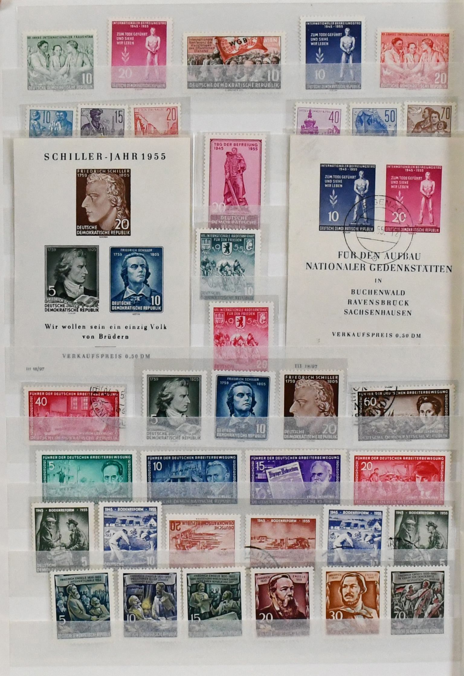 DDR, ca. 1949-1960, Partie nur guter Ausgaben, u.a. mit zweimal Bl. 7 gest., drei gest. Marx-Bl., fünfmal Bl. 10 inkl. XI postfr., gepr., PF III postfr., 10mal Bl. 12 (u.a. PF IV per vier), 11mal Bl. 13 postfr., vier gest. Serien Nr. 261-70, Chinesen Nr. 286-88 sechsmal gest. usw. Reizvolle Partie nur mit guten Ausgaben