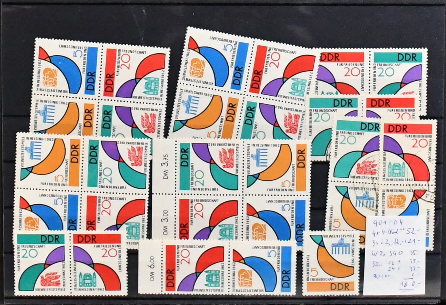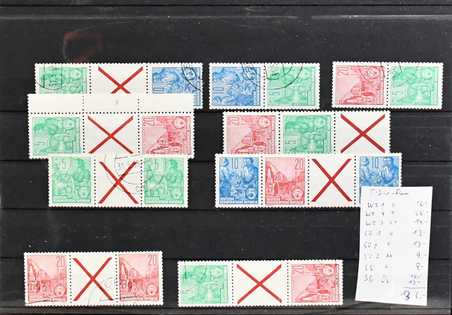 DDR, Zusammendrucke, postfr. und gest. Slg. mit u.a. 16 Zus.-Drucken 5-Jahresplan, div. postfr. Zus.-Drucken ex Nr. 1074/79 inkl. besseren, div. postfr. Zus.-Drucke ex Nr. 1012/13 usw. Mi. 1500,-