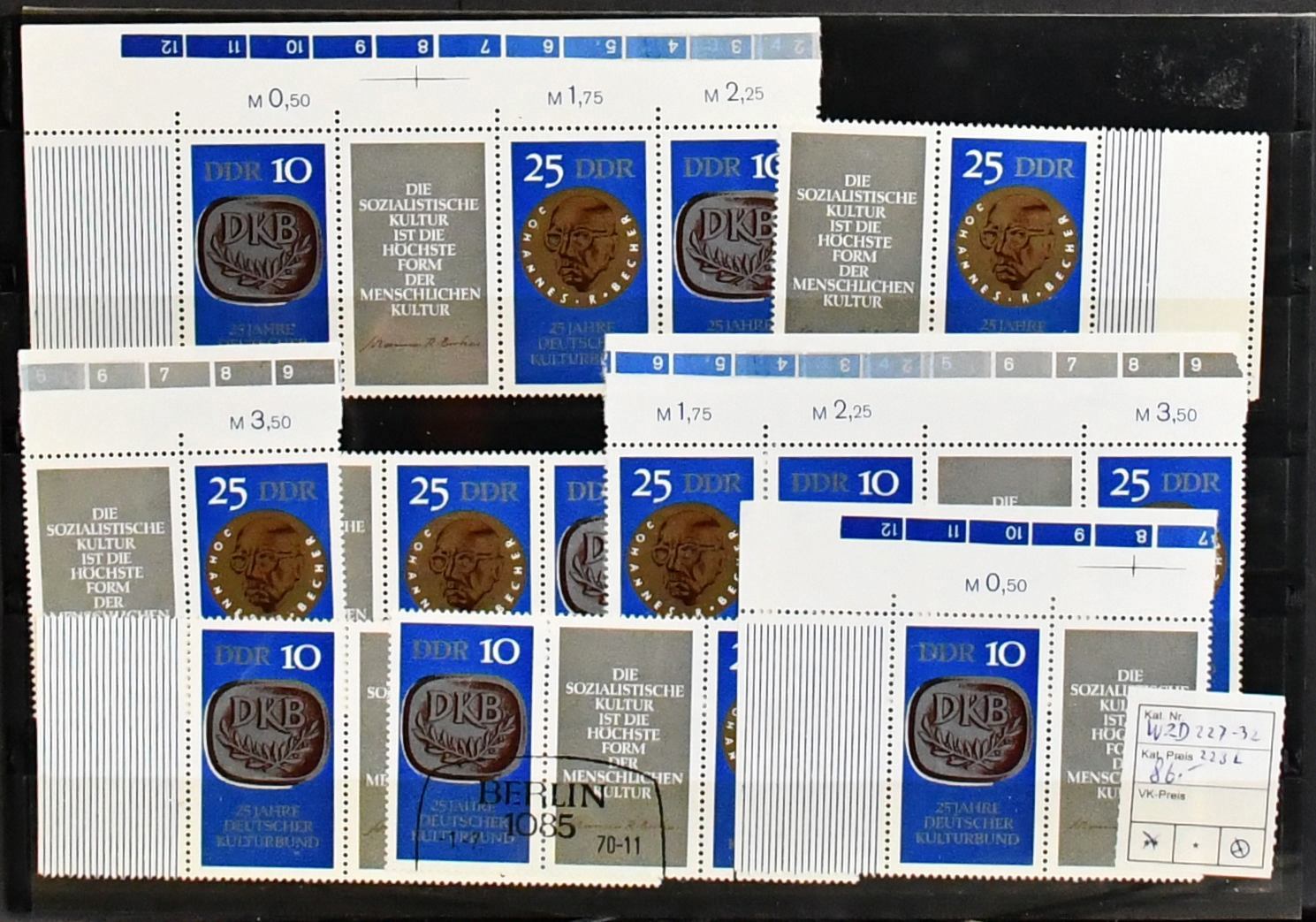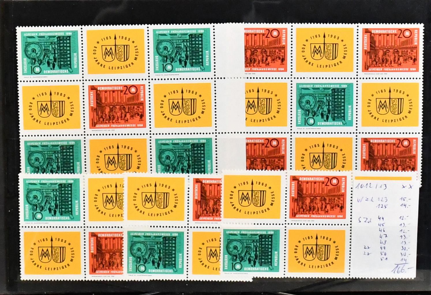 DDR, sammlungsähnlicher Lagerbestand Zusammendruck-Kombinationen ab 5-Jahresplan, mit vielen Zus.-Dr., Herzstücken `57, teils mehrfach, Rosen mit Stegen u. Randvarianten etc., bis Neuzeit, dazu Ulbricht mit Spezialteil u. gepr. Wasserzeichen, Rollenmarken, Ränder u.v.m., sicherlich Fundgrube mit sehr hohem KW