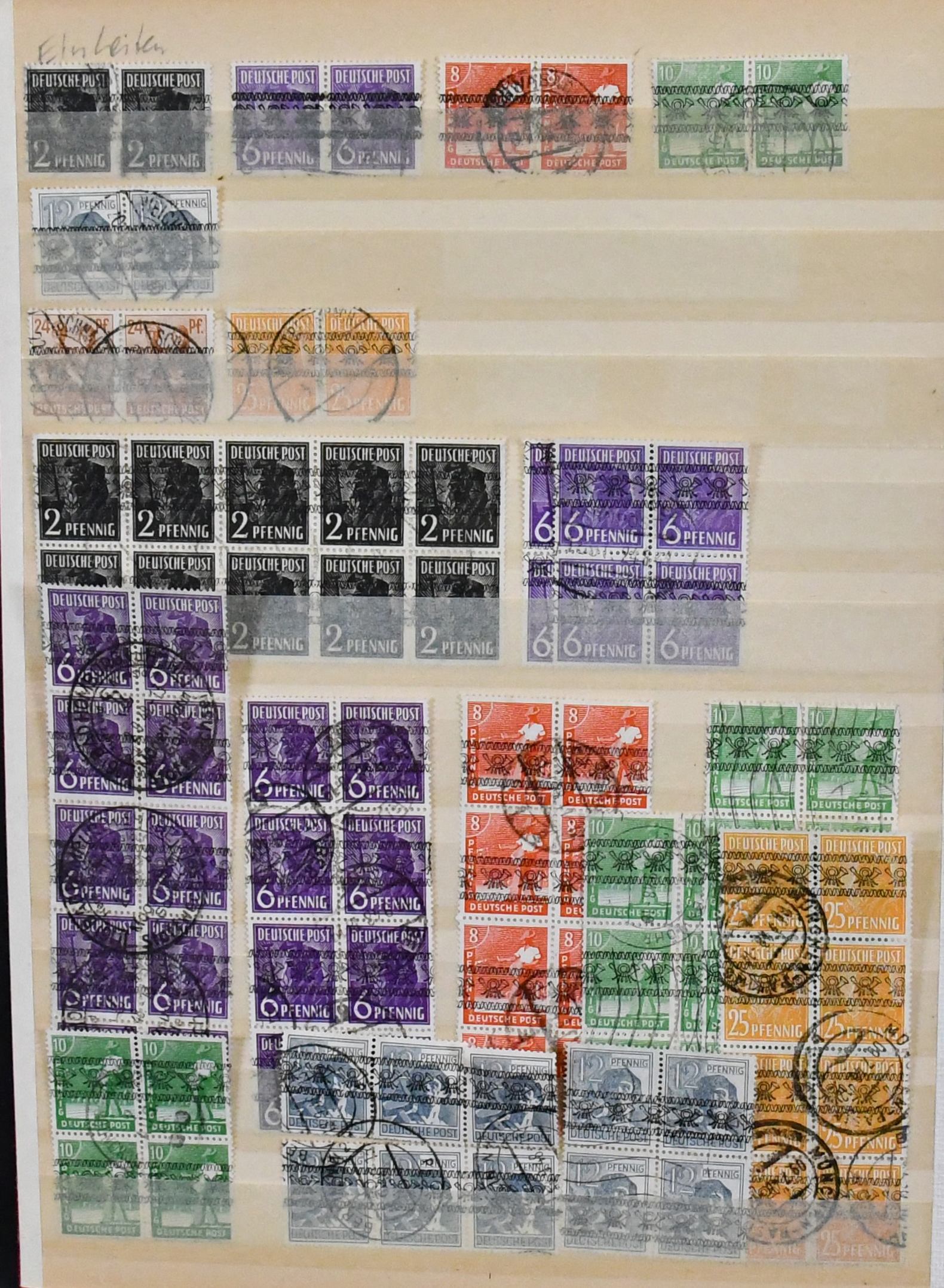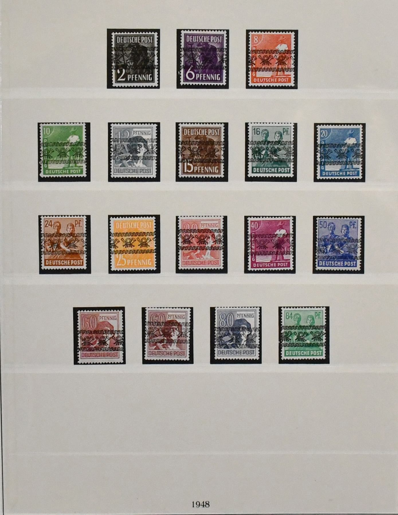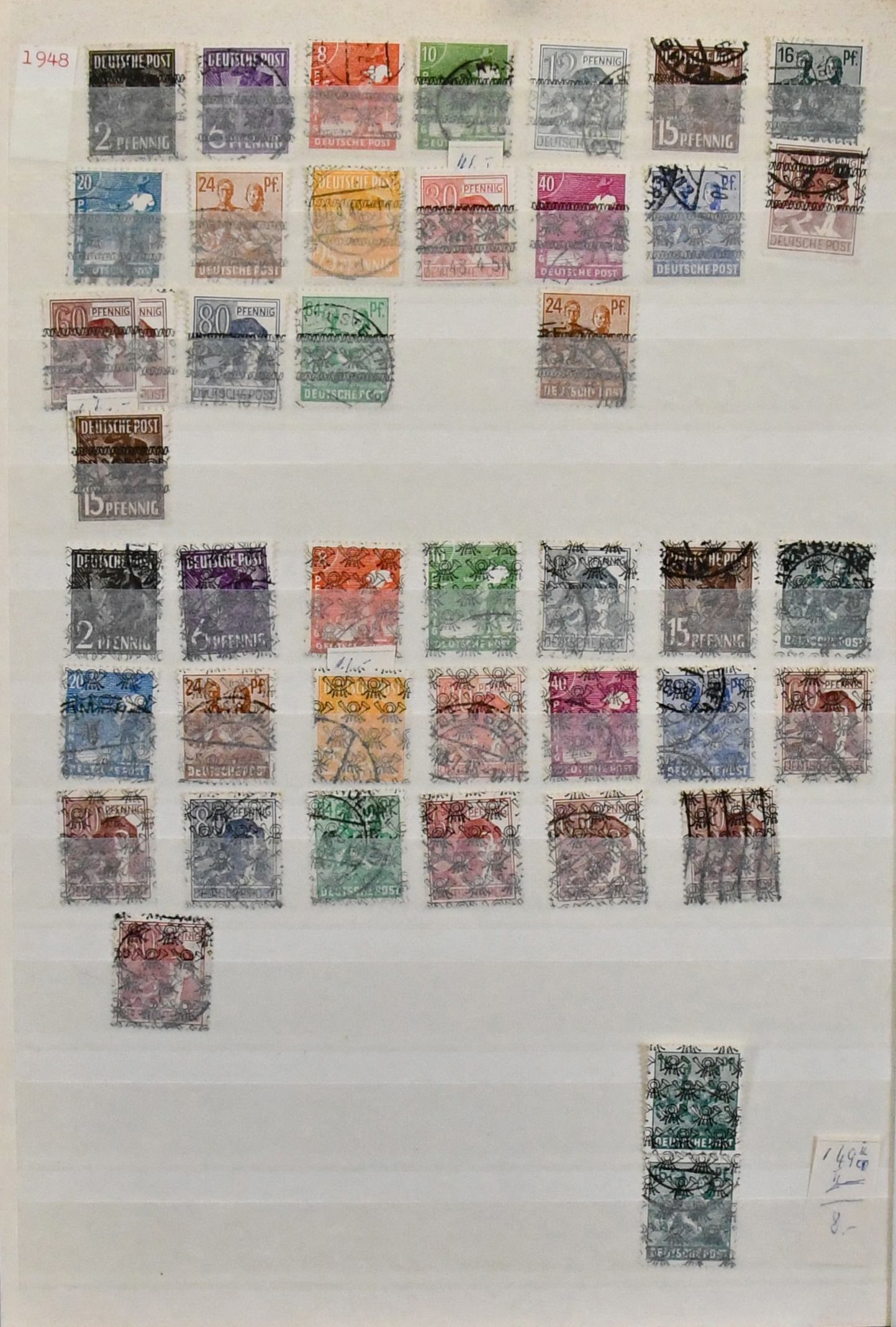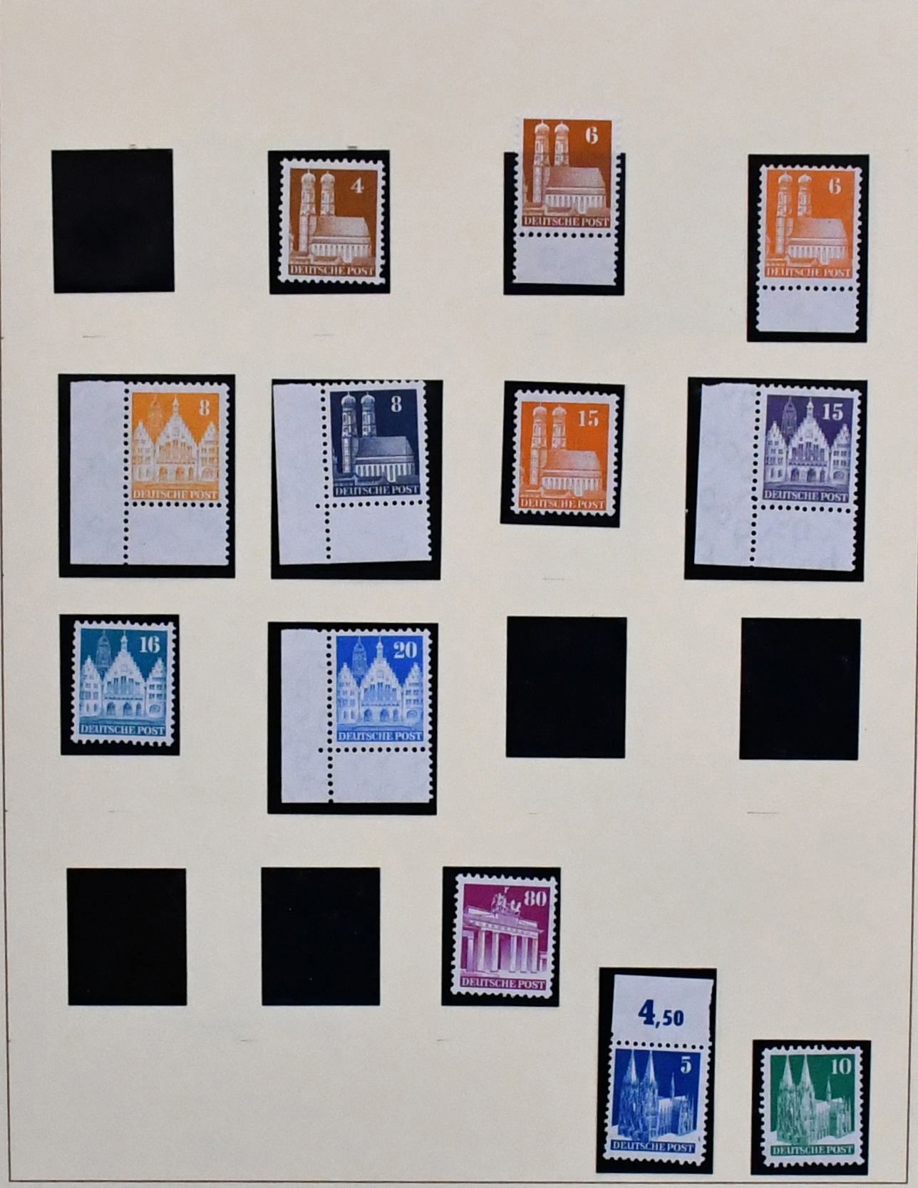 Bizone, parallel in beiden Erhaltungen geführte Sammlung, dabei AM-Post je überkpl. (Nr. 34 ungebraucht), Posthorn-Aufdrucke auf Arbeiter-Serie je kpl., postfr. Nr. 49I gepr. Schlegel, Bauten postfr. (Nr. 97G u. 100I ungebr.) kpl. in enger und weiter Zähnung mit Mark-Werten in Type I, gest. ebenfalls kpl. mit beiden Typen der Mark-Werte und Nr. 101/10, ohne gest. Bl. 1, je kpl. Mi. über 3000,-, günstig!