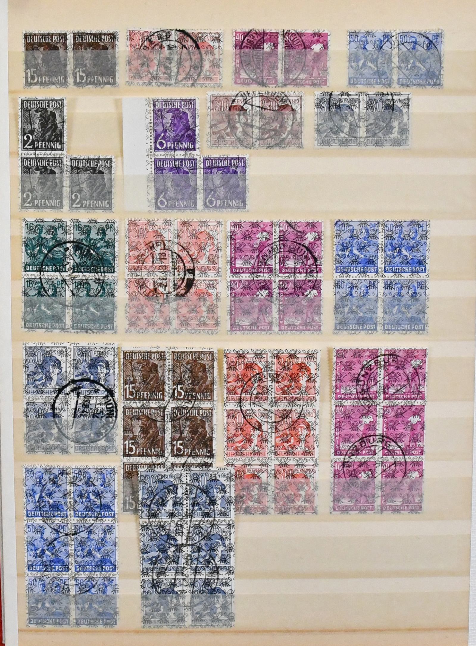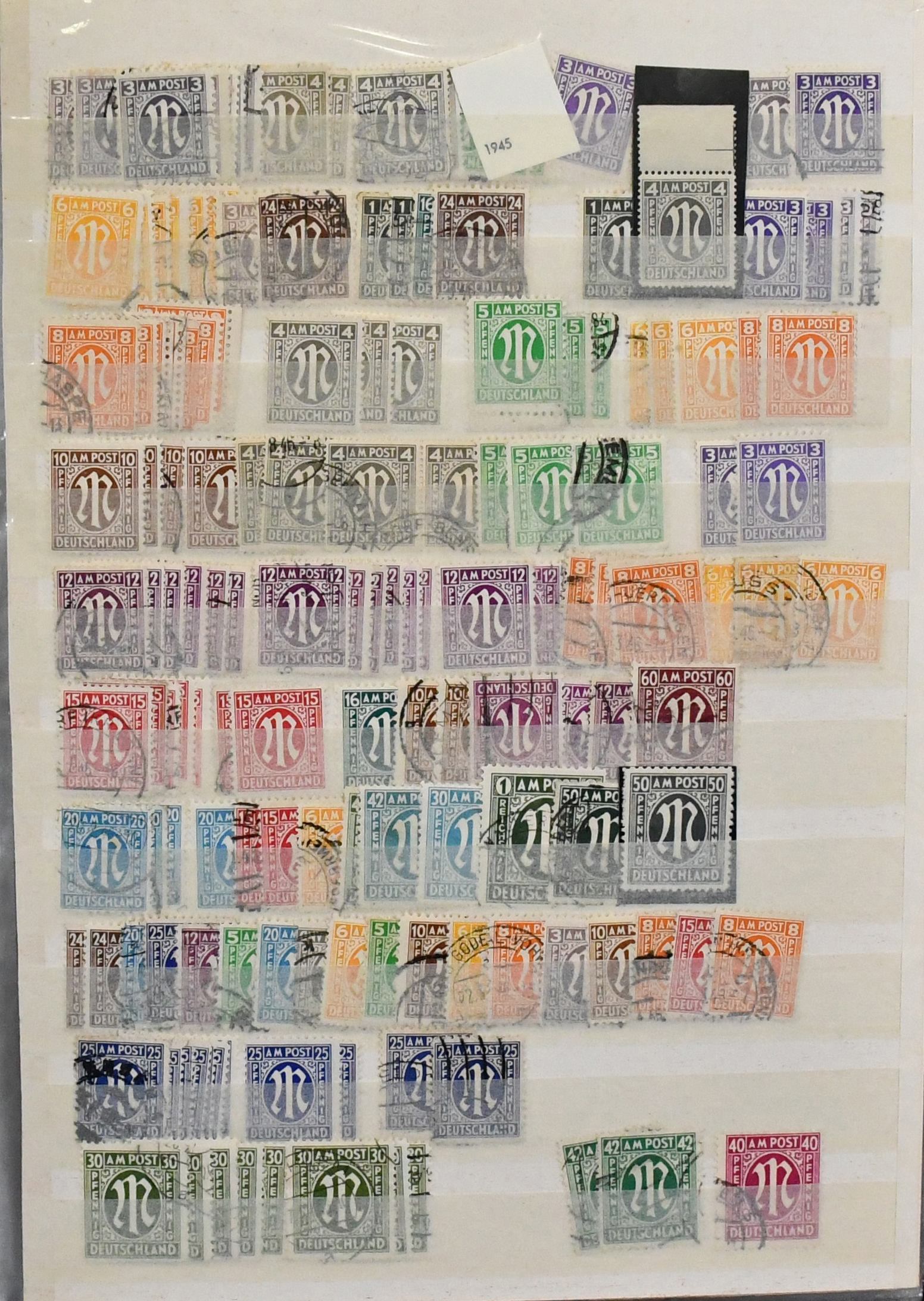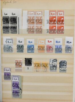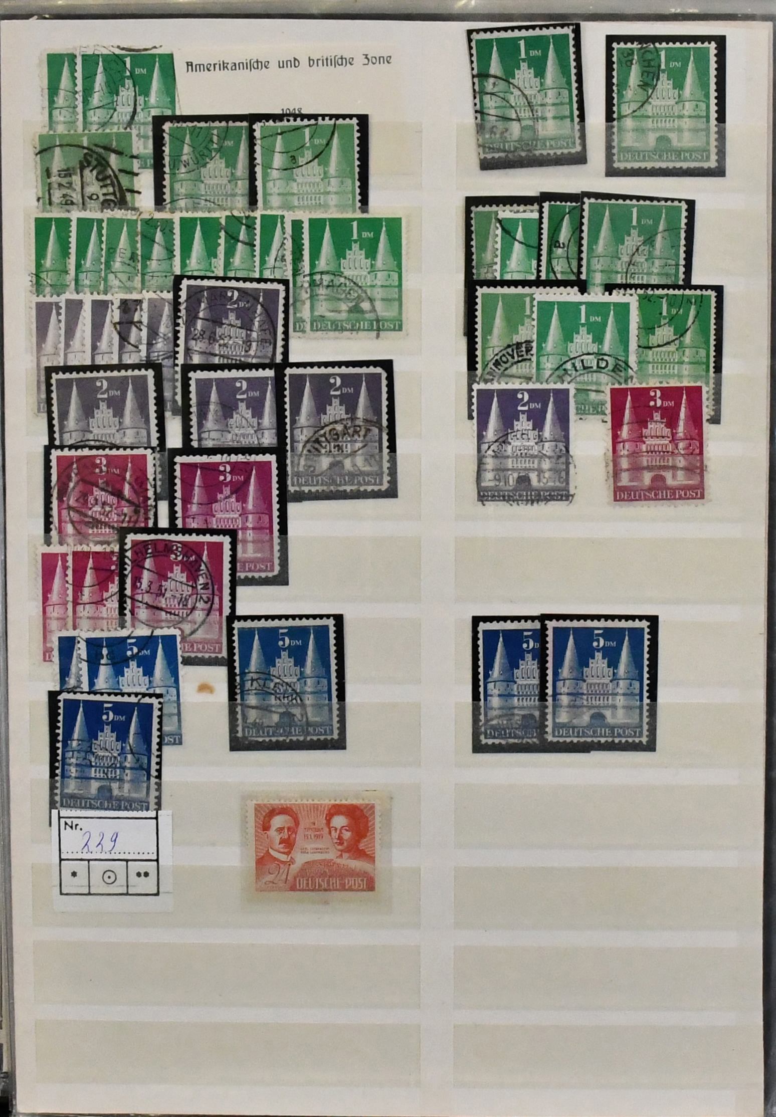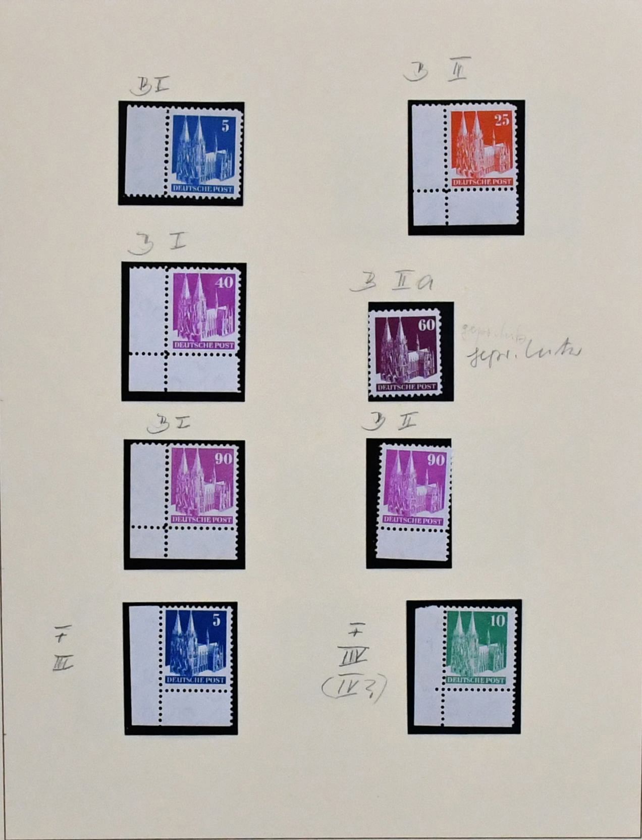 Bizone, 1945/49, gest. Slg. mit AM-Post nach Zähnungen spezialisiert, inkl. Nr. 34 mehrf. und einer Nr. 35 (alle ungepr.), Nr. 69/72 mehrf., Bauten spez. bis 5 Mark, Nr. 101/10, Bl. 1 mit Ortsstempel (Mi. 350,-) usw.