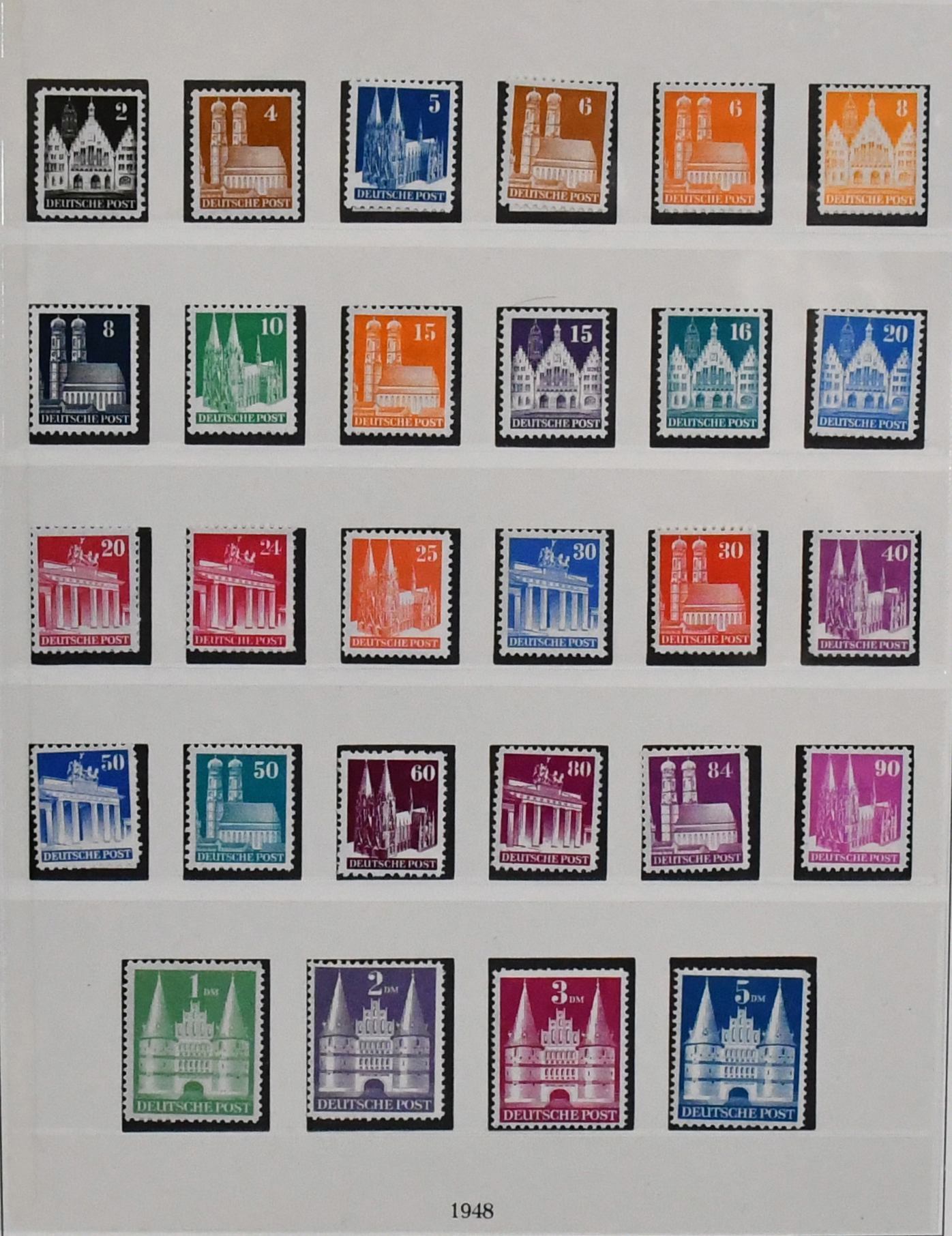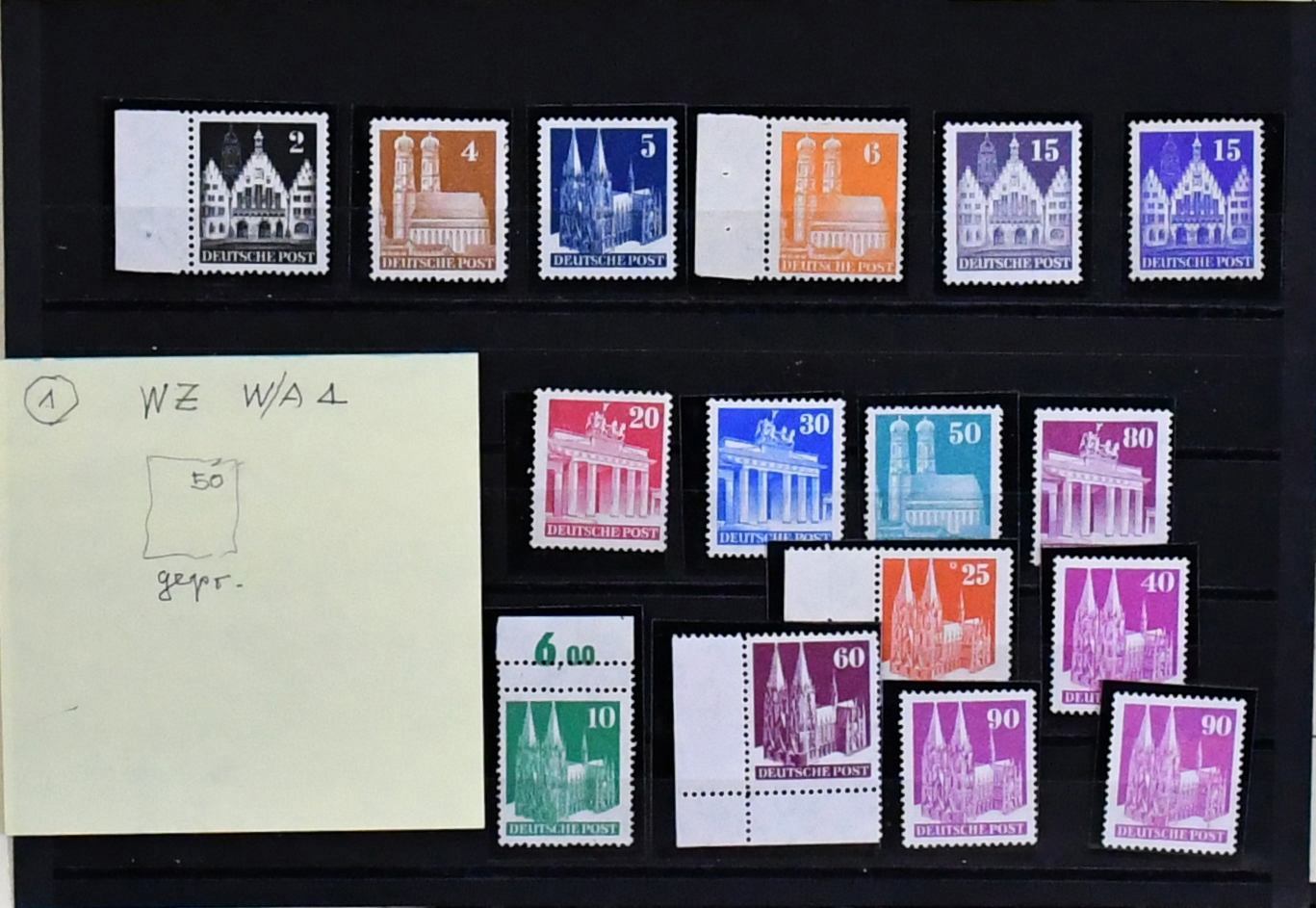 Bizone, Bauten, Mark-Werte in Wz. "Y", "kurze Treppe", 13 postfrische und vier ungebr. Werte, vierstelliger KW!