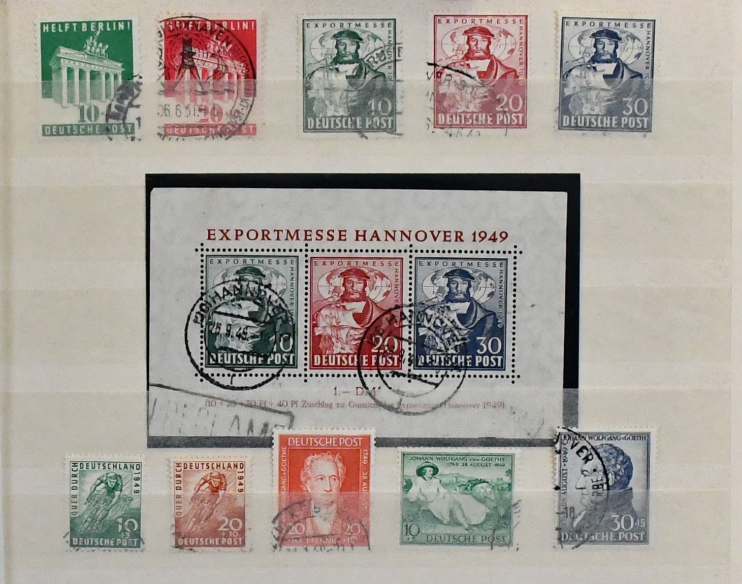Bizone, 1945/49, gest. Slg. ab AM-Post, mit Nr. 1/35 inkl. zweimal Nr. 34/35 (ungepr.), 36/51I/II, 16 Werte ex Nr. 52/68I/II inkl. Nr. 53I u. 59II, Bauten spezialisiert, 101/10, Bl. 1 mit SST etc. Mi. 3200,-. Aufgrund der ungeprüften Stempel entsprechend vorsichtig taxiert