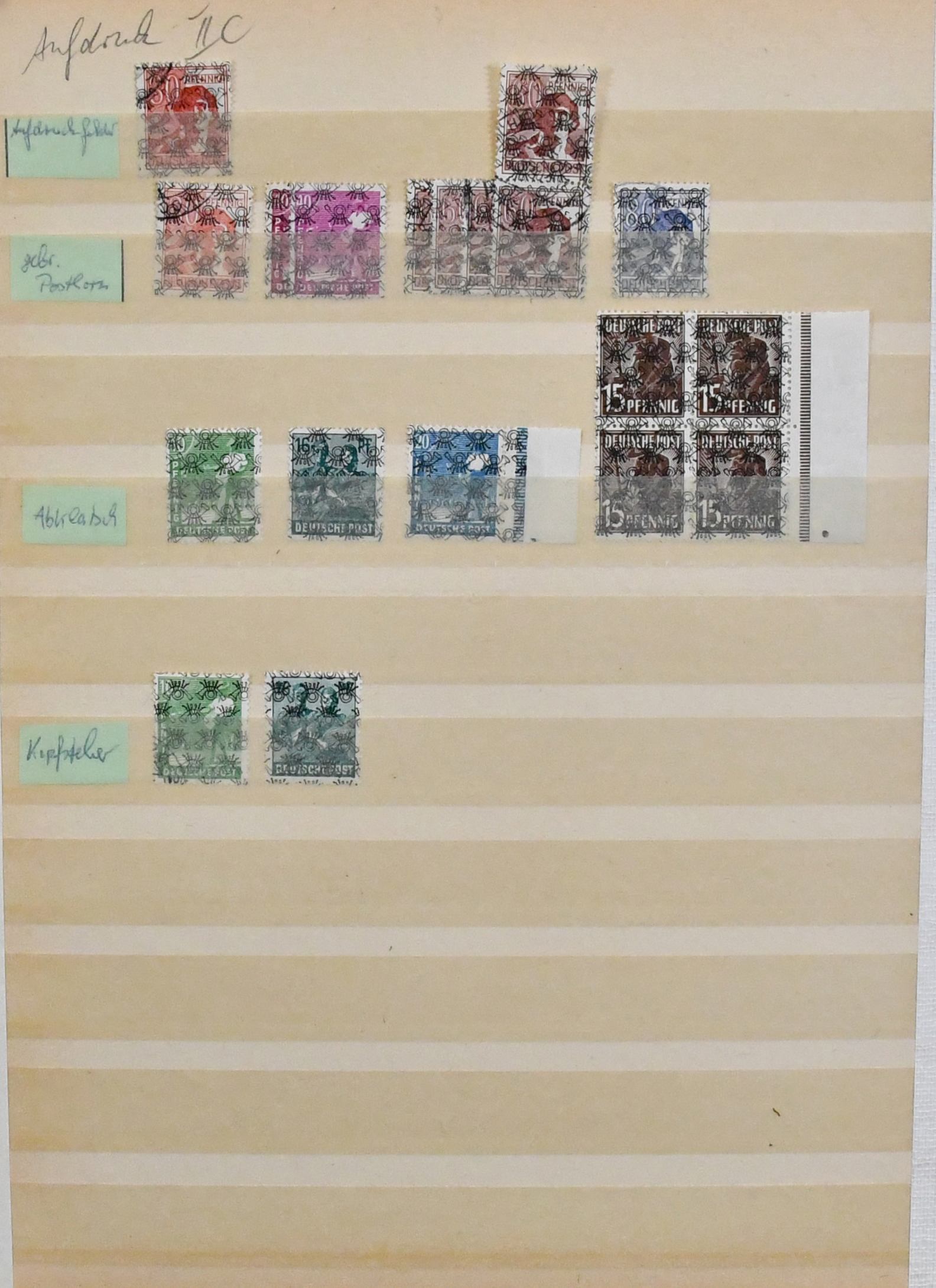 Bizone, Band-/Netzaufdrucke auf Arbeiter-Ausgabe, spezialisierte Slg., postfr. und gest., u.a. mit Nr. 36/51I postfr. inkl. Nr. 49I, Aufdruck-Typen und -Fehler, Einheiten postfr. u. gest., Oberränder usw., insgesamt 400 Werte. Dazu sieben versch. Werte ex unverausgabte Nr. I/IX ungebr., sowie Bl. 1 postfr., gepr. Schlegel