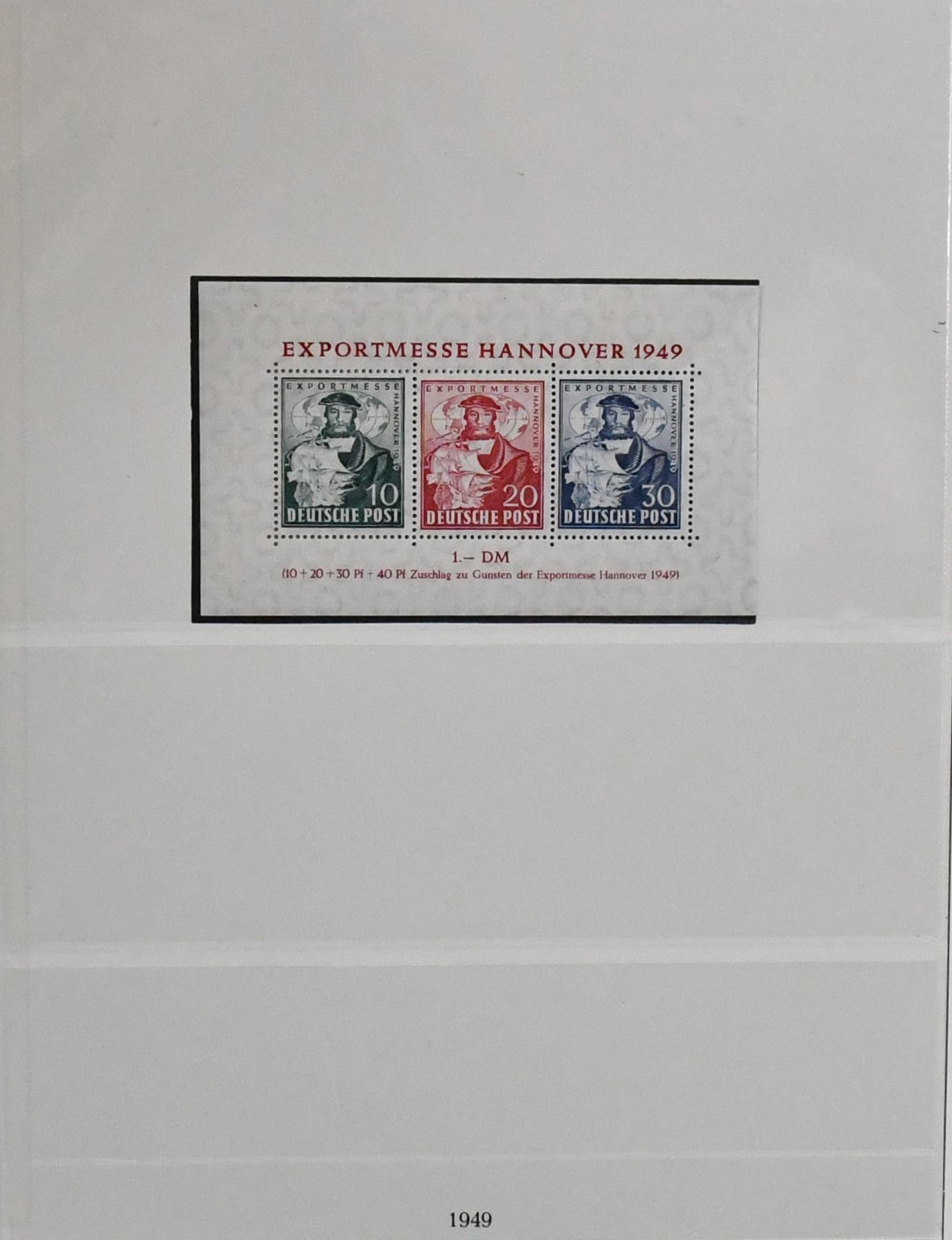 Bizone, postfr. Slg. ab Nr. 1/35, mit Nr. 36/51I/II inkl. Nr. 49I evtl. in b-Farbe (Mi. billigste Farbe schon 153,-), Bauten mit Nr. 87/97eg (Mi. 690,-), Bl. 1 (140,-), Nr. 101/10 usw., auf Lindner-Vordrucken