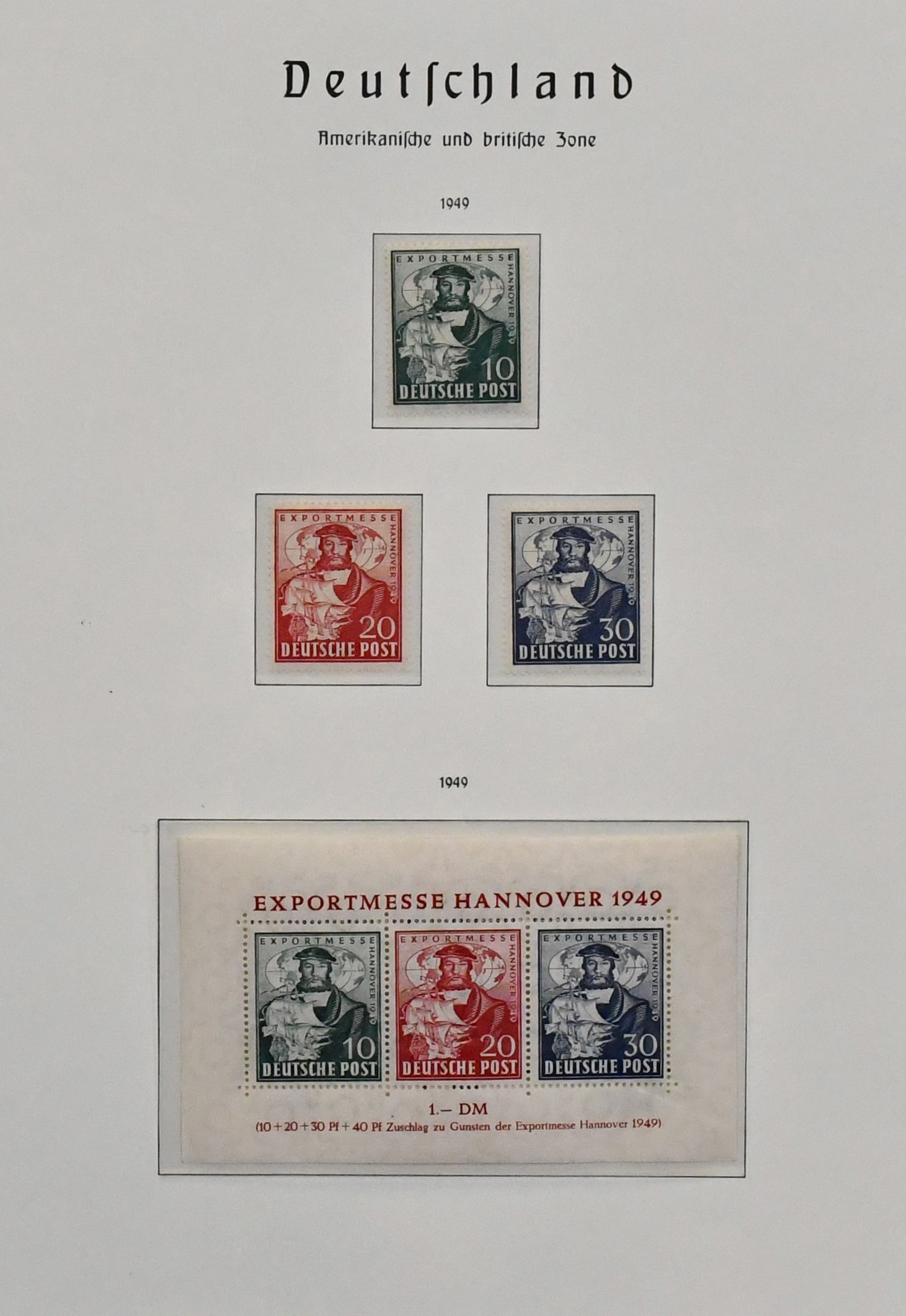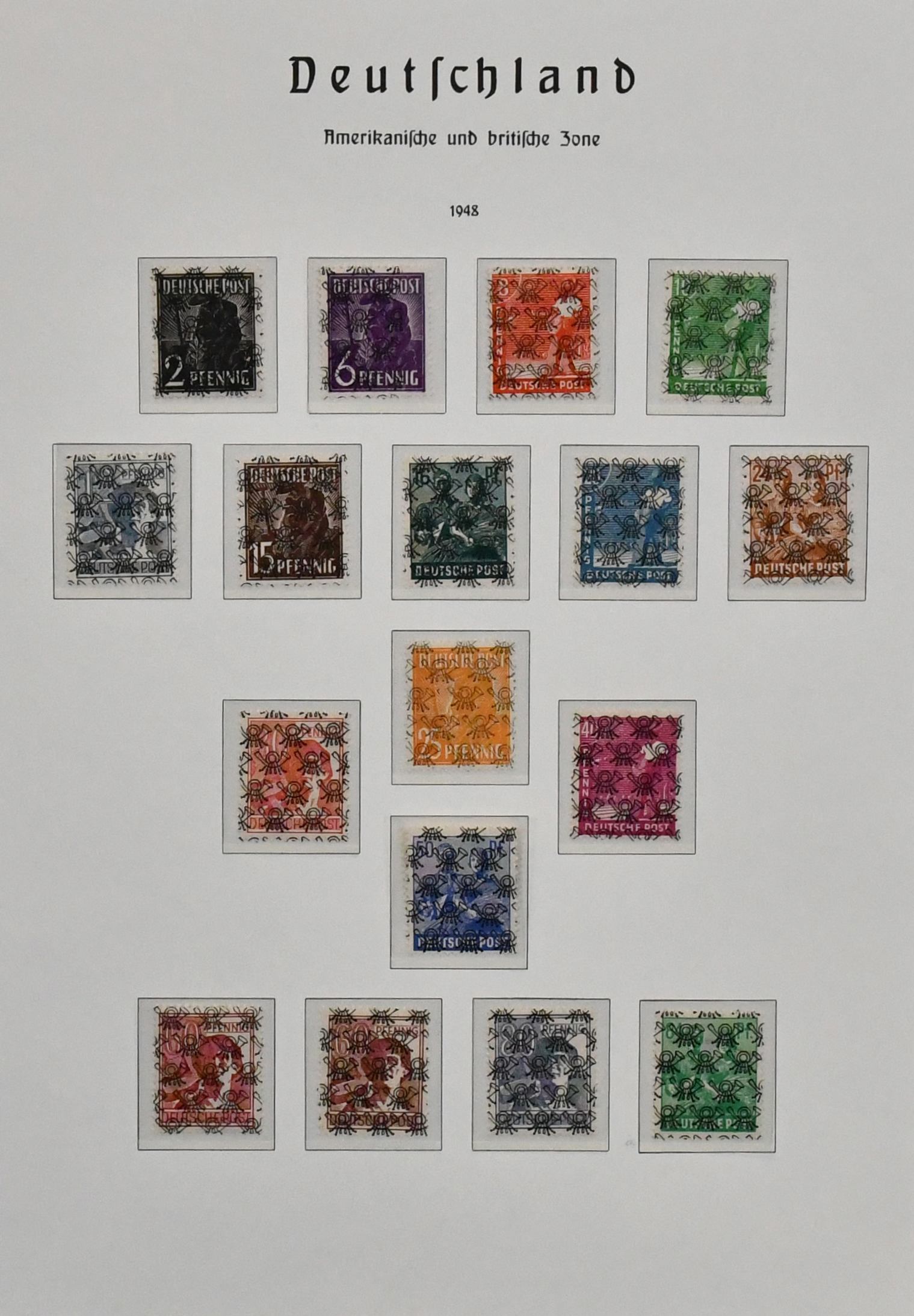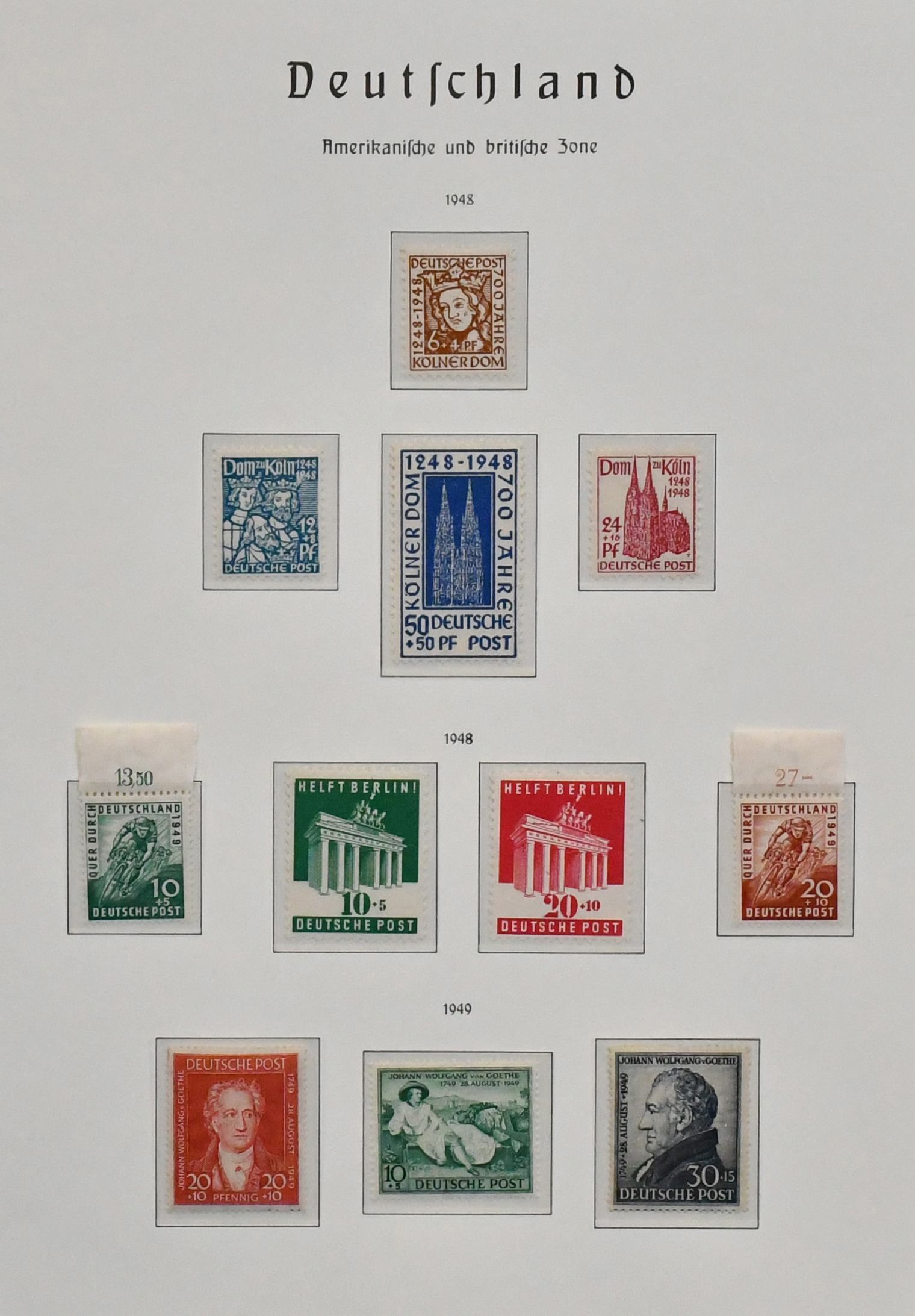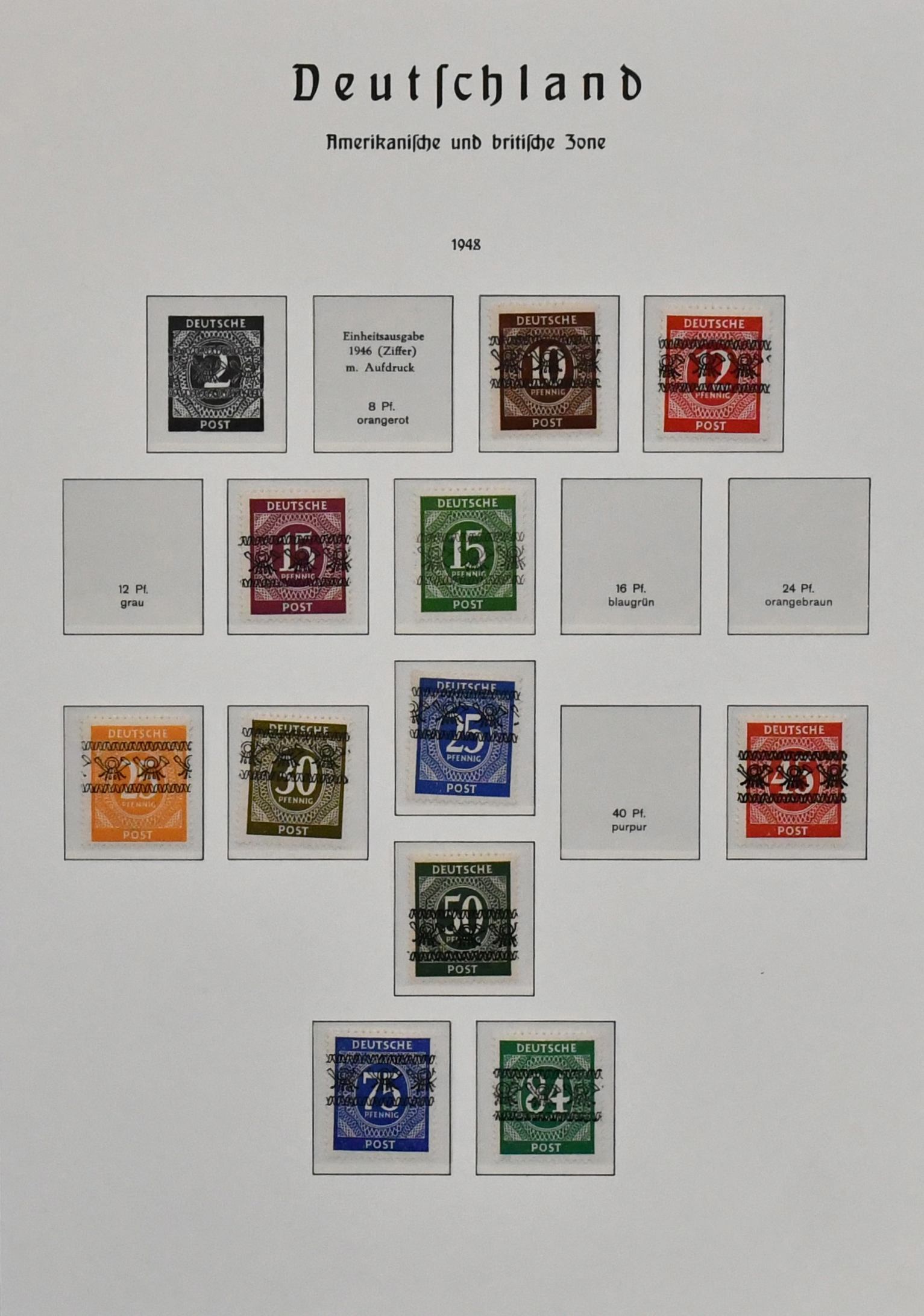 Bizone, 1945/1949, zumeist postfr. Slg. ab AM-Post, mit Nr. 36/51I/II (ohne Nr. 49I), Nr. 73/100wg (teils ungebr.), 101/10, Bl. 1 (ungebr.) usw., auf Leuchtturm-Vordrucken. Dazu Gemeinschaftsausgabe postfr. kpl. inkl. Bl. 12A/B