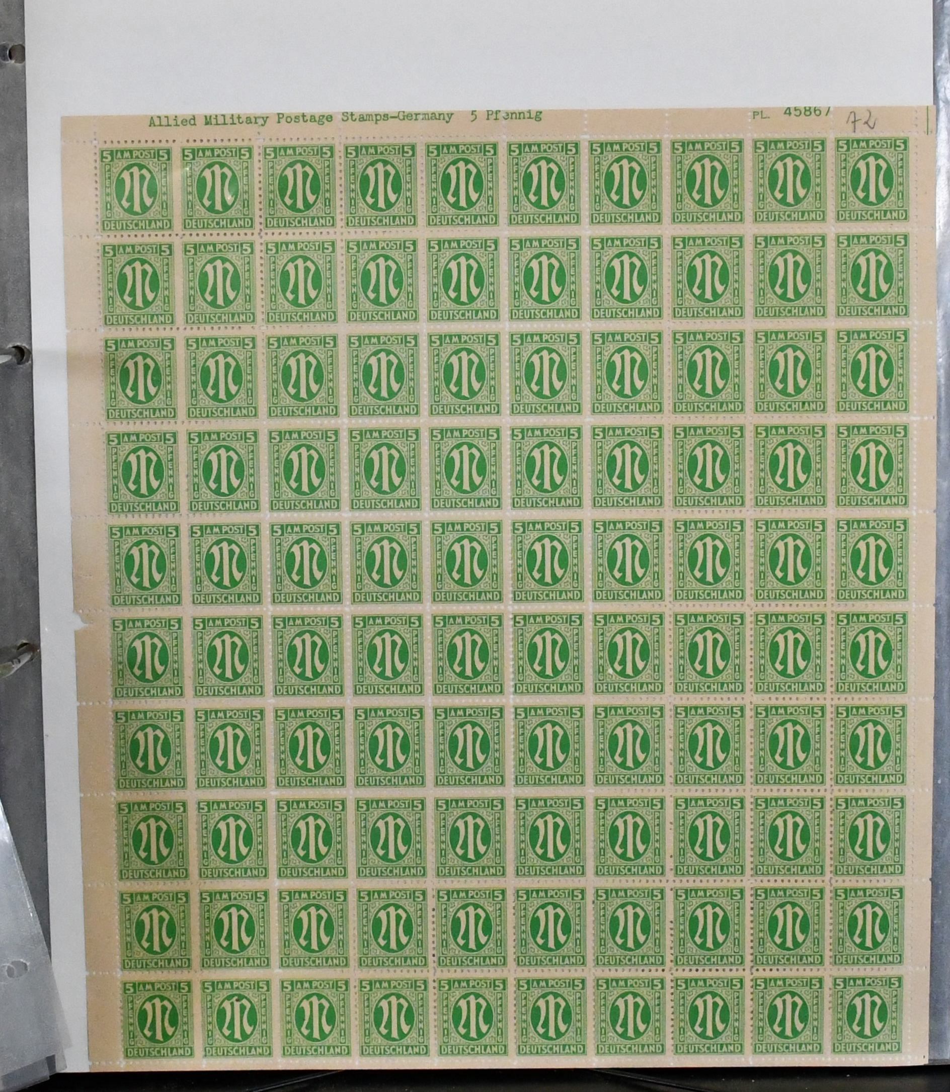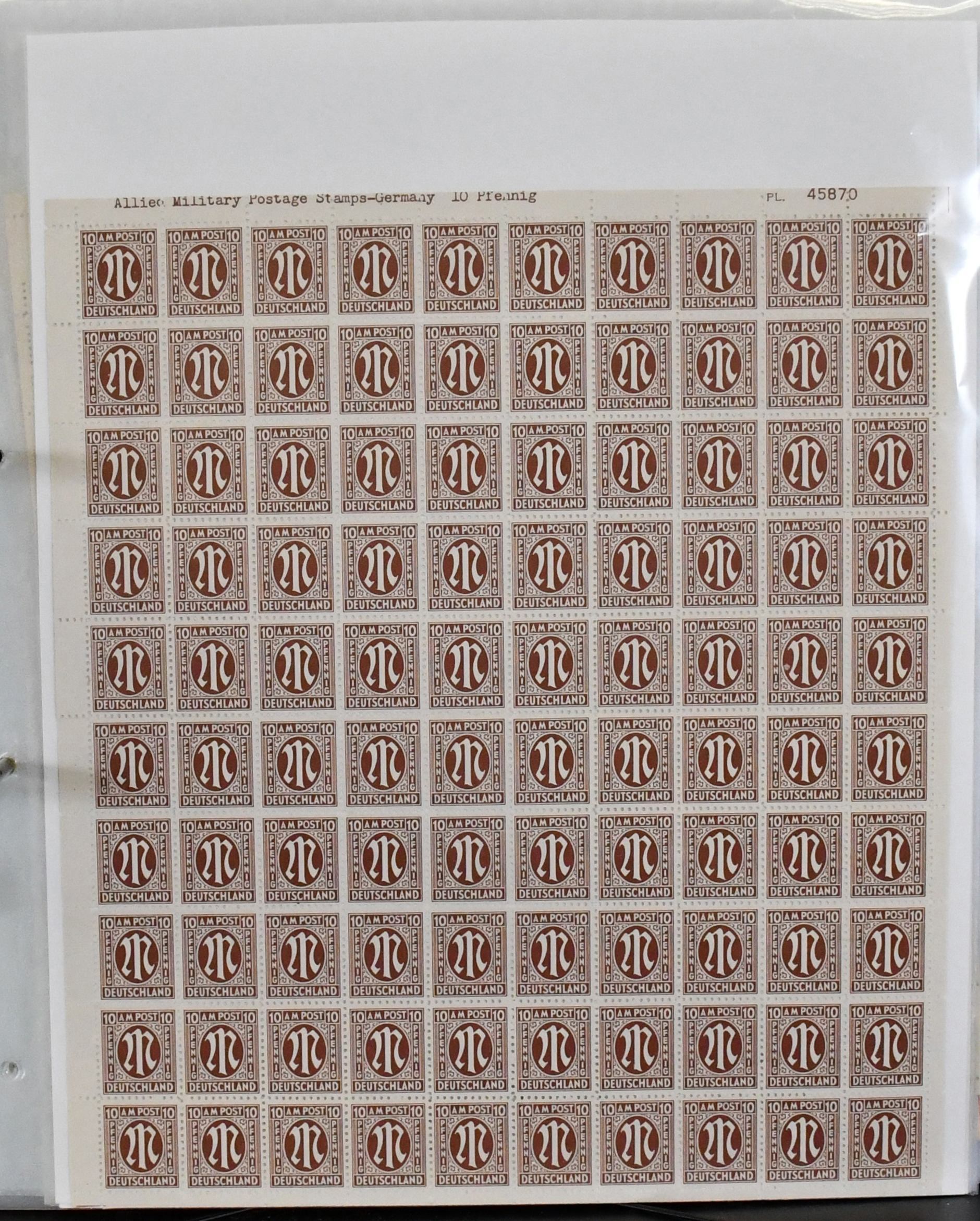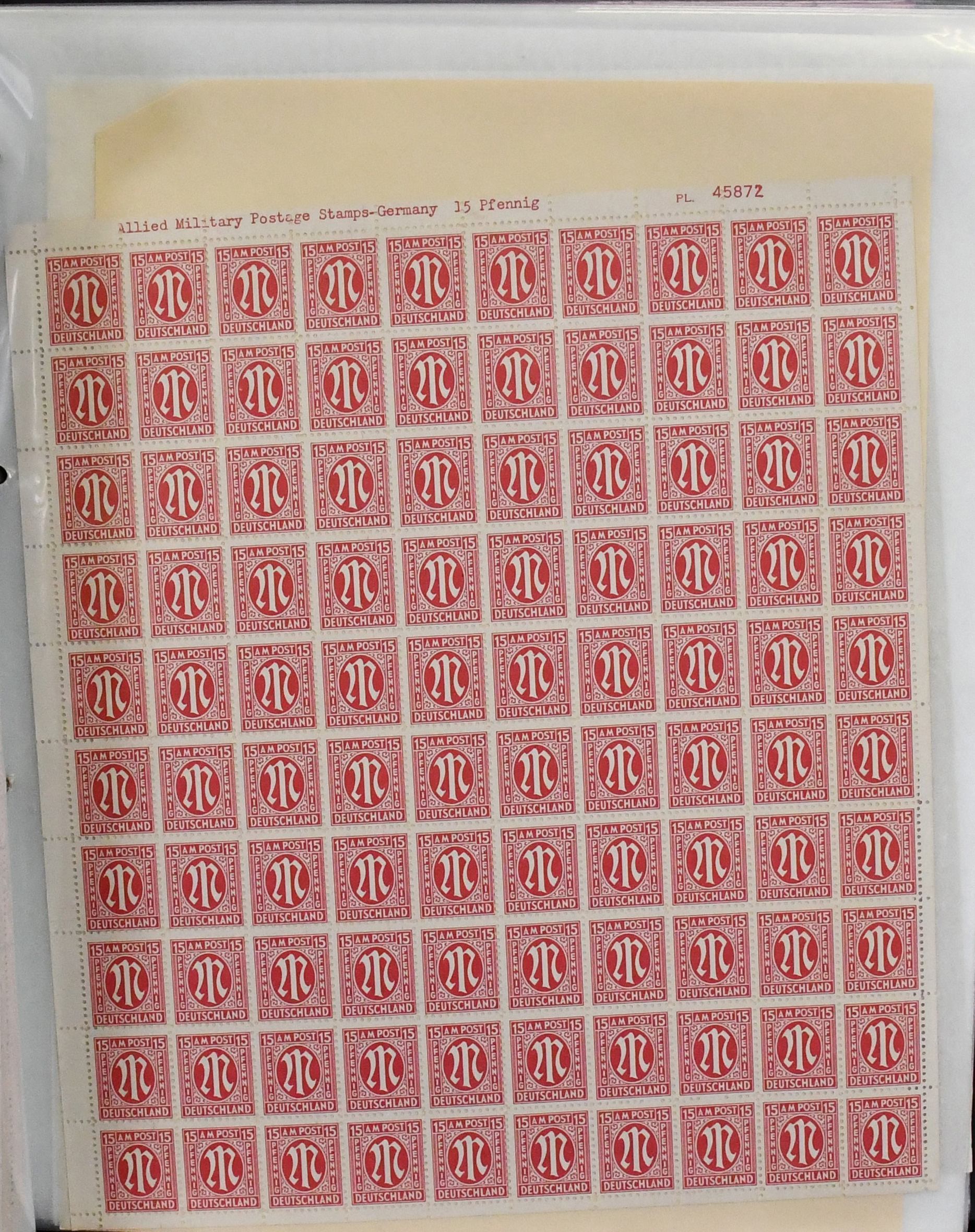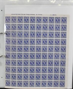 AM-Post, amerikanischer Druck, Partie von 2200 postfrischen Werten ex Nr. 1/9 in Bogen und Bogenteilen