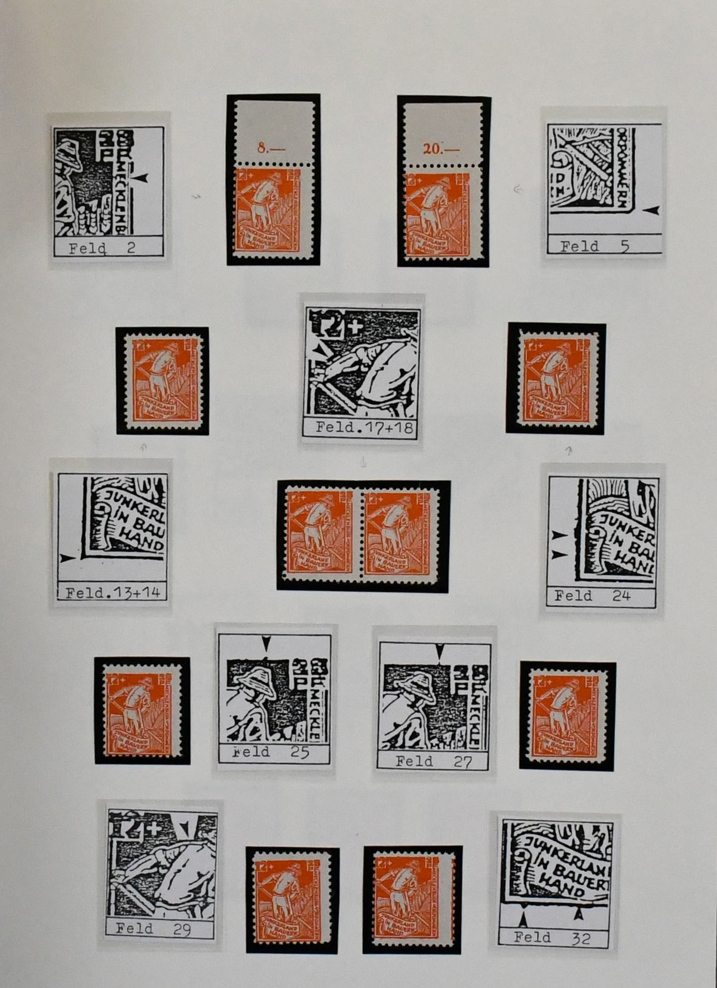SBZ, Plattenfehler auf Nr. 23/25, postfrische Slg. mit 51 verschiedenen im Michel und 87 versch. im Handbuch katalogisierten Plattenfehlern, alle genau bestimmt mit zusätzlich vergrößerter Abbildung. Der Katalogwert der im Michel notierten PF beträgt alleine 2200,-