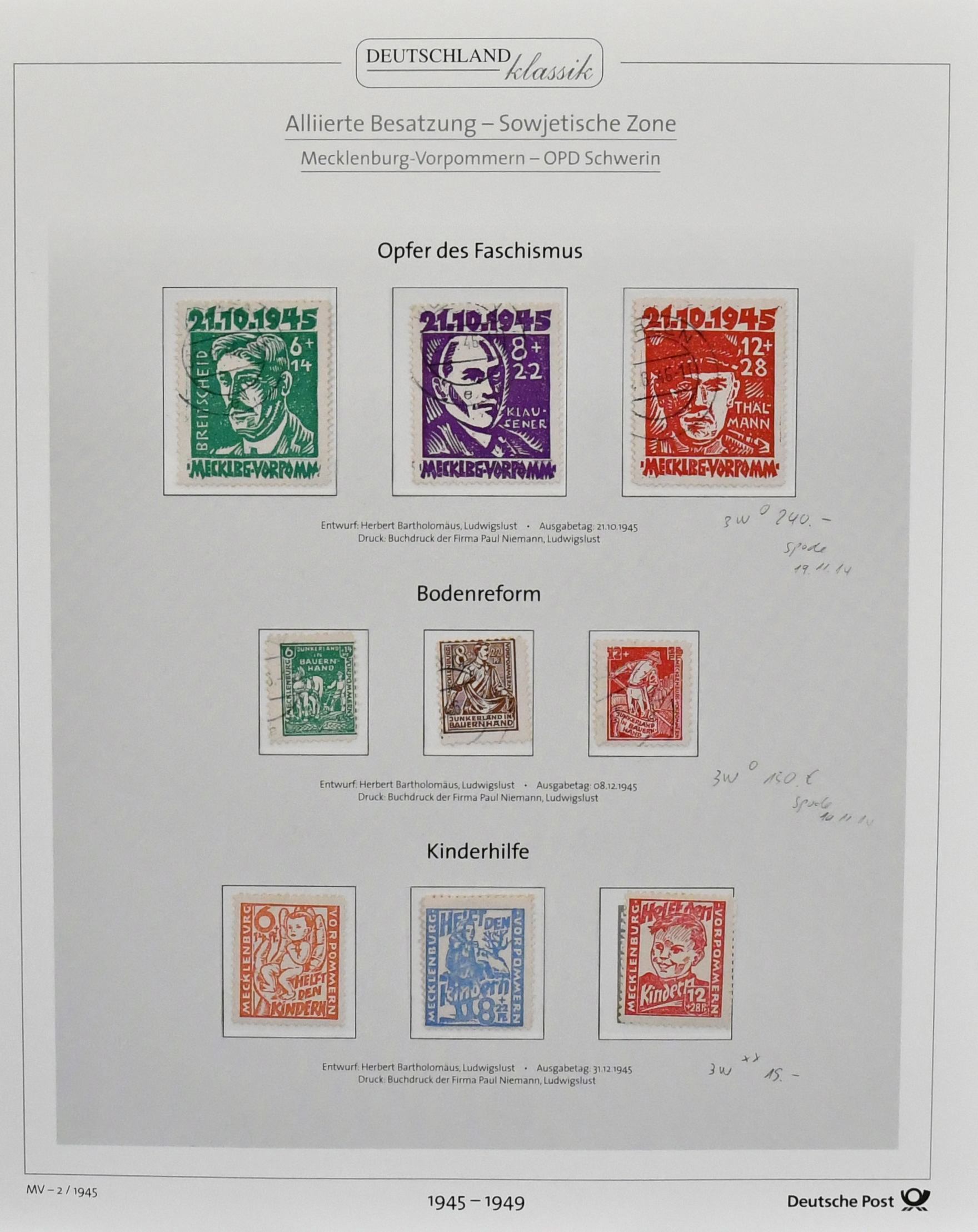 SBZ, 1945/49, gest. Slg. mit vielen kpl. Sätzen ab Nr. 1/19, im Album. Dabei fünf versch. Werte ex Nr. 23/25a/b, 26/28, 29/40x/y kpl., 73/84Y, 87/89A/B, 116/19X/Y, 182/97 inkl. Nr. 195 usw. Mi. 2700,-