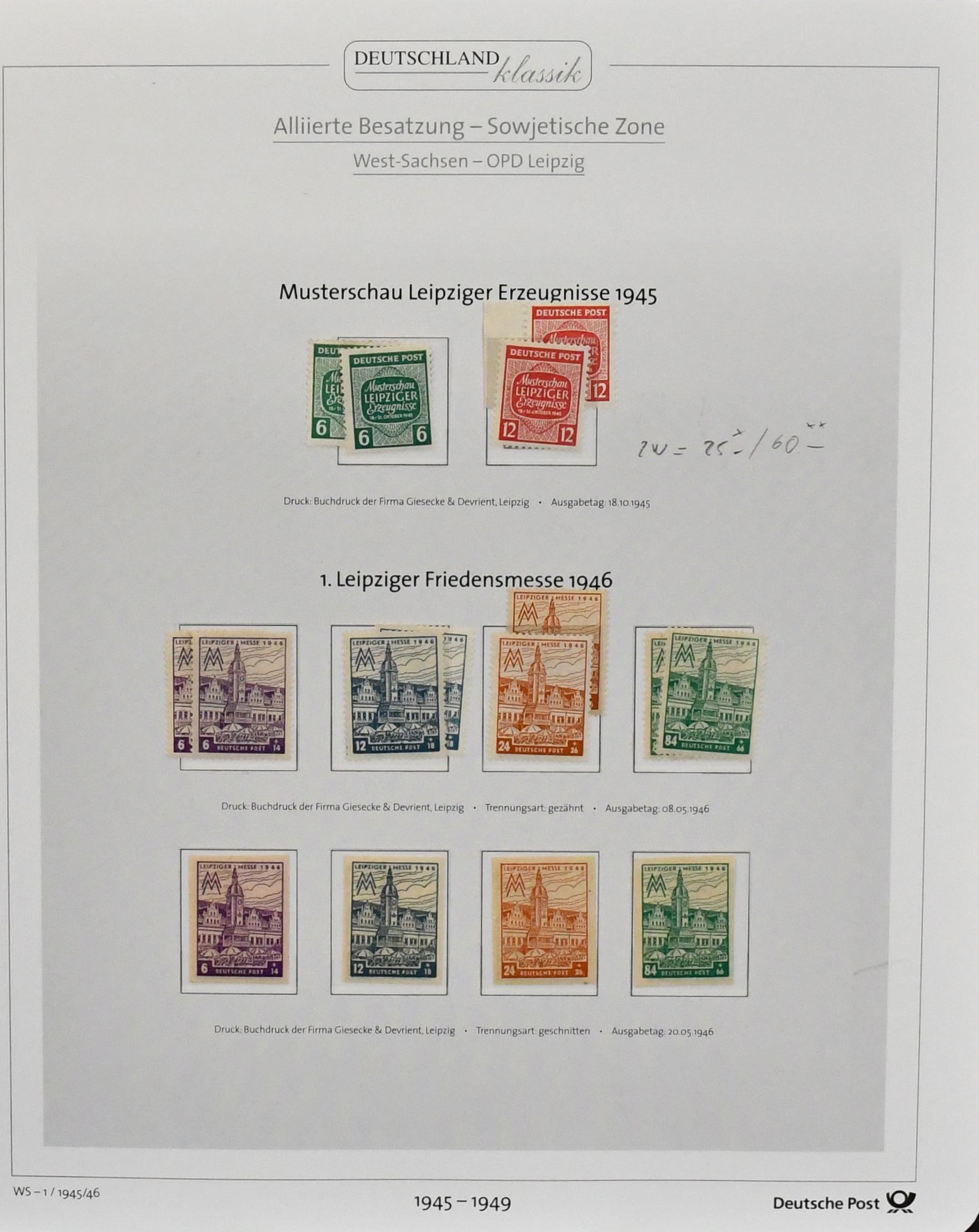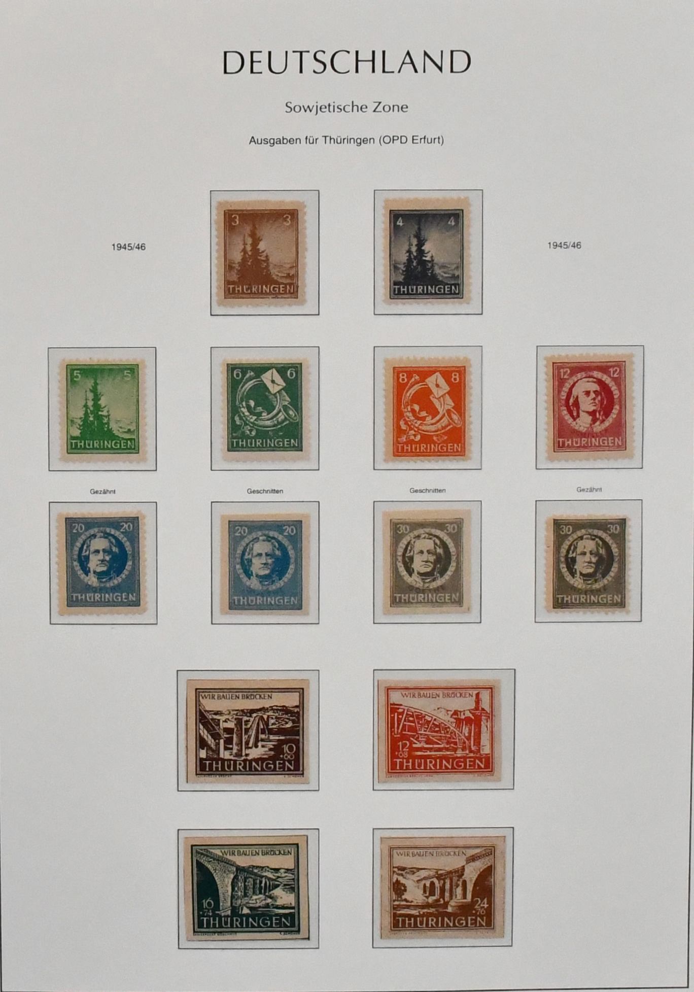 SBZ, hauptsächlich postfr./ungebr. Slg. auf Leuchtturm-Vordrucken, dabei Bären B, MVP kpl. mit Nr. 20/22, 23/25a/b, einige Farben, Abschied x-Papier, Ost- u. Westsachsen, Thüringen Bl. 3A/B, einige Handstempel gepr., Bl. 6 etc.