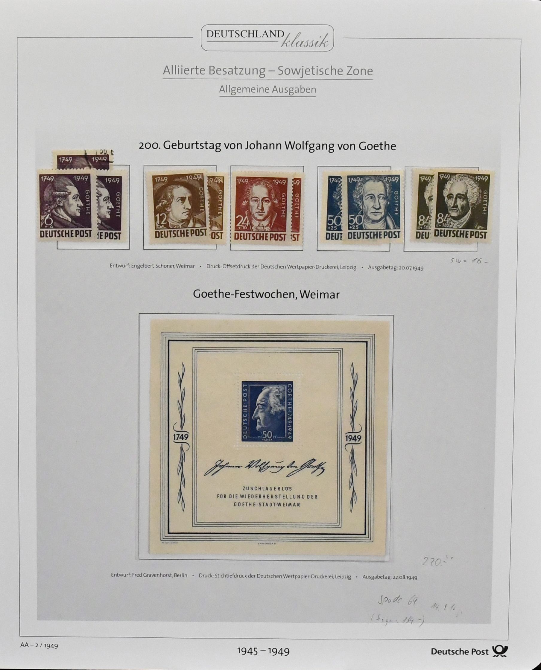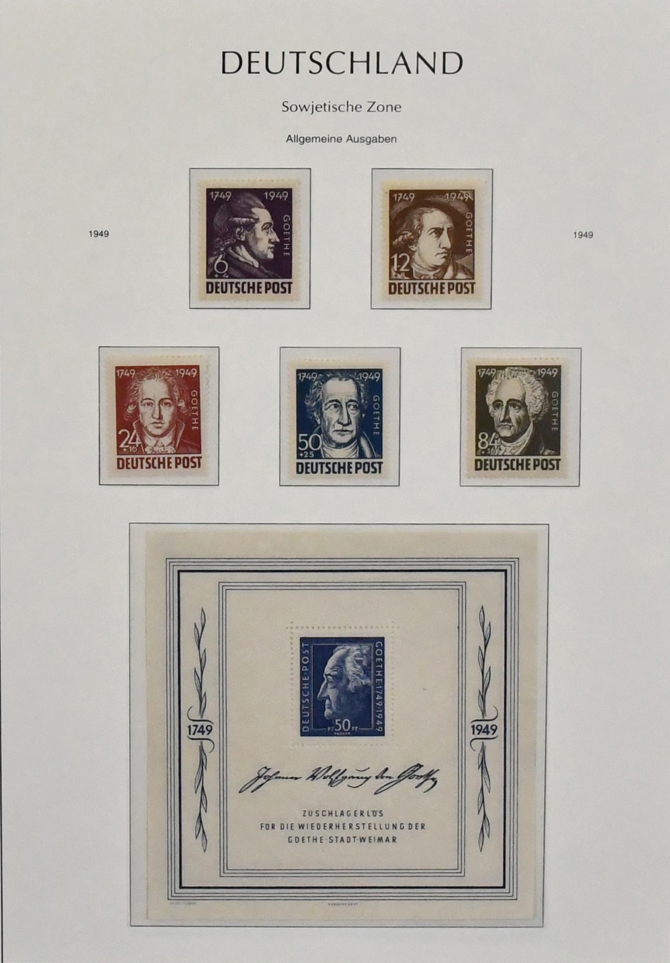 SBZ, Mi.-Nr. 1-123, spezialisierter Sammlungsteil ab Nr. 1-7B sowohl postfrisch als auch ungebraucht, dabei gepr. postfr. Nr. 8y, 14x/y, 20-22, 23-25a, 24aa, 24PII ungest. (kl. Fleck), 25X, 23-25b, 26-28, 26-28U, 29-40x/y, teils mehrf., u.a. zweimal y, 47bG als Bogenecke li. oben in MiF auf R-Brief, 43C, 42-50D (zwei Serien, einmal gest.), 42-50G, 80X, 116-23Y, 93YIII etc.