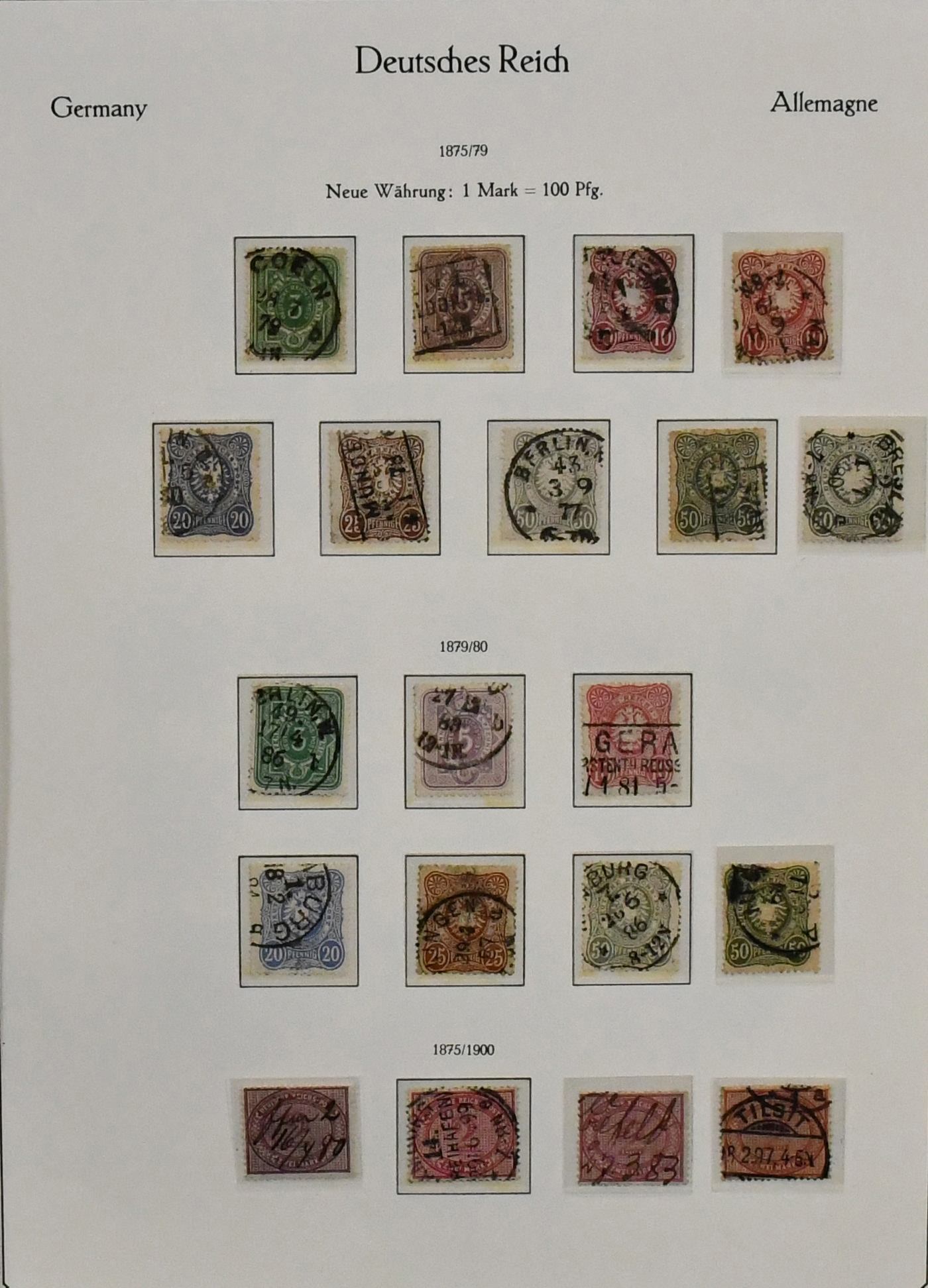 Deutsches Reich, von Nr. 31 bis 104 komplette gest. Slg., dabei Nr. 31/38 inkl. Nr. 37 in versch. Farben, Nr. 65, gute Nr. 66 (Mi. billigst 500,-), 78/82 teils in beiden Zähnungen (300,-), 83/97I/II usw., auf Vordrucken
