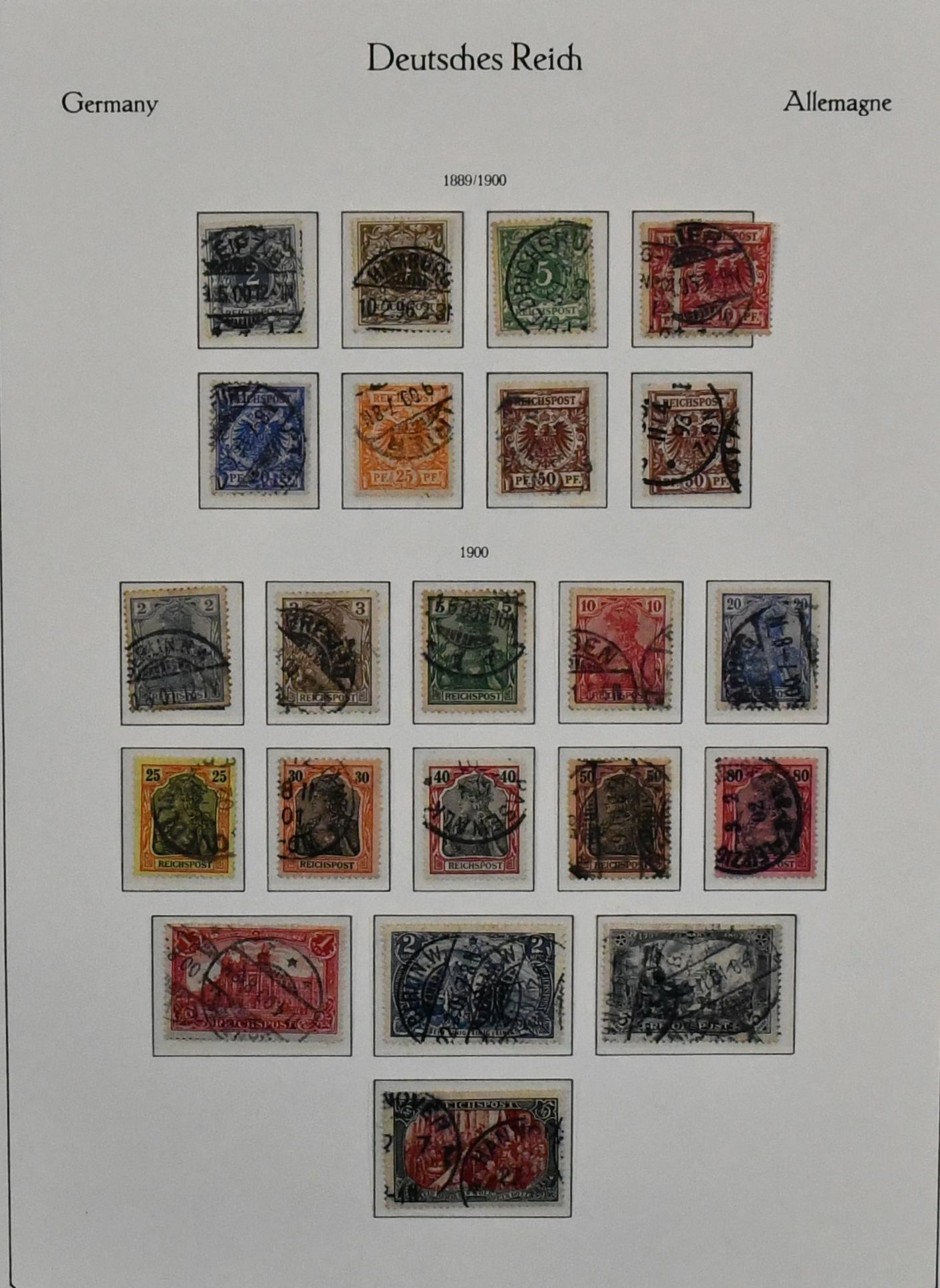 Deutsches Reich, 1872/1945, in beiden Erhaltungen geführte umfangreiche Slg. in zwei Alben. Dabei diverse Brustschilde (Mi. 1100,-), Pfennige mit u.a. Nr. 35 in versch. Farben, Germania mit Nr. 65, Infla, ohne teure, aber mit einigen mittleren Ausgaben, u.a. Nr. 119/38 gest., und viel nach 1924 inkl. diversen Nothilfe-Sätzen, Zeppelin 1/4 RM, allen WHW-Sätzen, Mark-Werte Danzig-Abschied, Nr. 801B gest. usw., bis postfr. Nr. 909/10. Dazu Dienst ab Nr. 1/8, von Nr. 16-177 qusi kpl., sowie diverse Ausgaben Bes. II. Wk. Mi. 7000,-