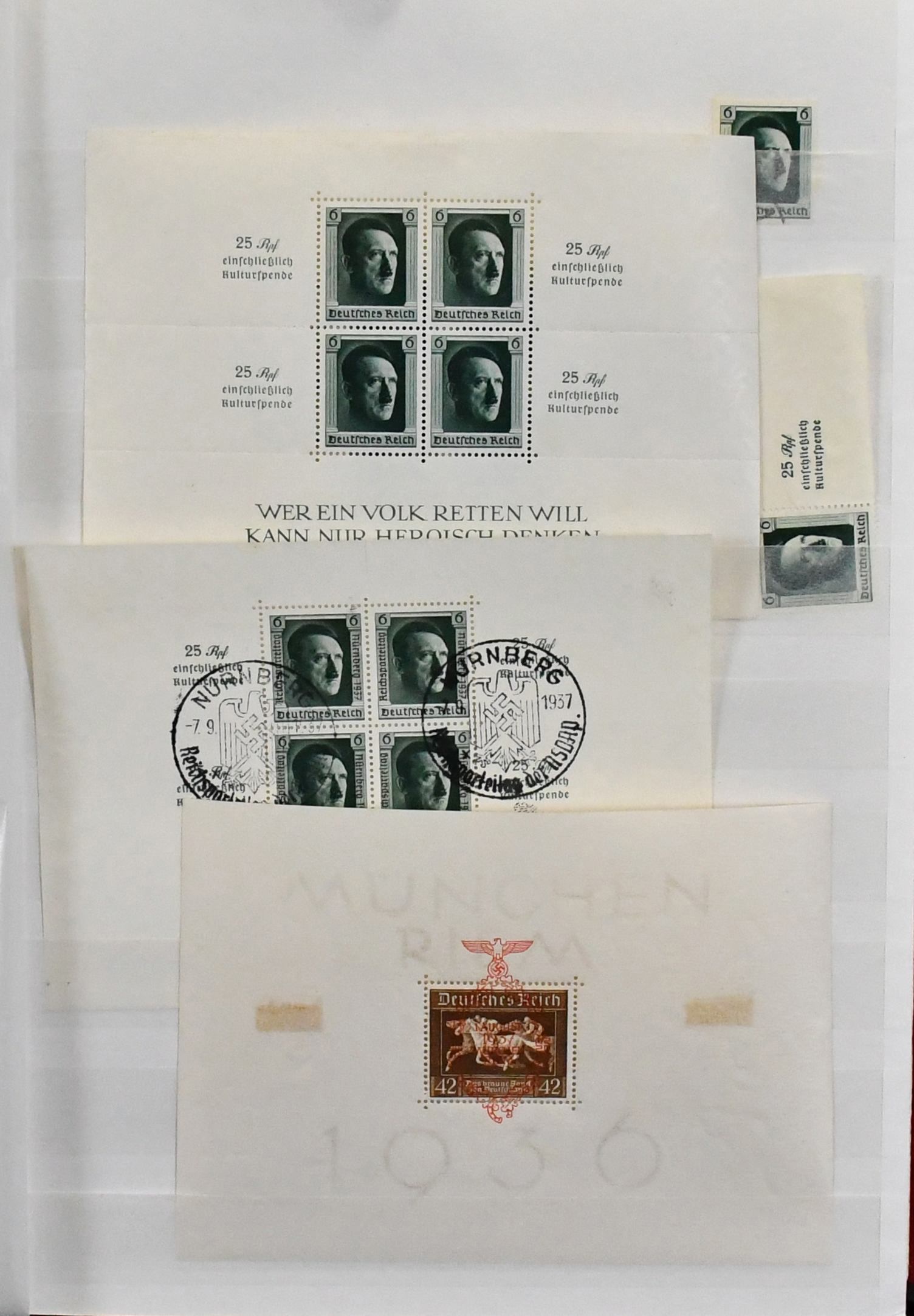 Deutsches Reich, 1872/1945, Sammlung, beginnend mit einigen eher unbedeutenden Brustschilden, im SAFE-Vordruckalbum. Dabei Infla von Nr. 82 bis 337 kpl., wertmäßig eher unbedeutend, da meist ungebr., Schwerpunkt nach 1924 inkl. Zeppelin 1/4 RM gest., Nothilfen 1926 und 1930/31 gest., viel III. Reich ab Nr. 479/81, mit u.a. Nothilfe 1935 usw., von 1936-1945, ohne Bl. 9, bereits kpl., mit Bl. 5/8, Bl. 10/11, Nr. 686/88 postfr., 695/97 postfr. (300,-), 702/29 postfr. (310,-) etc., bis Nr. 909/10 postfr. gezähnt und ungezähnt (Mi. 170,-), Mi. 5000,-