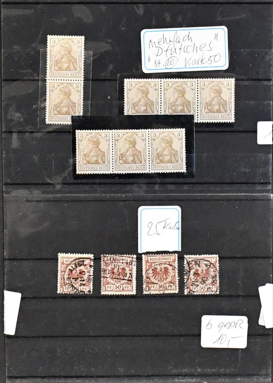 Deutsches Reich, 1889-1945, Partie oft besserer Werte inkl. Nr. 48ax und ba je gest., gepr. (Mi. 130,-), 50b(3) und bx je gepr. (190,-), 69I (3, 120,-), 335B gepr. (140,-), bessere III. Reich postfr. wie Nr. 669-70, bis hin zu postfr. VB 909/10 (320,-), sowie 695-97 auf Luxusbriefstücken (100,-)