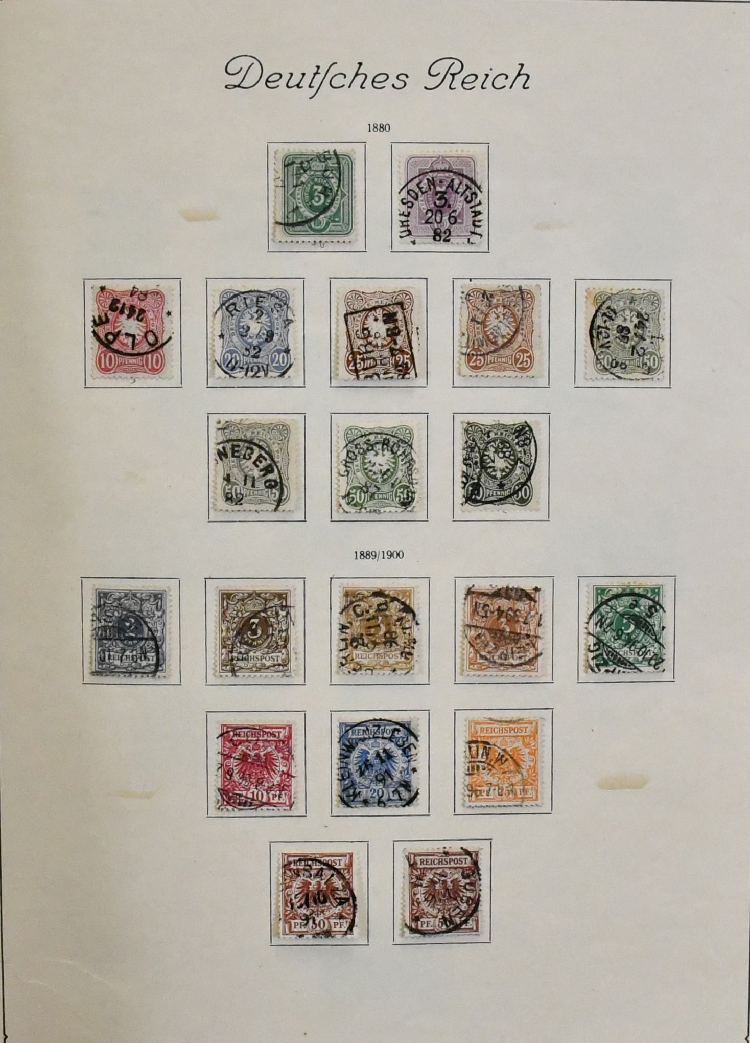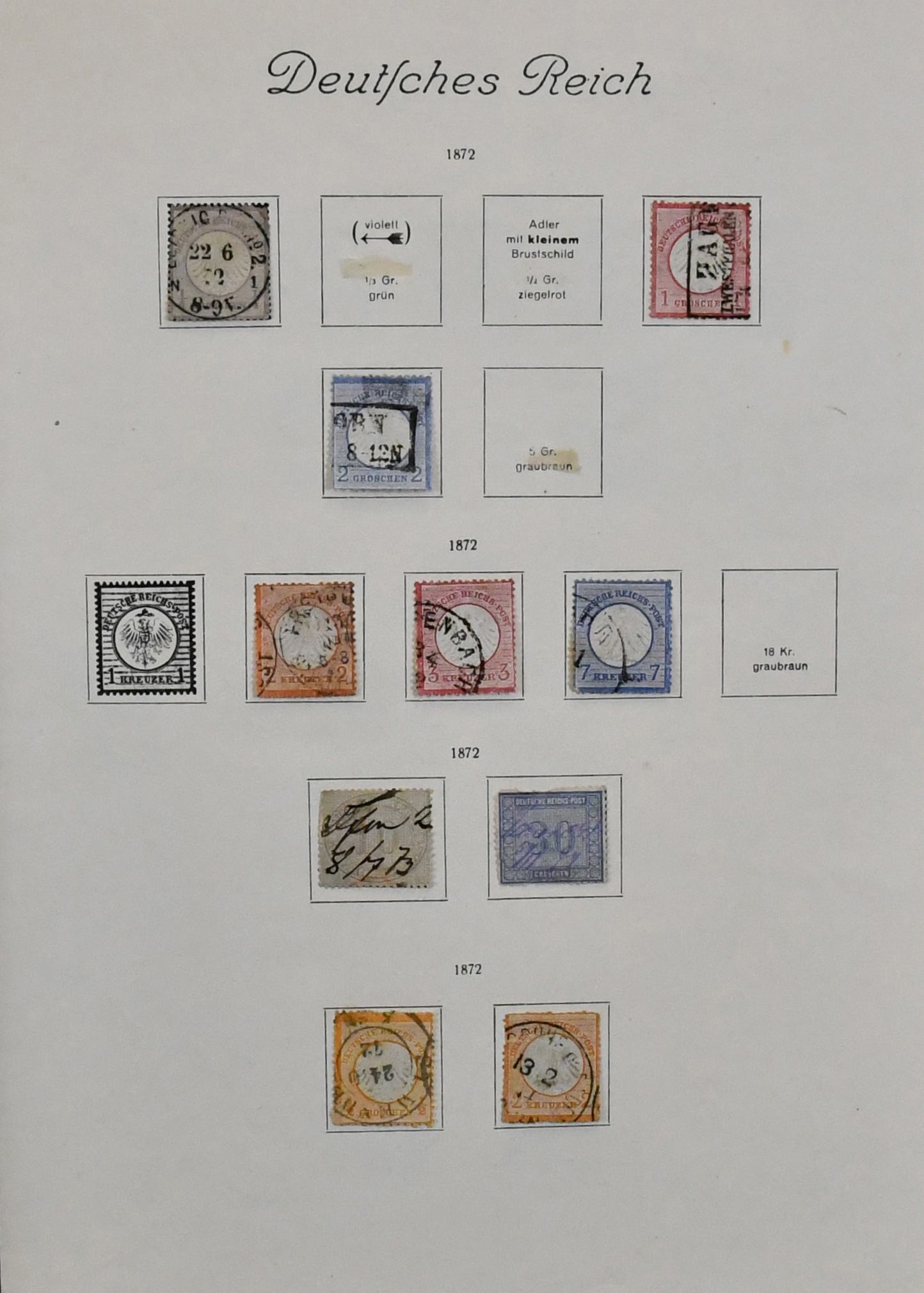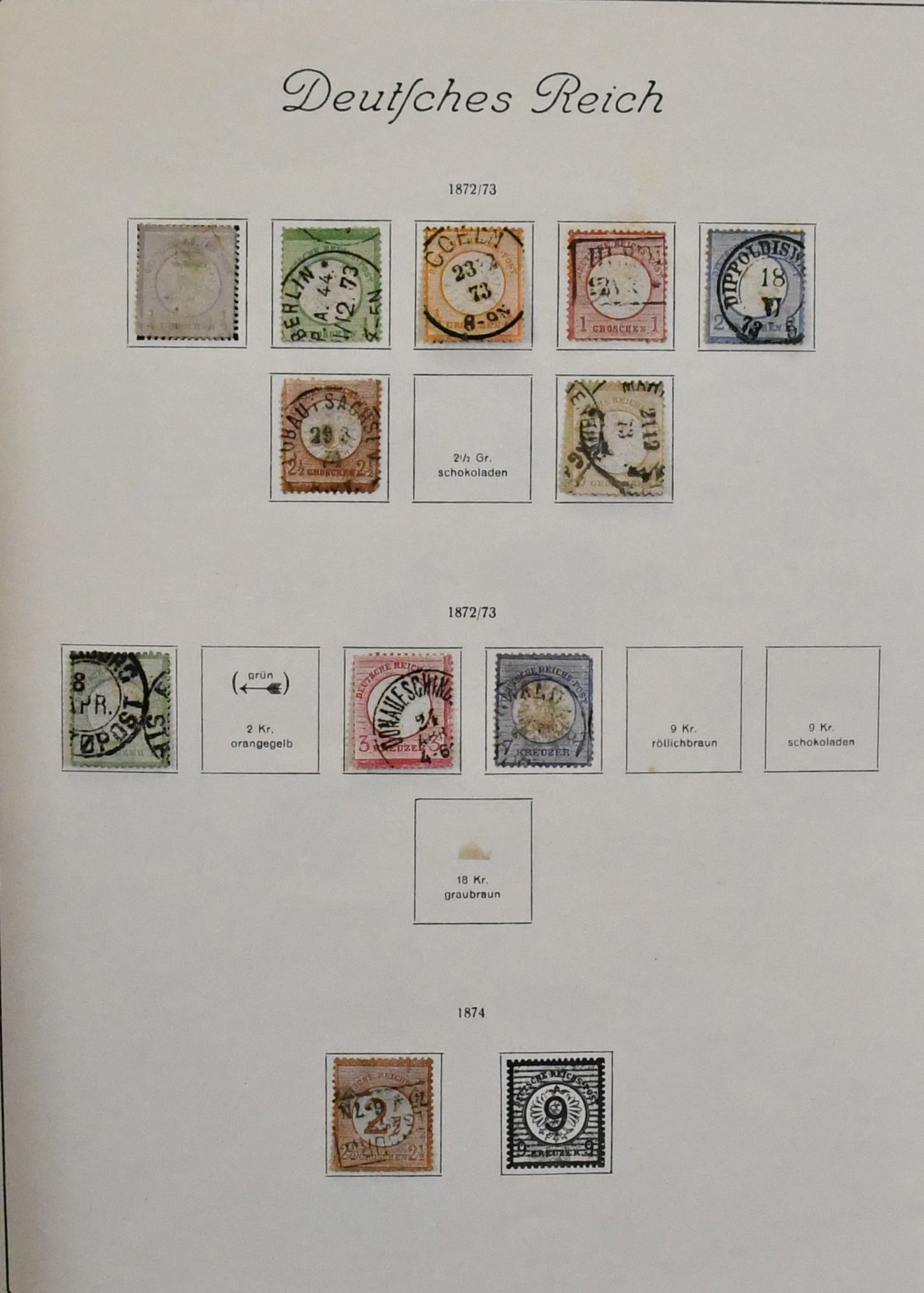 Deutsches Reich, 1872-1919, meist gest. Slg. auf alten Schaubek-Vordrucken, dabei u.a. Nr. 20 mit nachverw. hannöverschem Zweikreisstempel "Iemgum", sehr gut gezähnte Nr. 21, 31-36 usw., ferner etwas Auslandspostämter mit Marokko, China und Türkei