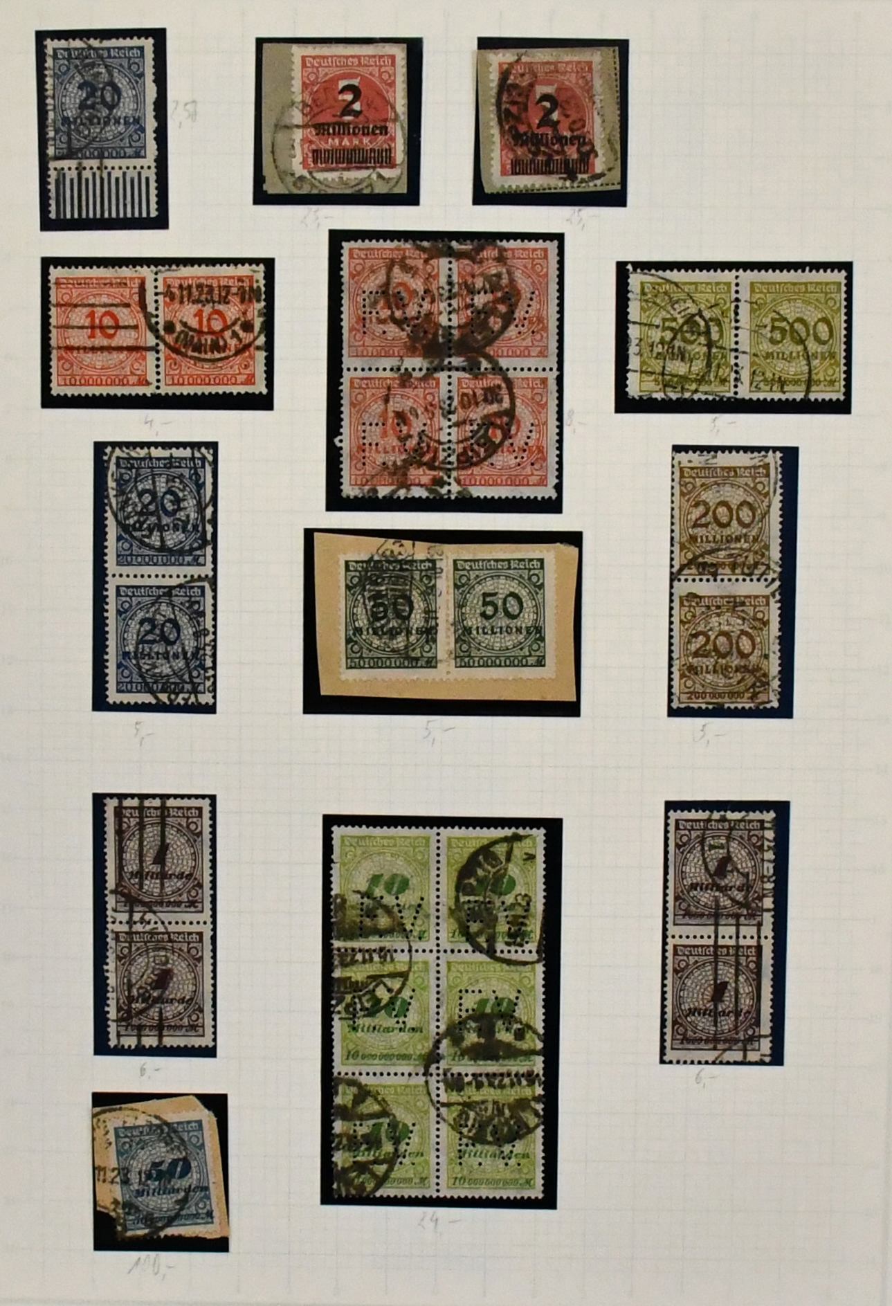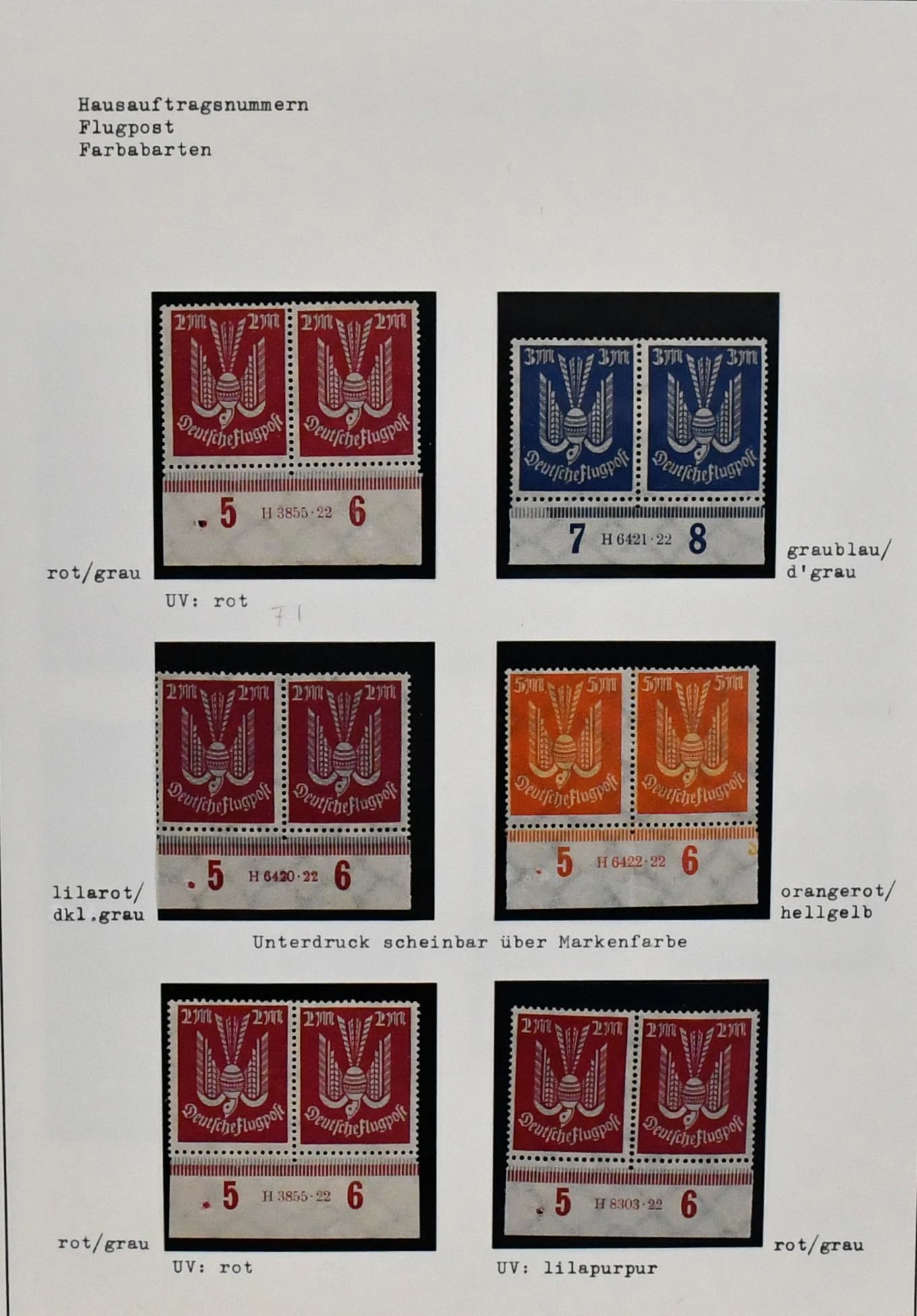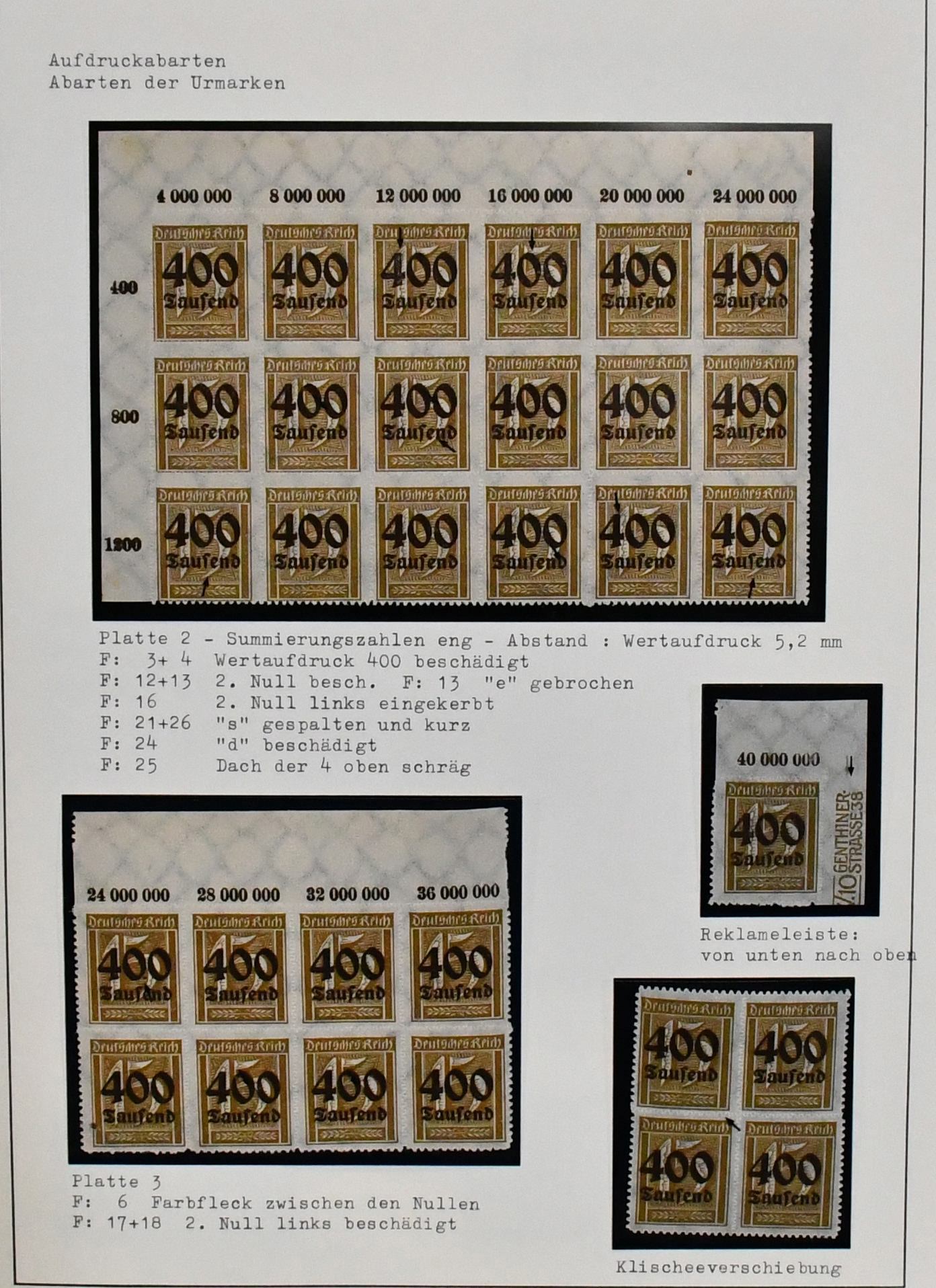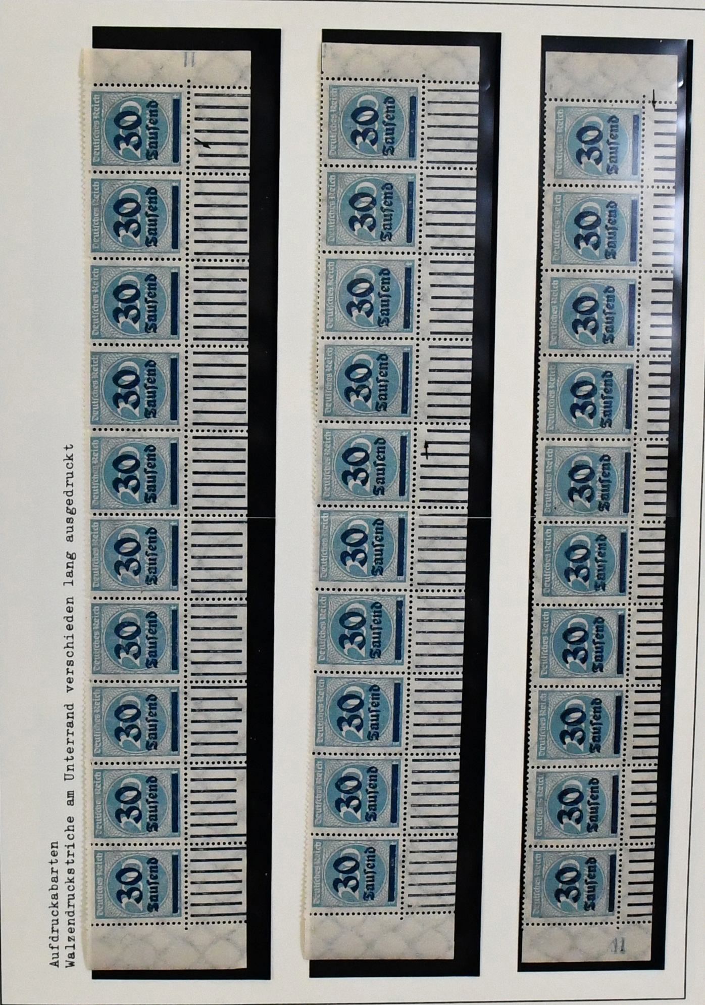 Deutsches Reich, Infla-Spezialsammlung im Leuchtturm-Ringbinder, nur aus Nr. 277-300, Aufdrucke, hauptsächlich postfrisch, mit vielen Randstücken, u.a. besseren Oberrändern, teils gepr. Farben, Besonderheiten mit HAN, Papieren, Gummisorten, versch. Drucken u.v.m. Mi. 3000,-