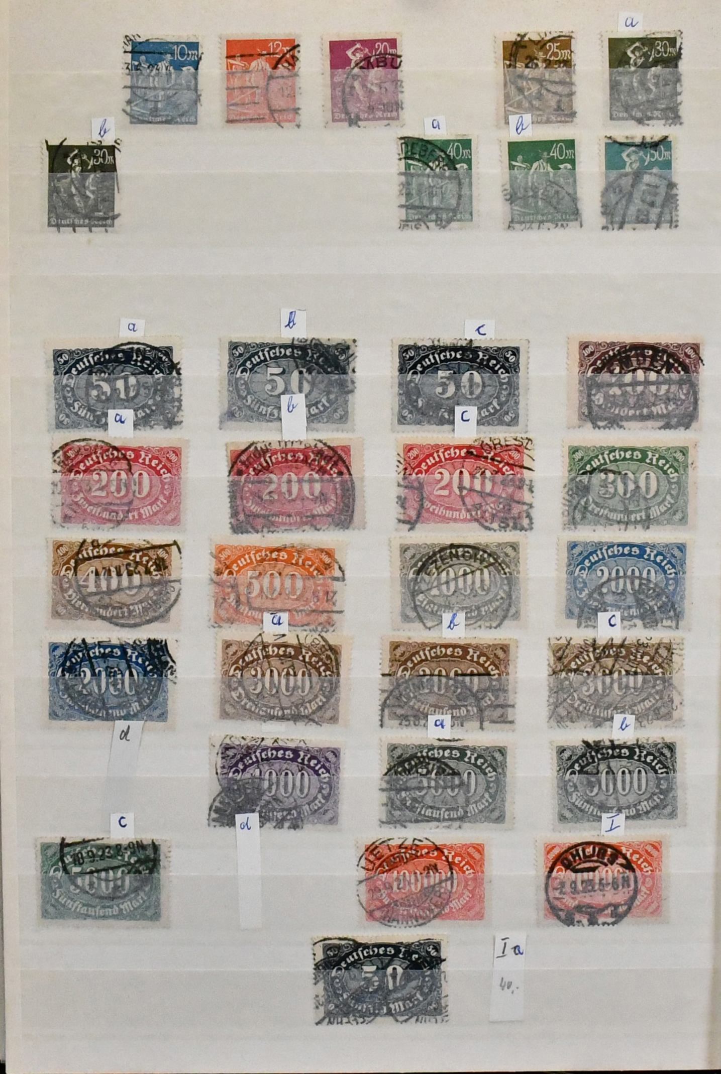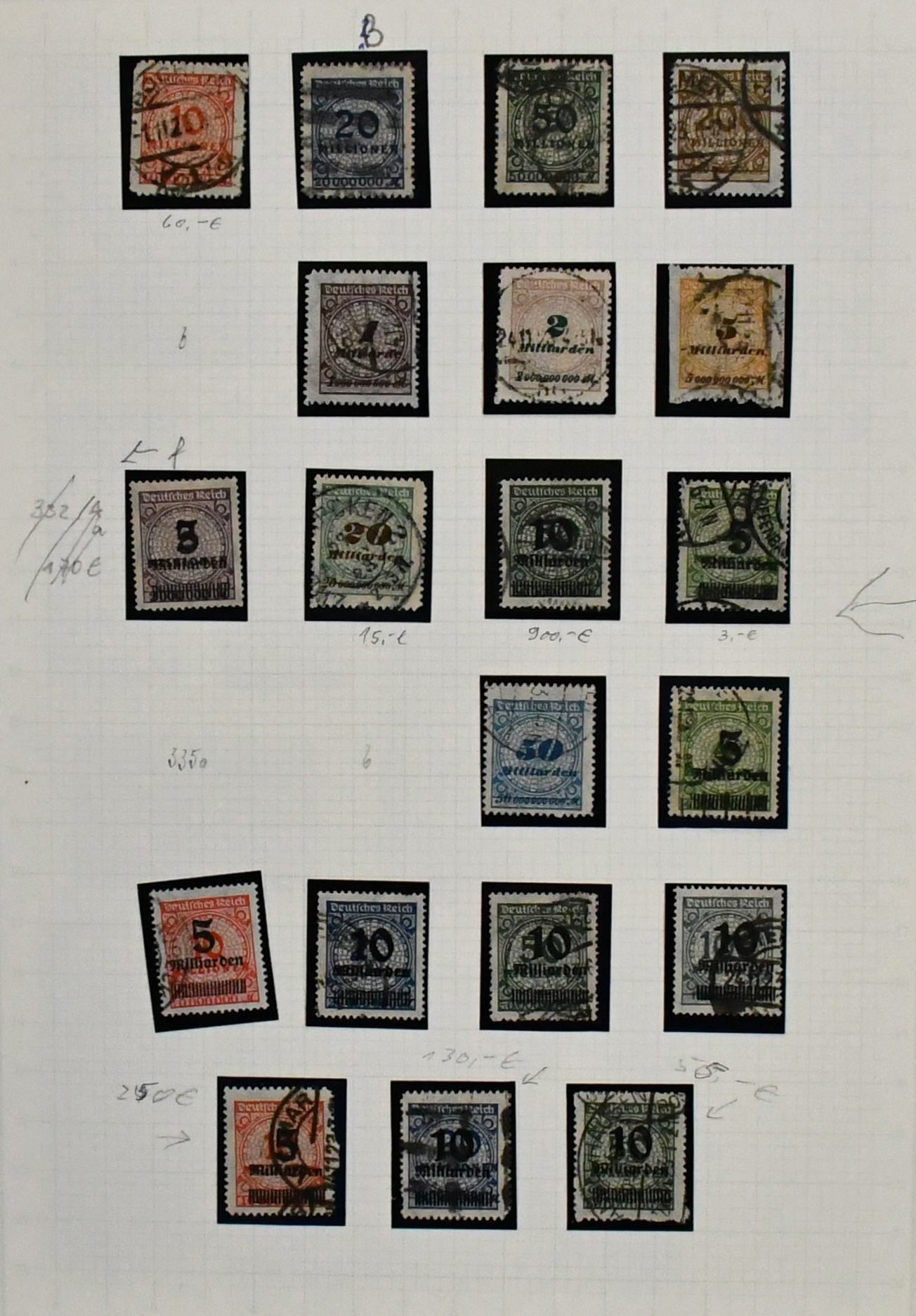 Deutsches Reich, 1919/1923, gestempelte, vielfach nach Farben spezialisierte und wenn nötig, bereits geprüfte Sammlung auf Albumblättern. Dabei u.a. Nr. 119/38, inkl. 135II u. 138II, 178 gepr., 190, 197b, 222c, 233/34, 245, 248b, 258/60, 261/62b, 291b, 303, 309B, je gepr., usw. Mi. 4600,-