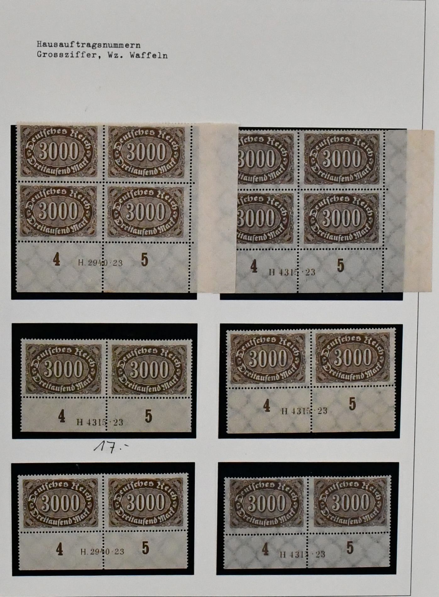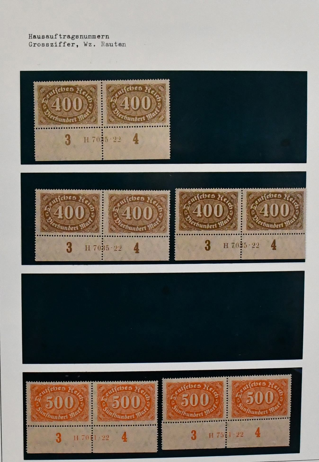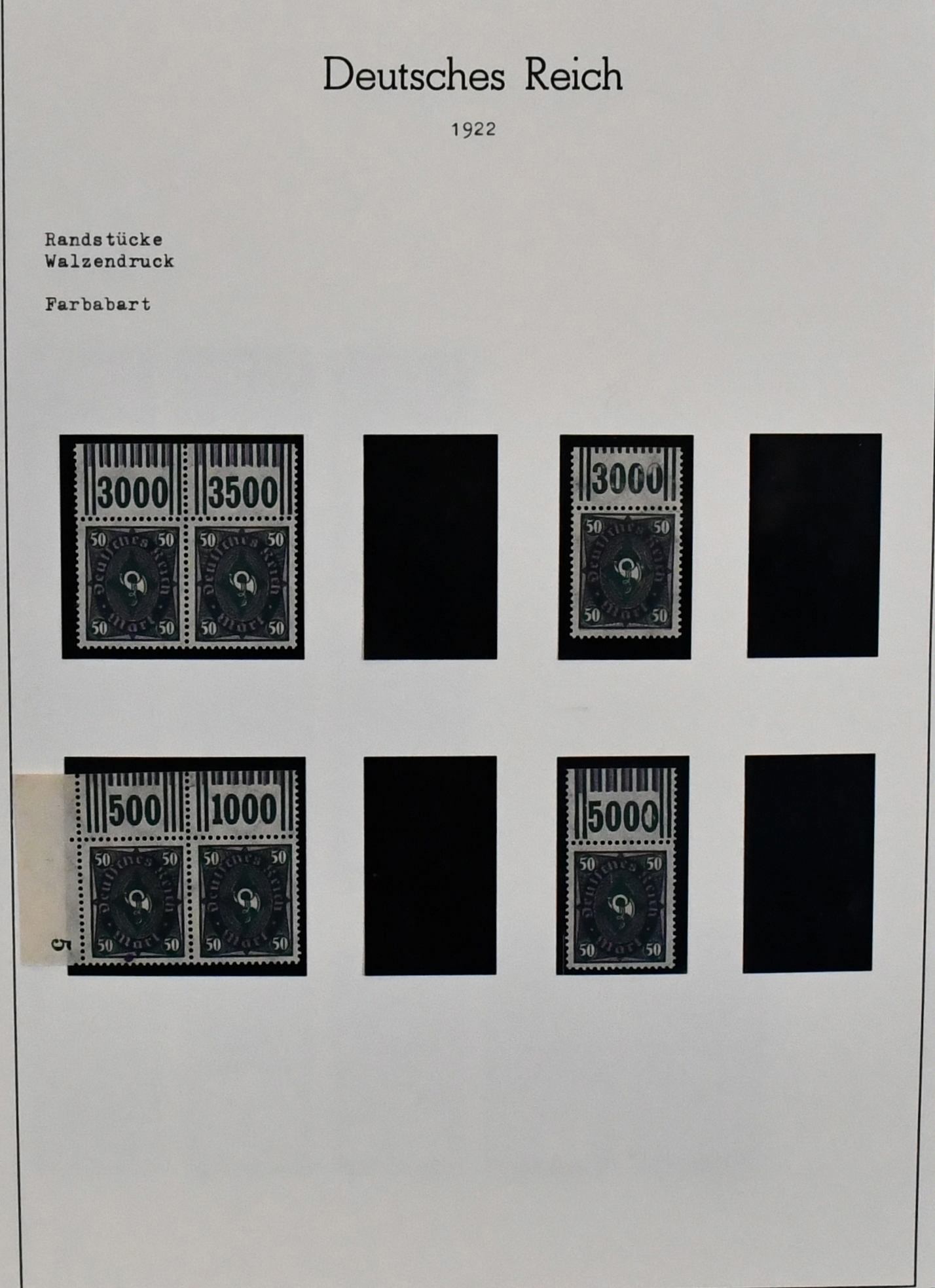 Deutsches Reich, Infla-Spezialsammlung im Leuchtturm-Ringbinder, nur Queroval, hauptsächlich postfrisch, mit vielen Randstücken, u.a. besseren Oberrändern, teils gepr. Farben, Besonderheiten mit HAN, Papieren, Gummisorten, versch. Drucken u.v.m. Mi. 3000,-