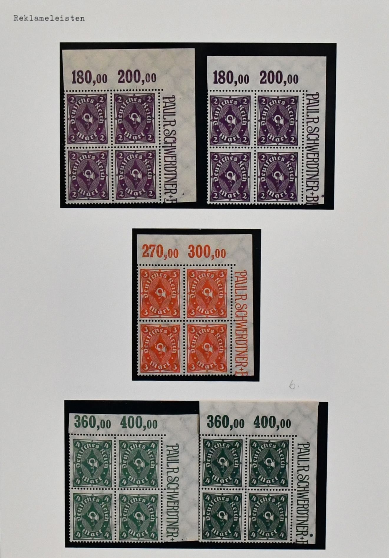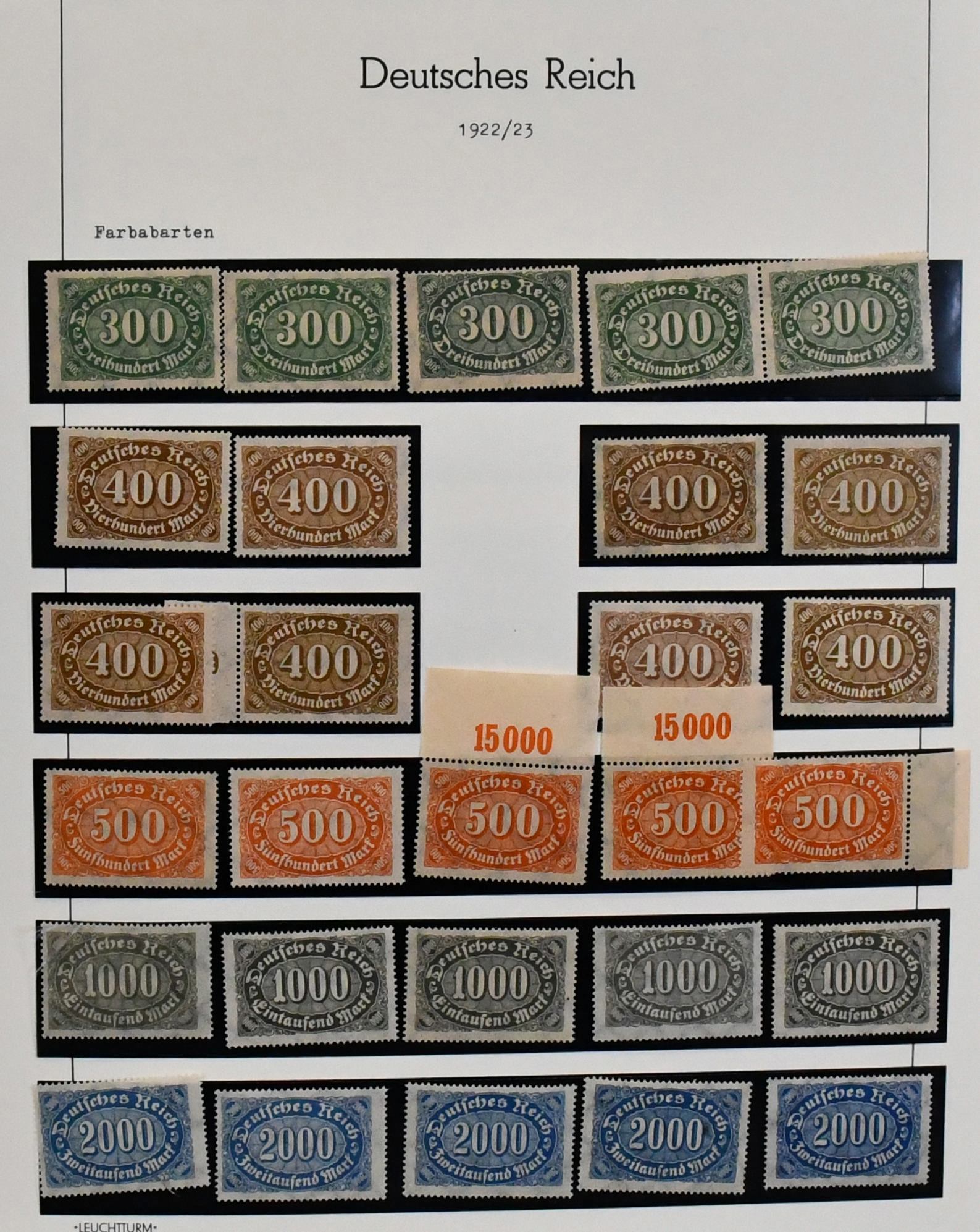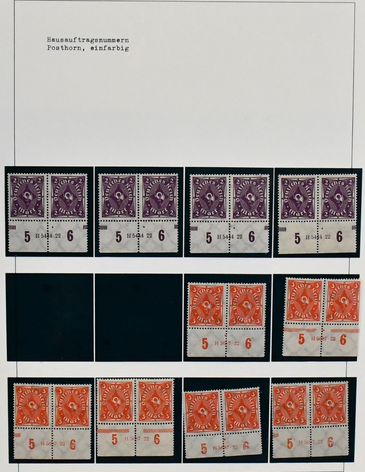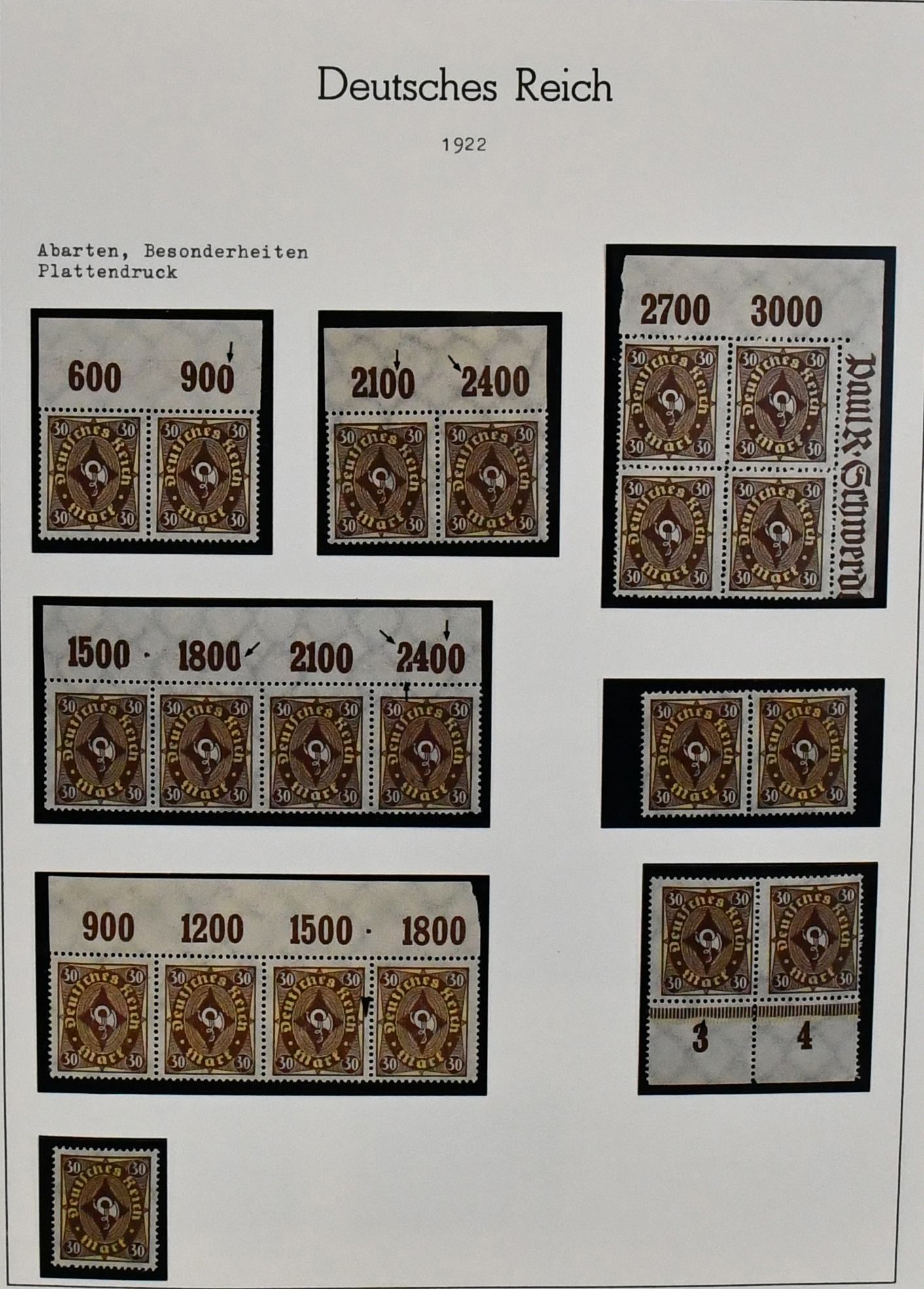 Deutsches Reich, Infla-Spezialsammlung im Leuchtturm-Ringbinder, nur Queroval, hauptsächlich postfrisch, mit vielen Randstücken, u.a. besseren Oberrändern, teils gepr. Farben, Besonderheiten mit HAN, Papieren, Gummisorten, versch. Drucken u.v.m. Mi. 3000,-