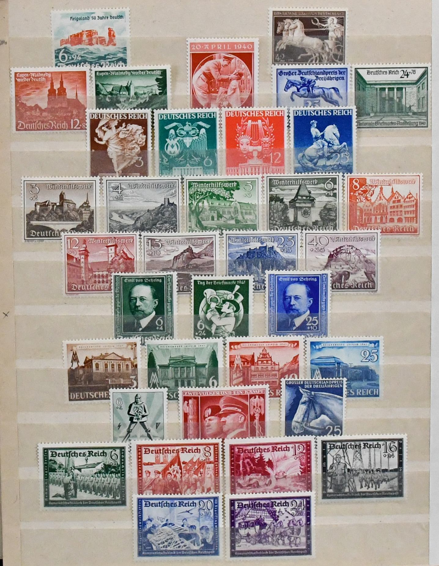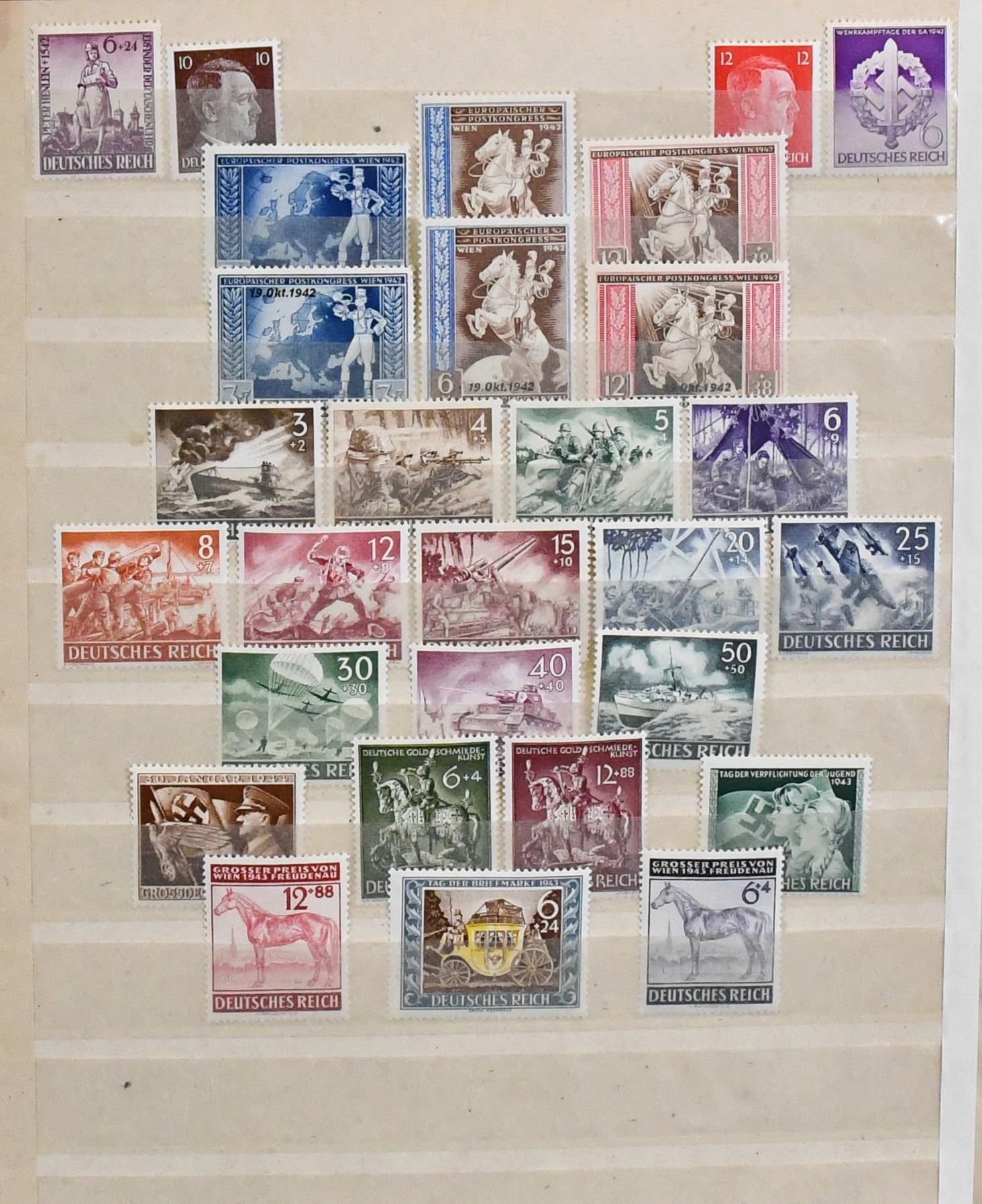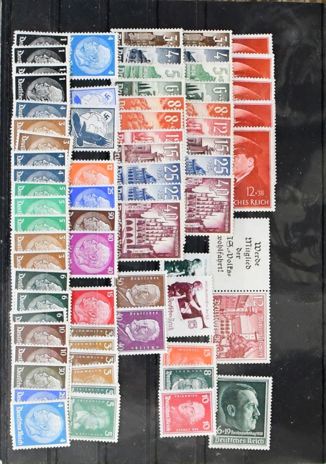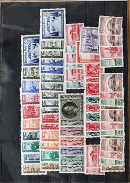 III. Reich und Besetzung II. Wk., 1933-1945, weitgehend postfrische, umfangreiche Sammlung im Album, mit etlichen besseren Werten wie u.a. Nr. 512/28, Stände ungebr., 565/68, 580/83, 634/42, 651/59, 669/70, 686/88, 699, 702/13, 730/36, 747 etc., ferner etwas Feldpost mit Tunis Nr. 5, Böhmen, GG, Elsaß-Lothringen u. Luxemburg. Mi. ca. 2000,-
