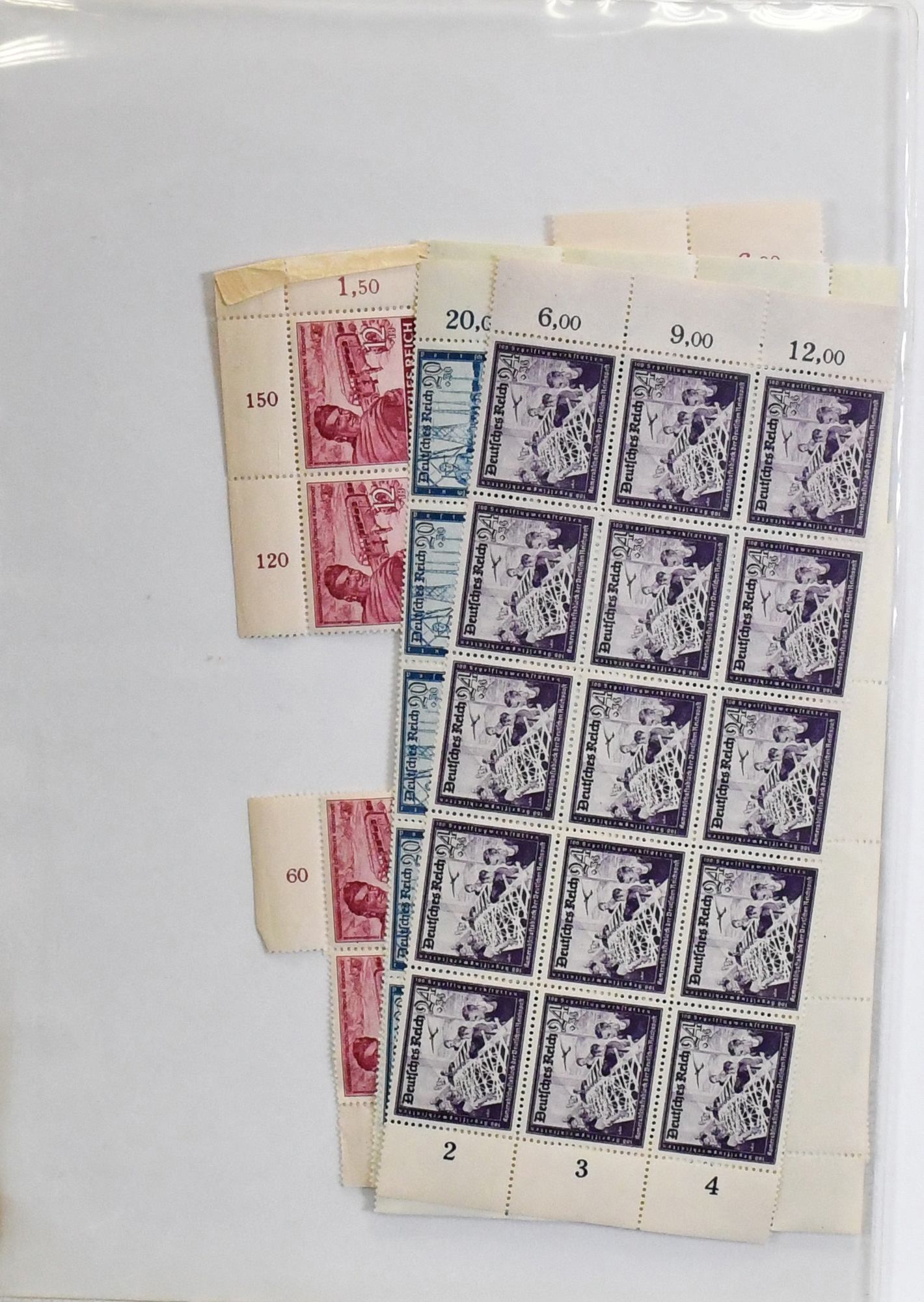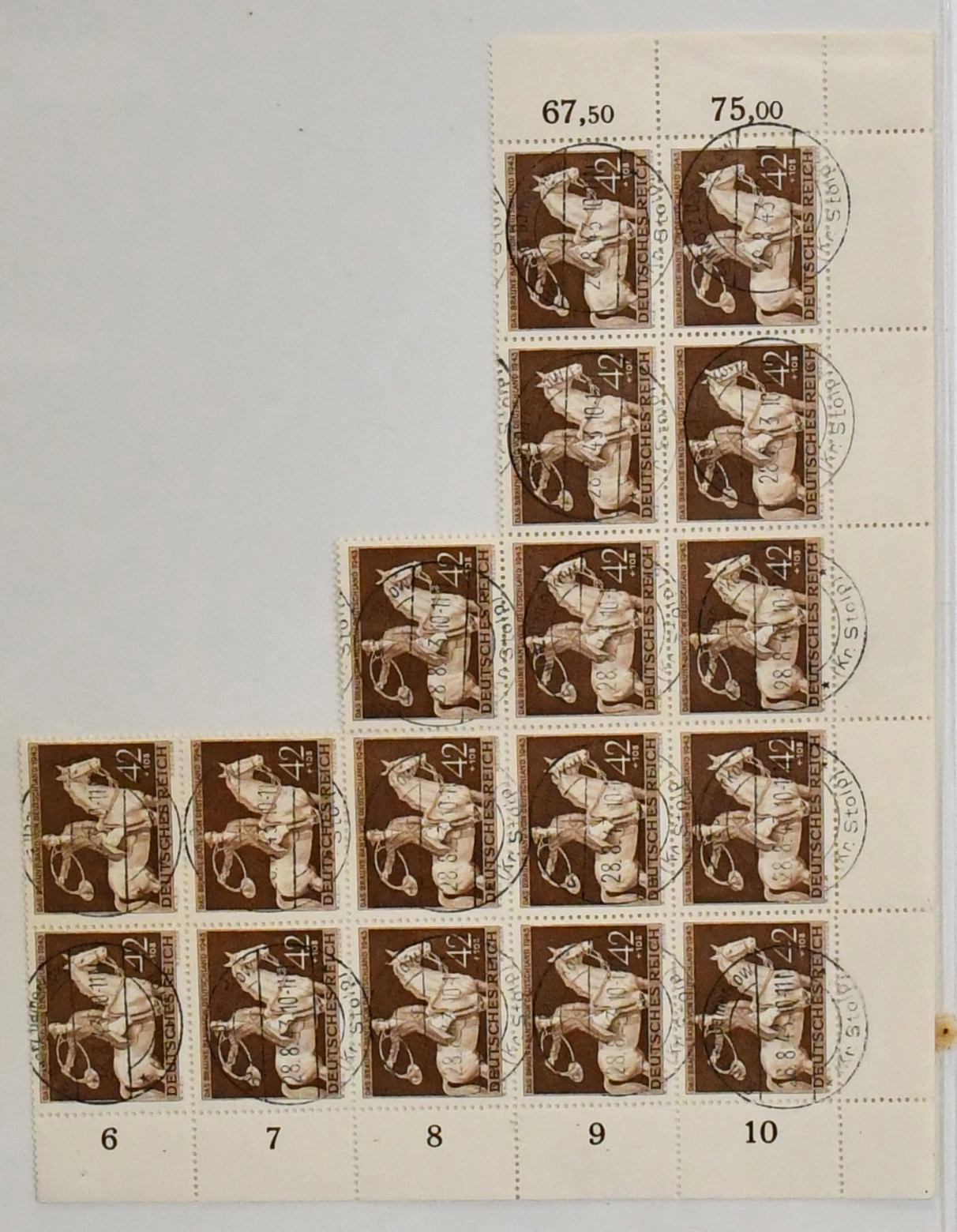 III. Reich, Ringbinder mit postfrischen und gest. Bogenteilen Sondermarken, sowie vielen Ausgaben WHW, Wehrmacht sowie Braunen und Blauen Bändern auf Steckkarten, Fundgrube für z.B. Plattenfehler