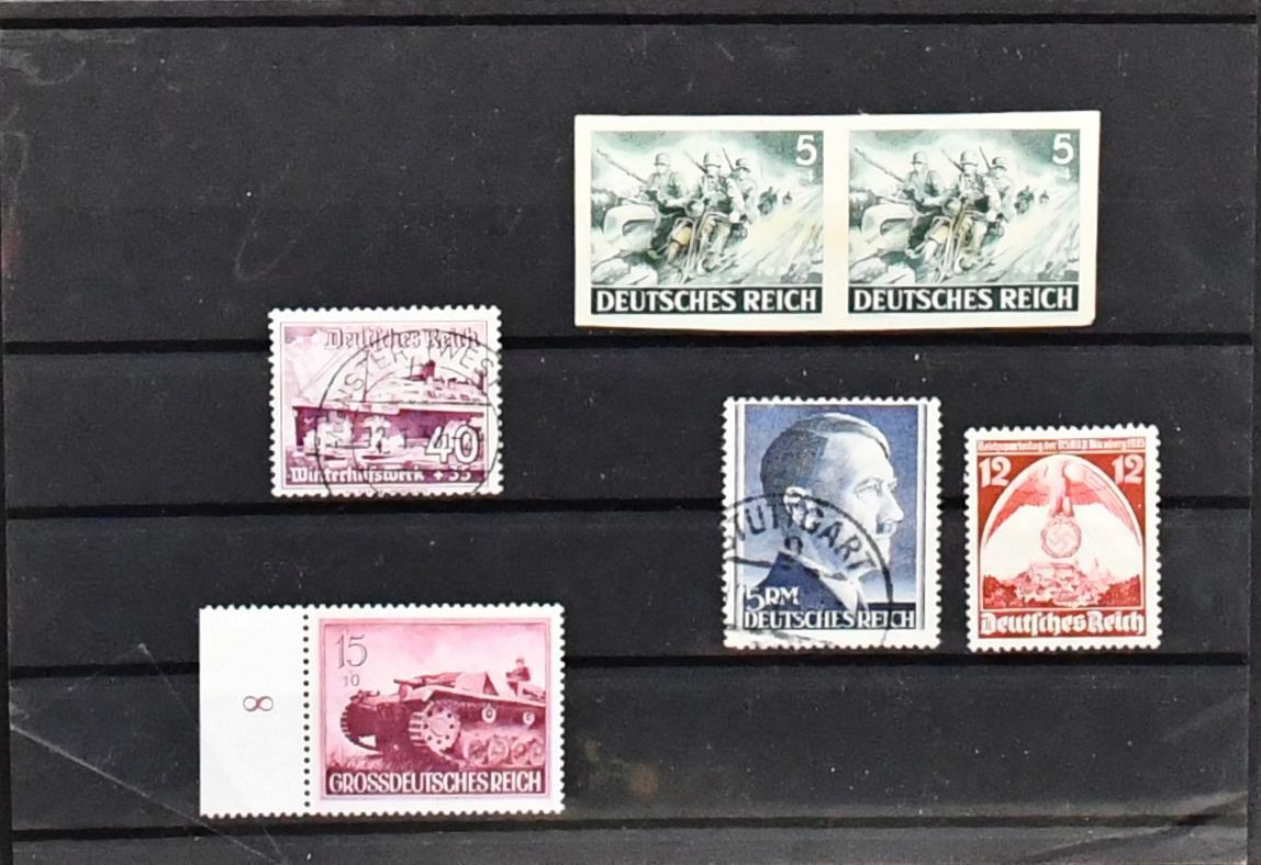 III. Reich, gestempelte Slg., lebhaft gestaltet und immer wieder mit Zusammendrucken aufgelockert. Dabei Nr. 479/81 lose und auf Brief, ferner Nr. 529/39, 556/63, 609/16, 702/13, 747, mehrere WHW-Sätze usw., im alten Borek-Vordruckalbum. Dazu im Anhang Elsaß und Lothringen kpl. Mi. rund 2000,- plus unberechnet Dienst gest., ungeprüfte Nr. 177 (Mi. 1200,-, sollte der Stempel echt sein)