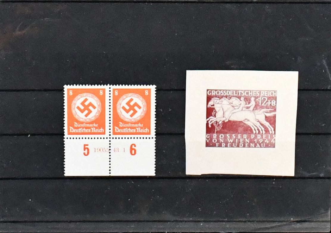 III. Reich, Besonderheiten, Partie mit u.a. Nr. 575 PF I, 659x, doppelt gepr. Peschl BPP, 802B gest. (ungepr.), sehr seltenem Essay zu Mi.-Nr. 901 (Grosser Preis von Wien, 1944) in rotbraun usw.