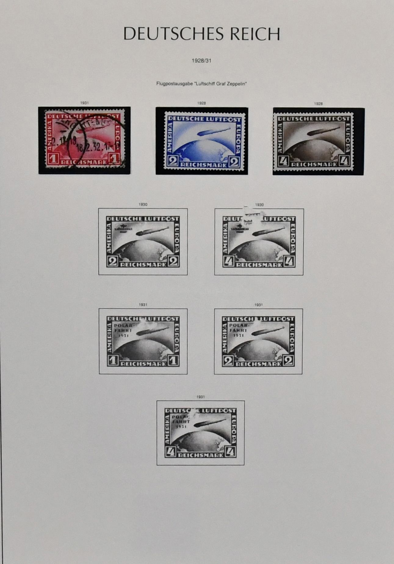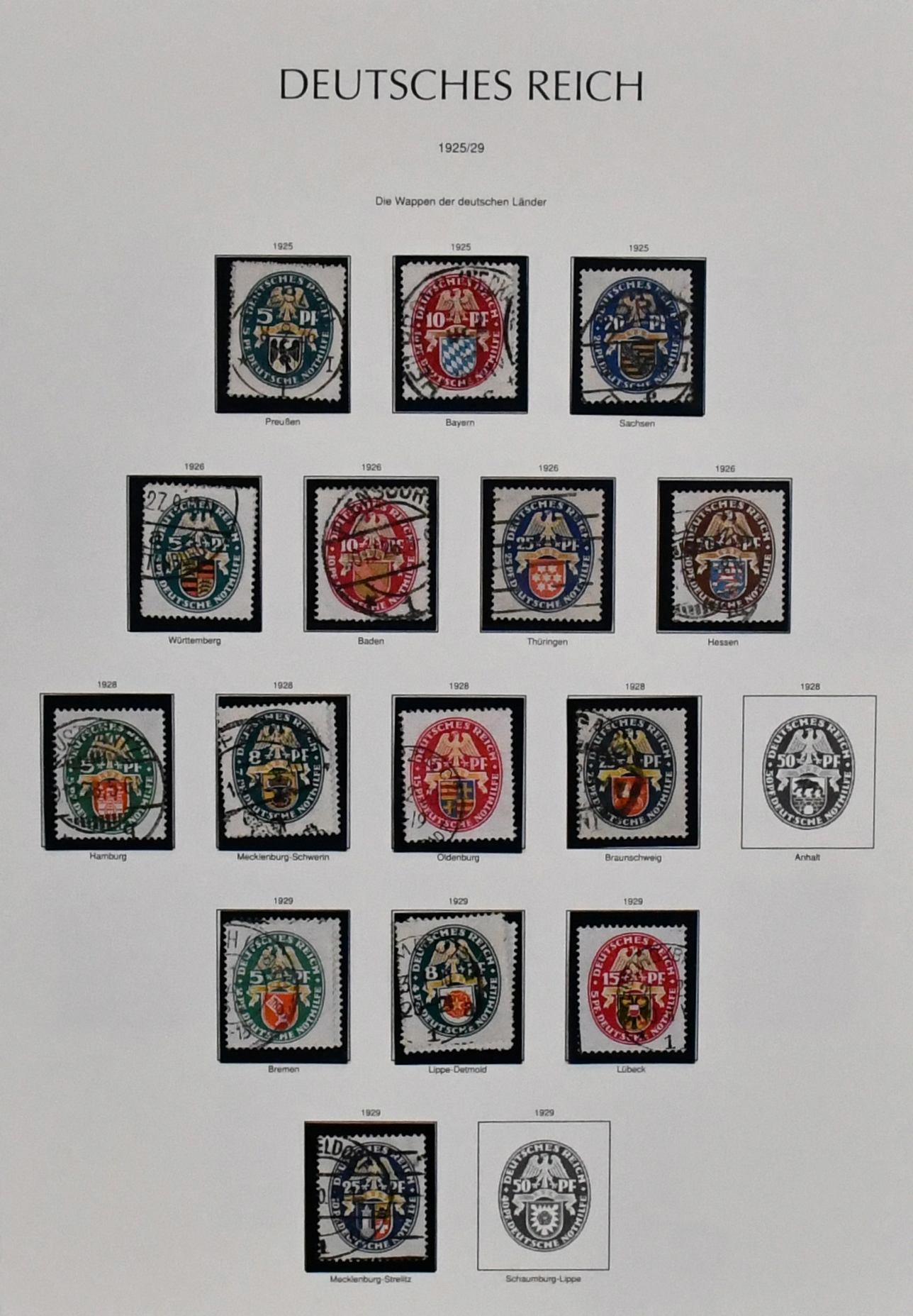 Weimarer Republik, fast durchweg gestempelte Slg. mit u.a. Nothilfen 1924/1927 und 1930/1932 kpl. gest. (Mi. 747,-), Flugpost 1926 gest. (160,-), Nr. 344/48 gest., IAA ungebr., Zeppelin 1/4 RM usw., auf Leuchtturm-Vordrucken. Mi. 1700,-