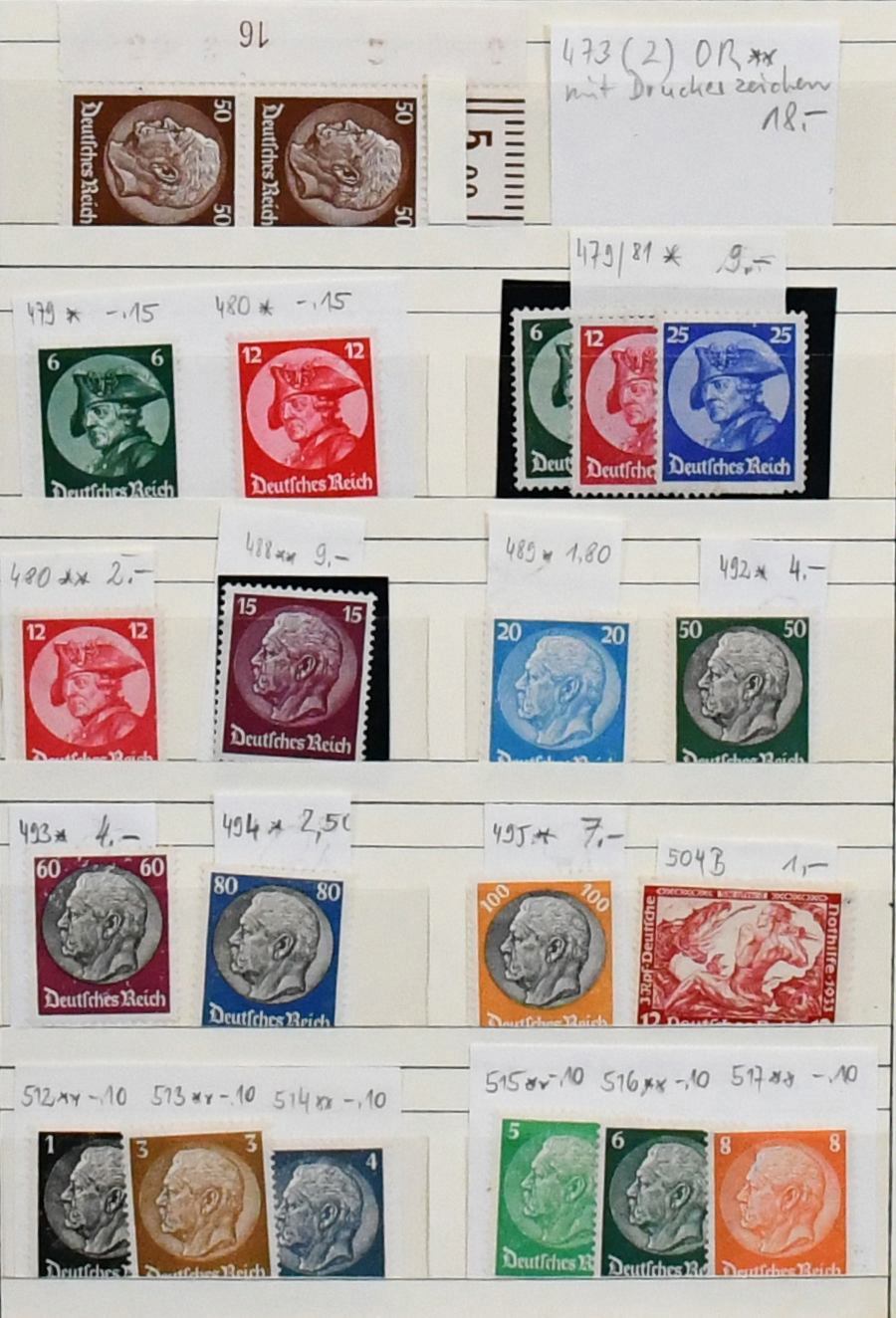 Deutsches Reich, 1924/1936, postfr. und ungebr. Slg. mit u.a. Bogeneckenpaar Nr. 473POR mit Druckerzeichen, Nr. 479/81 ungebr., 512/28 postfr., 595/97, 600/603, 634/42, je postfr., usw. Mi. 1400,-