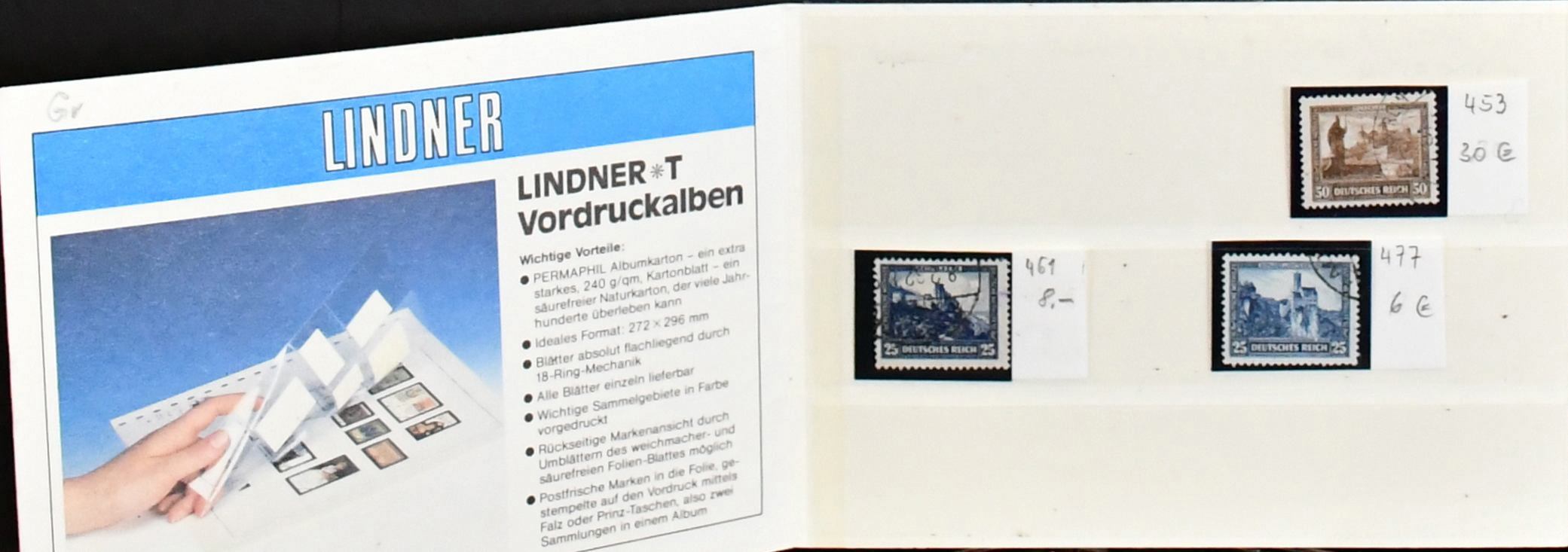 III. Reich, Slg. ab Nr. 479/95, mit u.a. Nr. 529/39 gest., Nothilfe 1935 gest., mehreren Blöcken, u.a. Bl. 9 u. 11 gest. etc., im Leuchtturm-Vordruckalbum