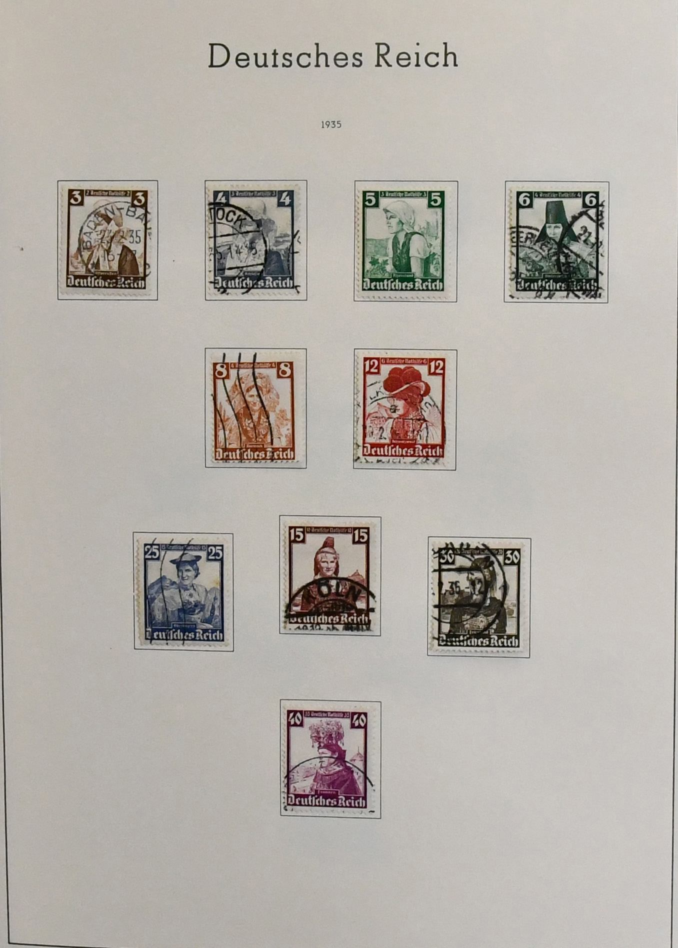 III. Reich, 1933-41, gest. Sammlungsteil mit besseren wie Kolonialforscher, WHW Stände, Trachten, Olympia, Nr. 634-42, Block-Einzelmarken wie Nr. 649 (ungest.), 651-59, 695-97, 698-99, Danzig-Abschied etc.