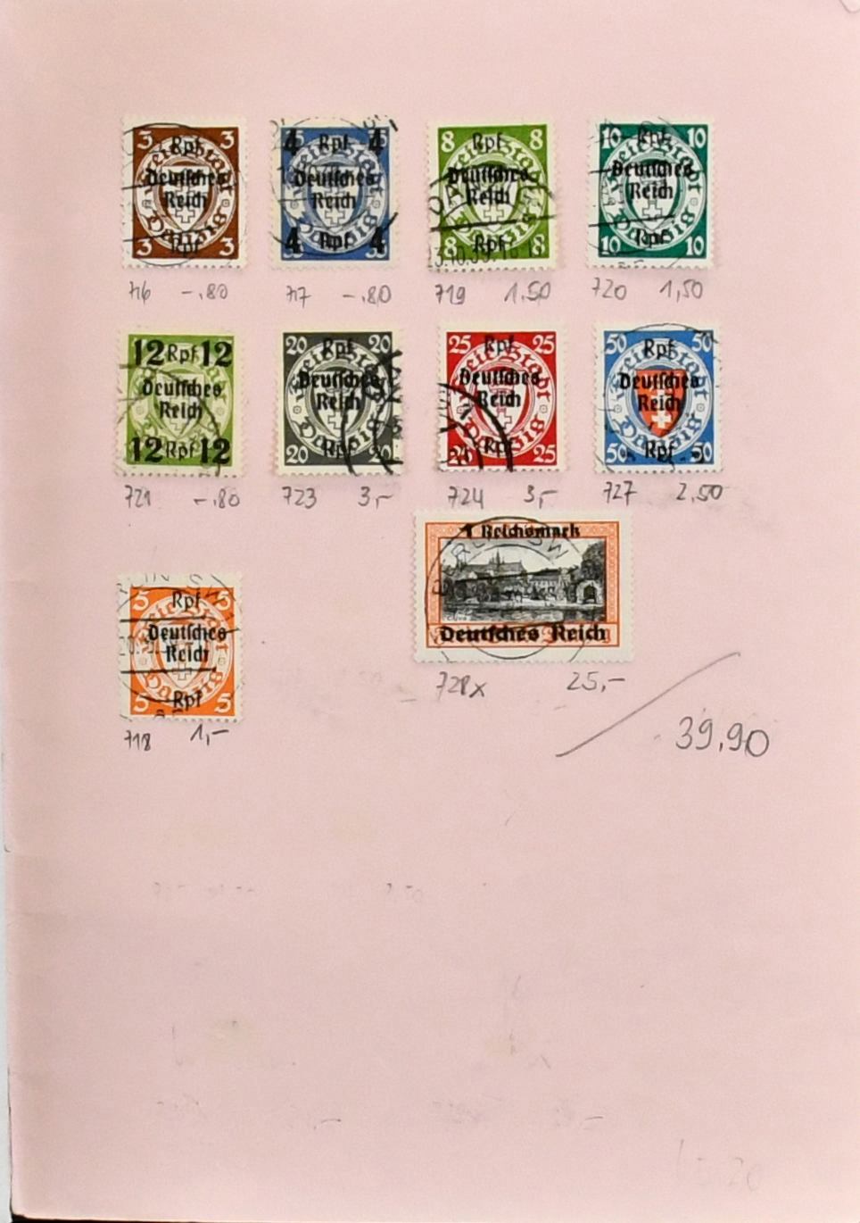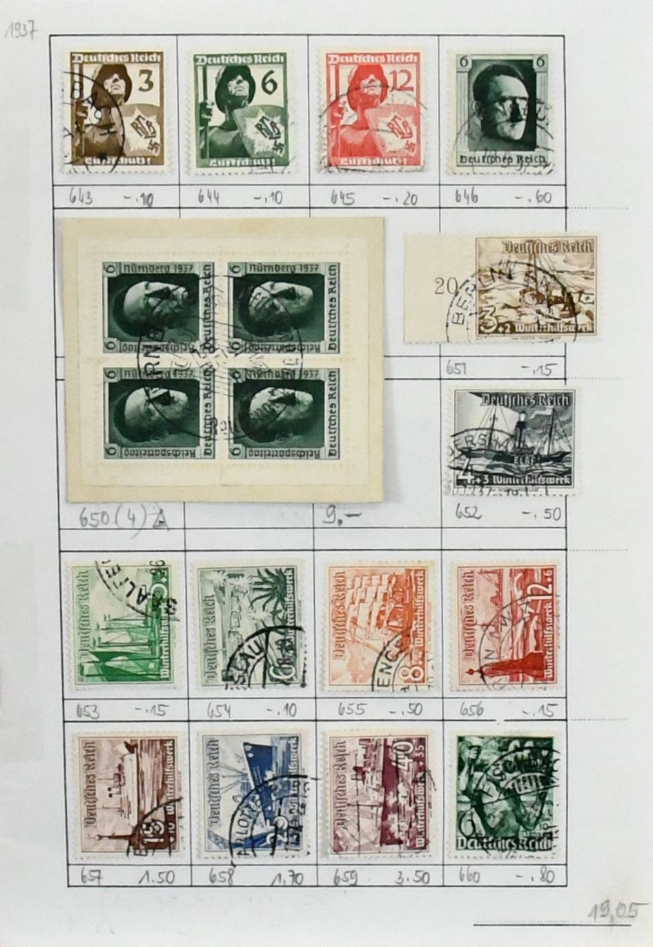 Deutsches Reich, ab 1930, Nachlaßslg. mit u.a. Nr. 462 gest. (Mi. 100,-), 474/78 gest. (110,-), 603 postfr., Bl. 7/8, auf Vordrucken