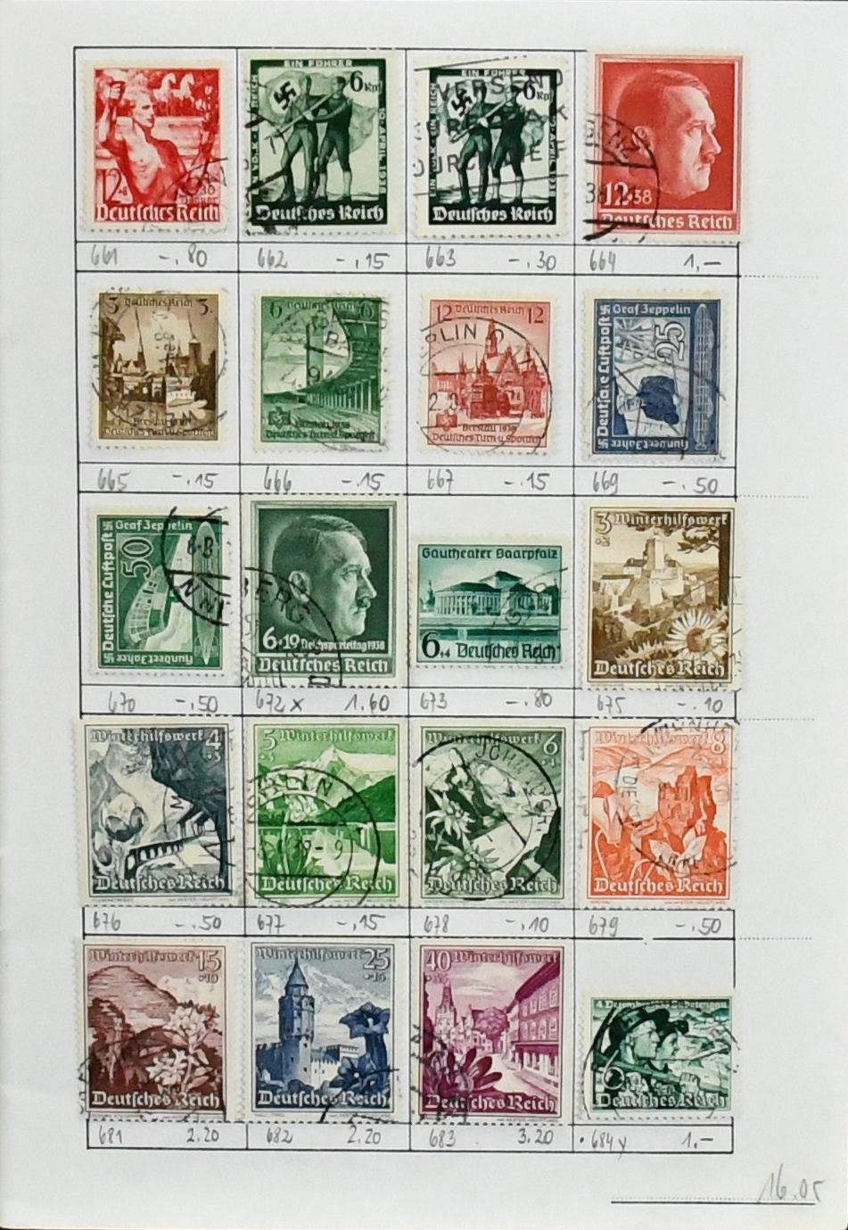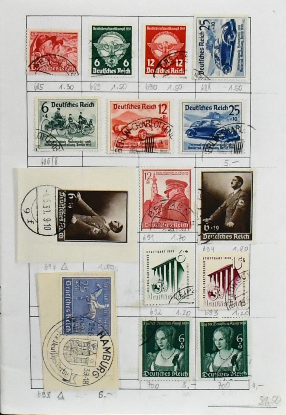 Deutsches Reich, ab 1933, kleine Slg., untersch. Erhaltung, mit u.a. Nr. 479/95, 512/28 postfr., 556/63 gest., Nothilfe-Satz von 1935 usw., auf Vordrucken