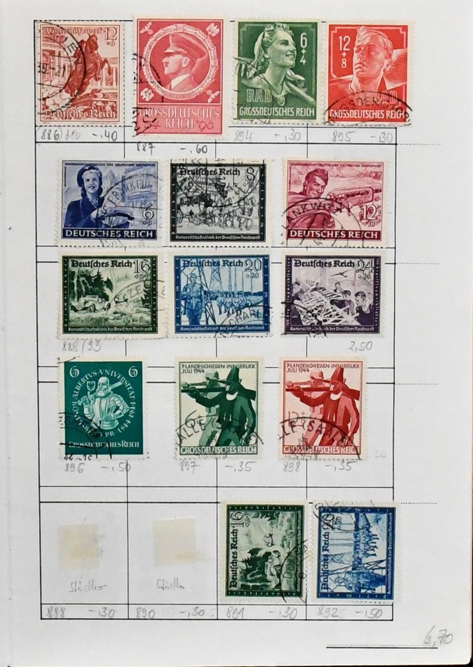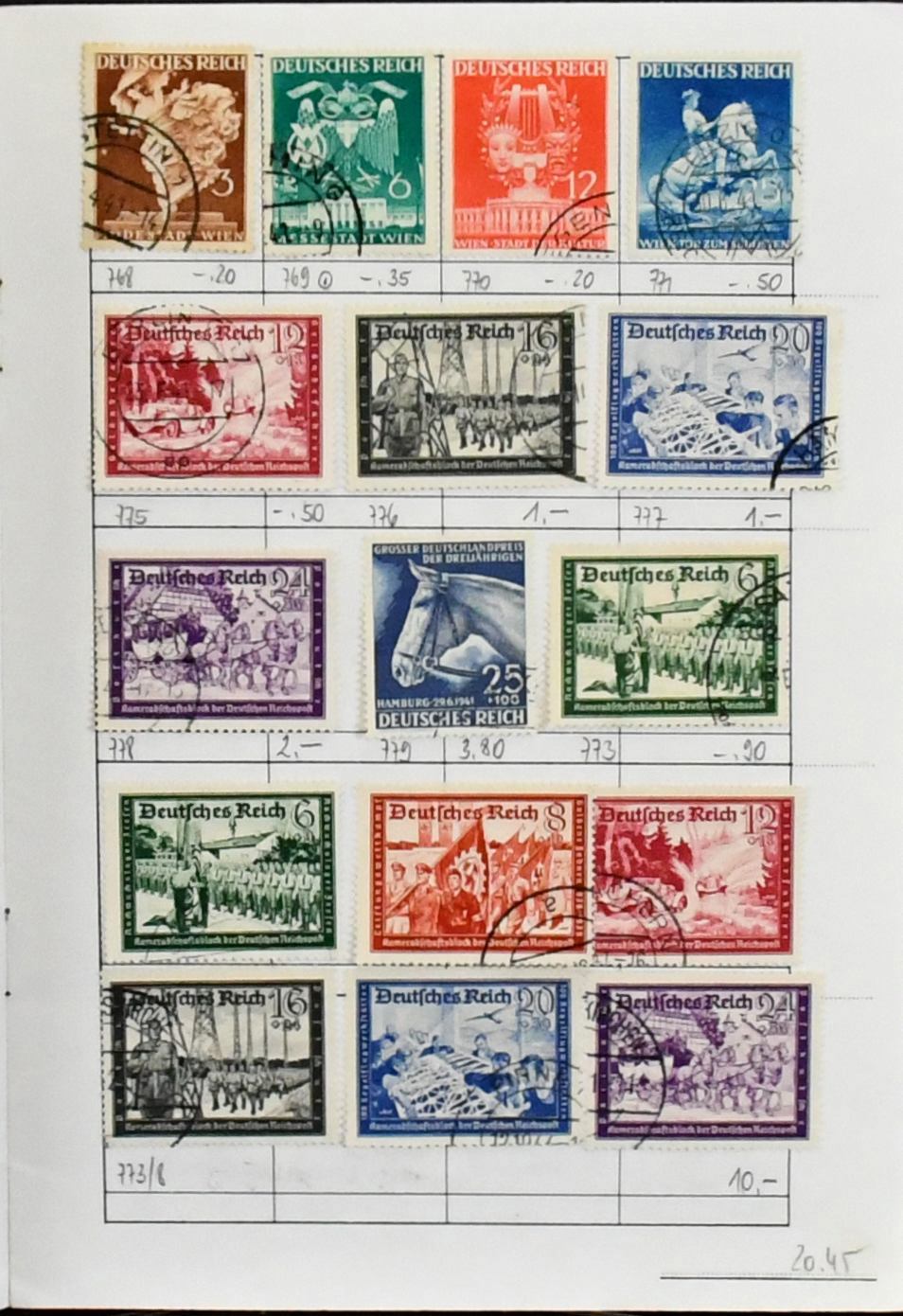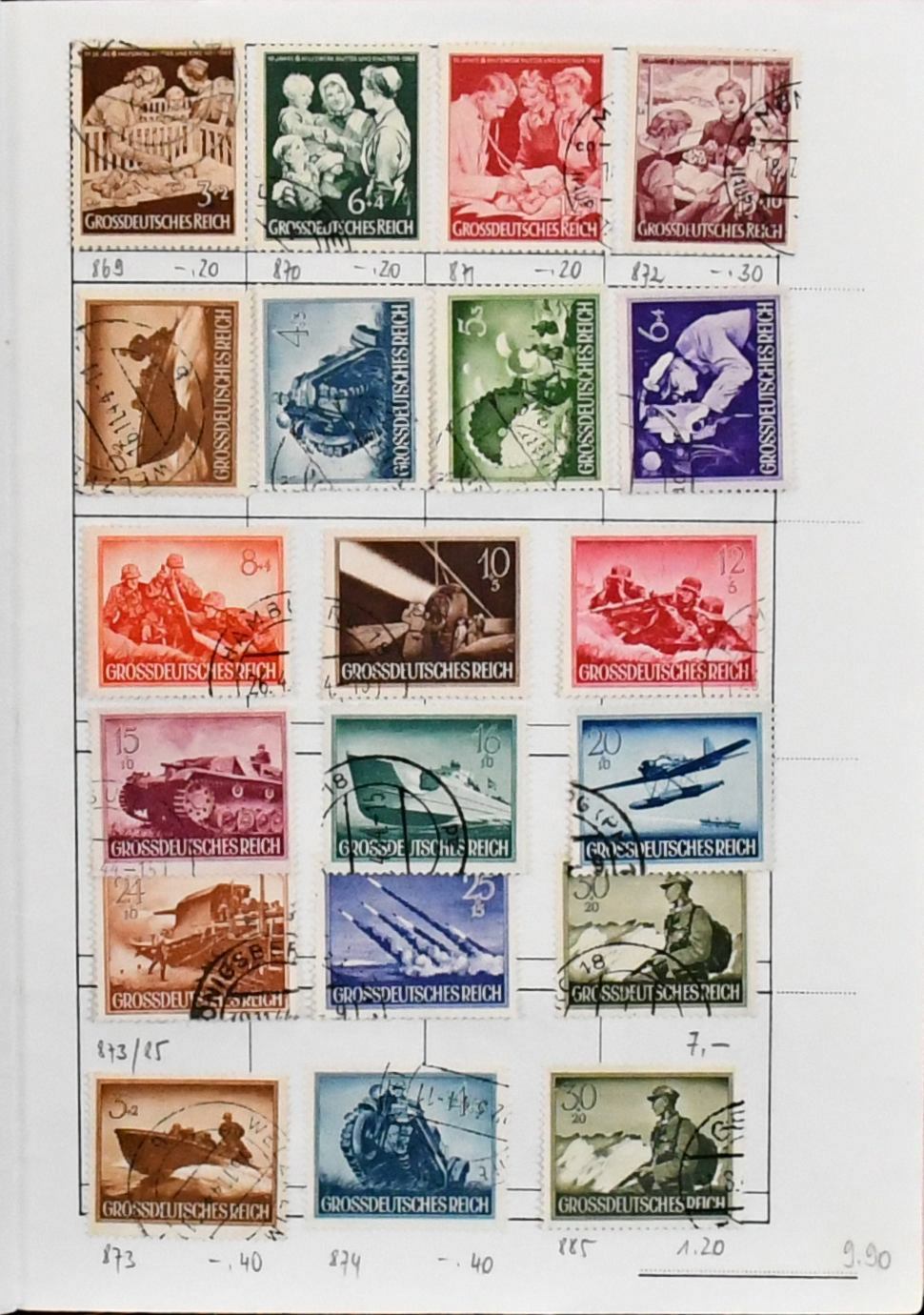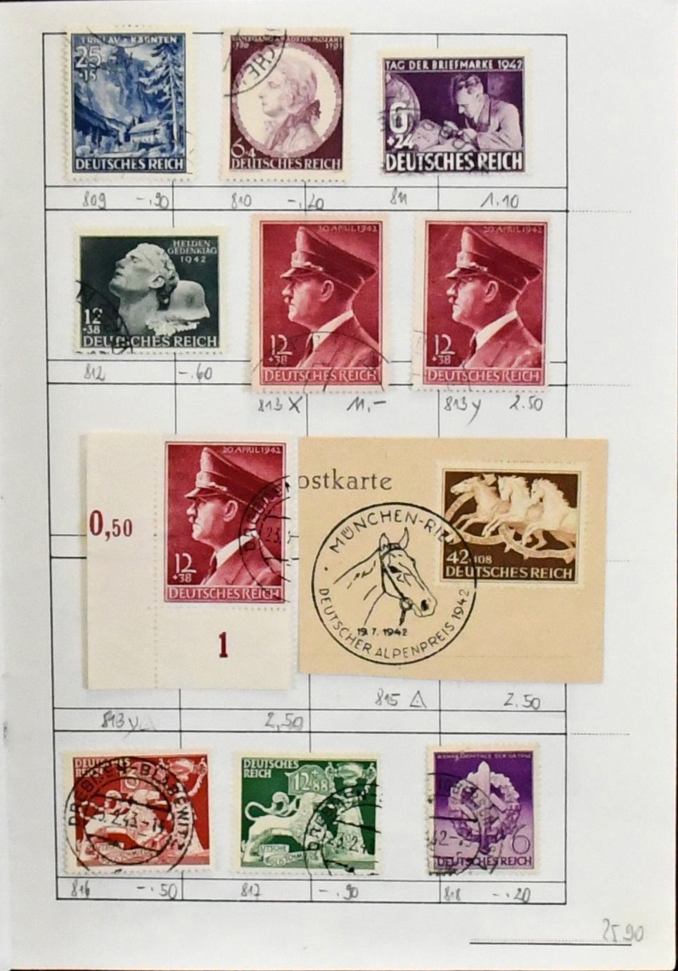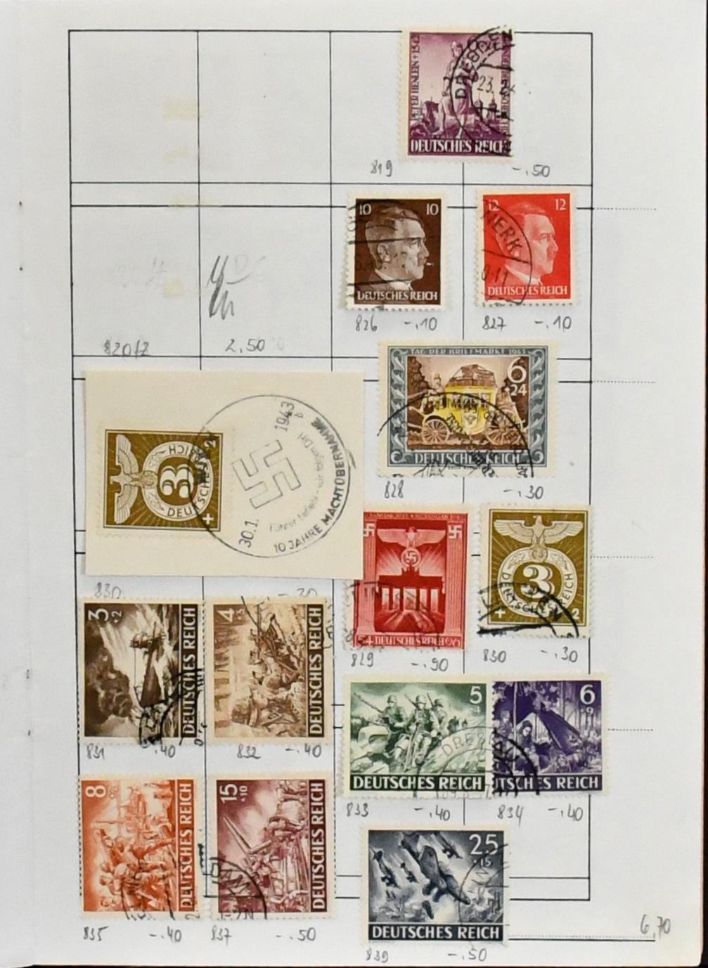Deutsches Reich, 1937/1945, gest. Slg. mit u.a. Winterhilfen 1937/40, Nr. 698 mit SST auf Luxusbriefstück, Nr. 728, 746/47, 799/802A usw., bis Nr. 909/10 mit Gefälligkeitsstempel