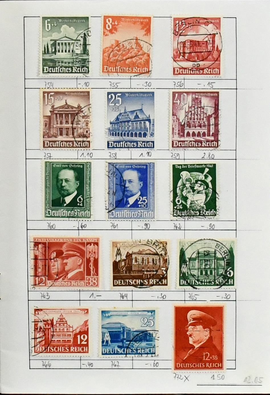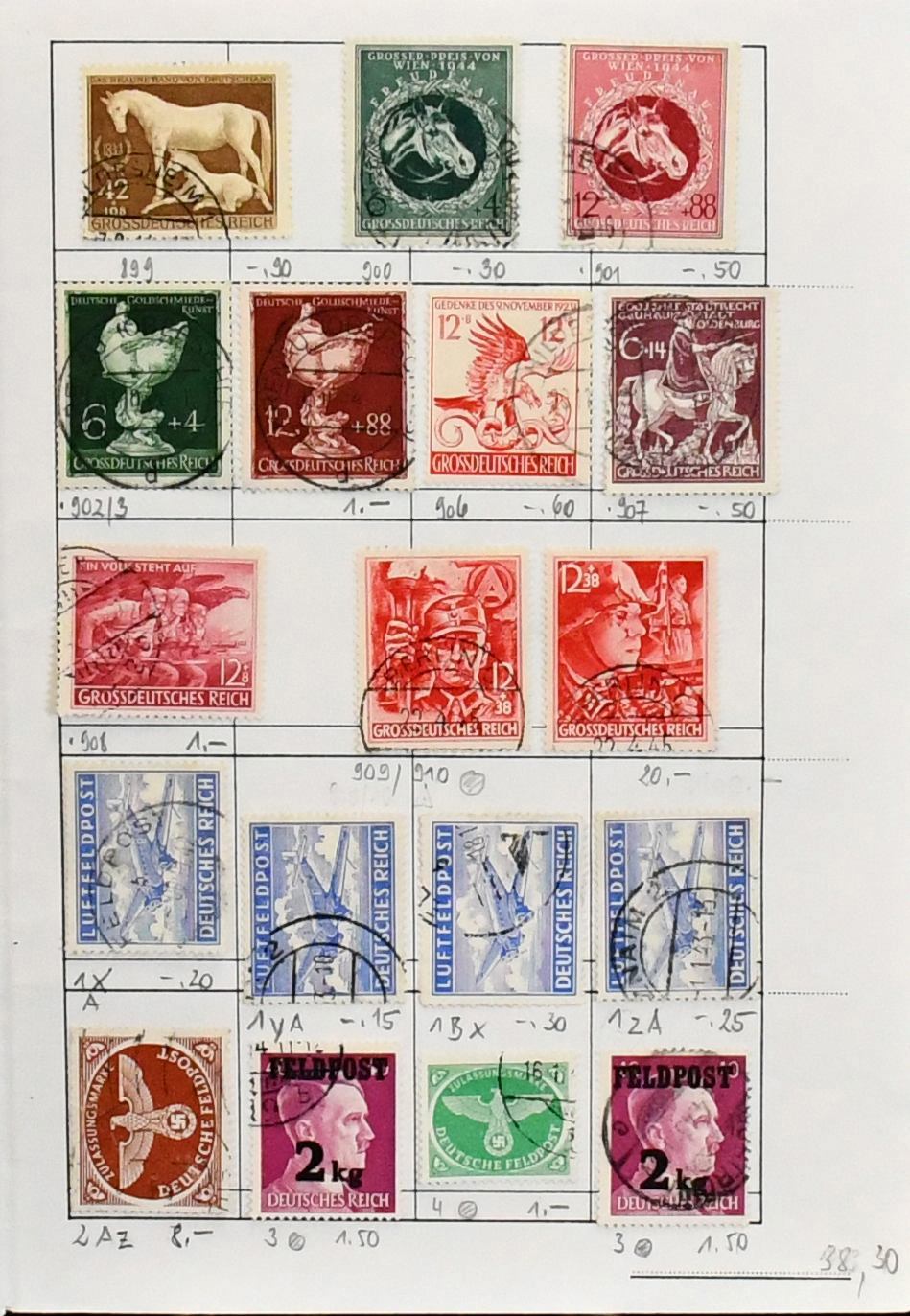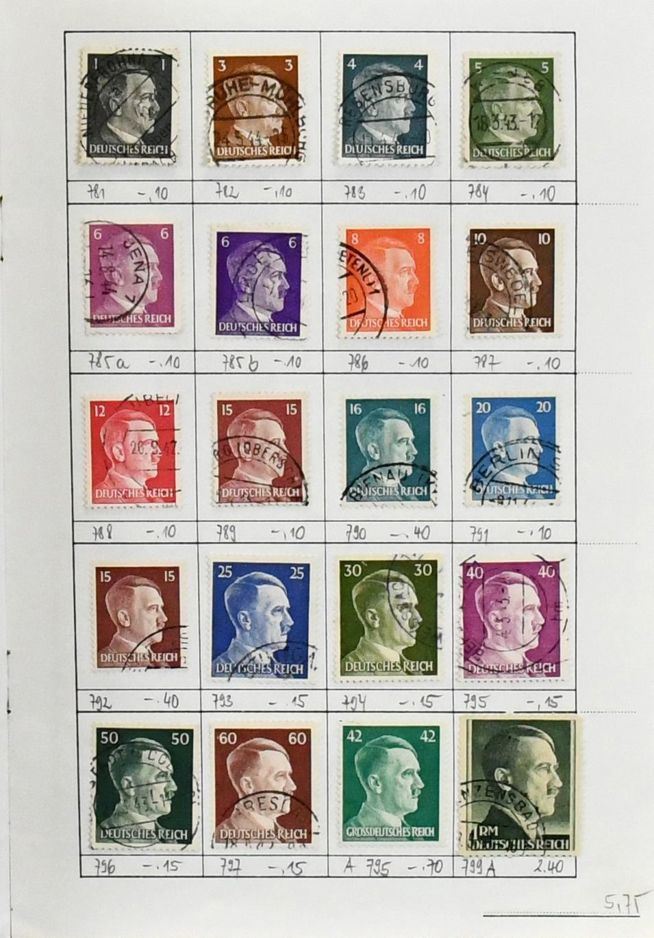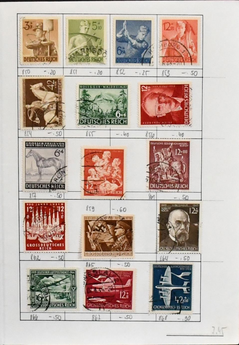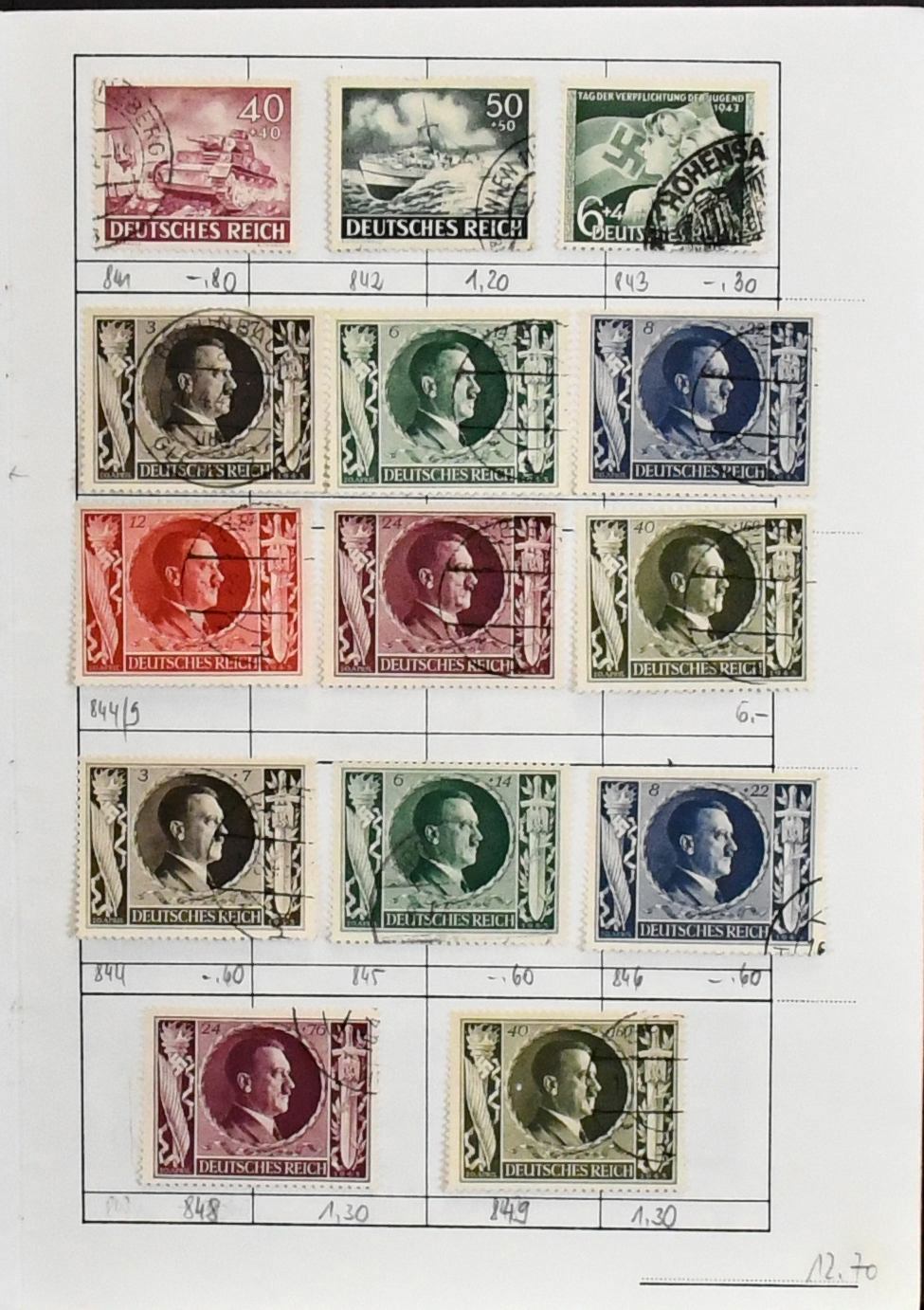 Deutsches Reich, 1937/1945, gest. Slg. mit u.a. Winterhilfen 1937/40, Nr. 698 mit SST auf Luxusbriefstück, Nr. 728, 746/47, 799/802A usw., bis Nr. 909/10 mit Gefälligkeitsstempel