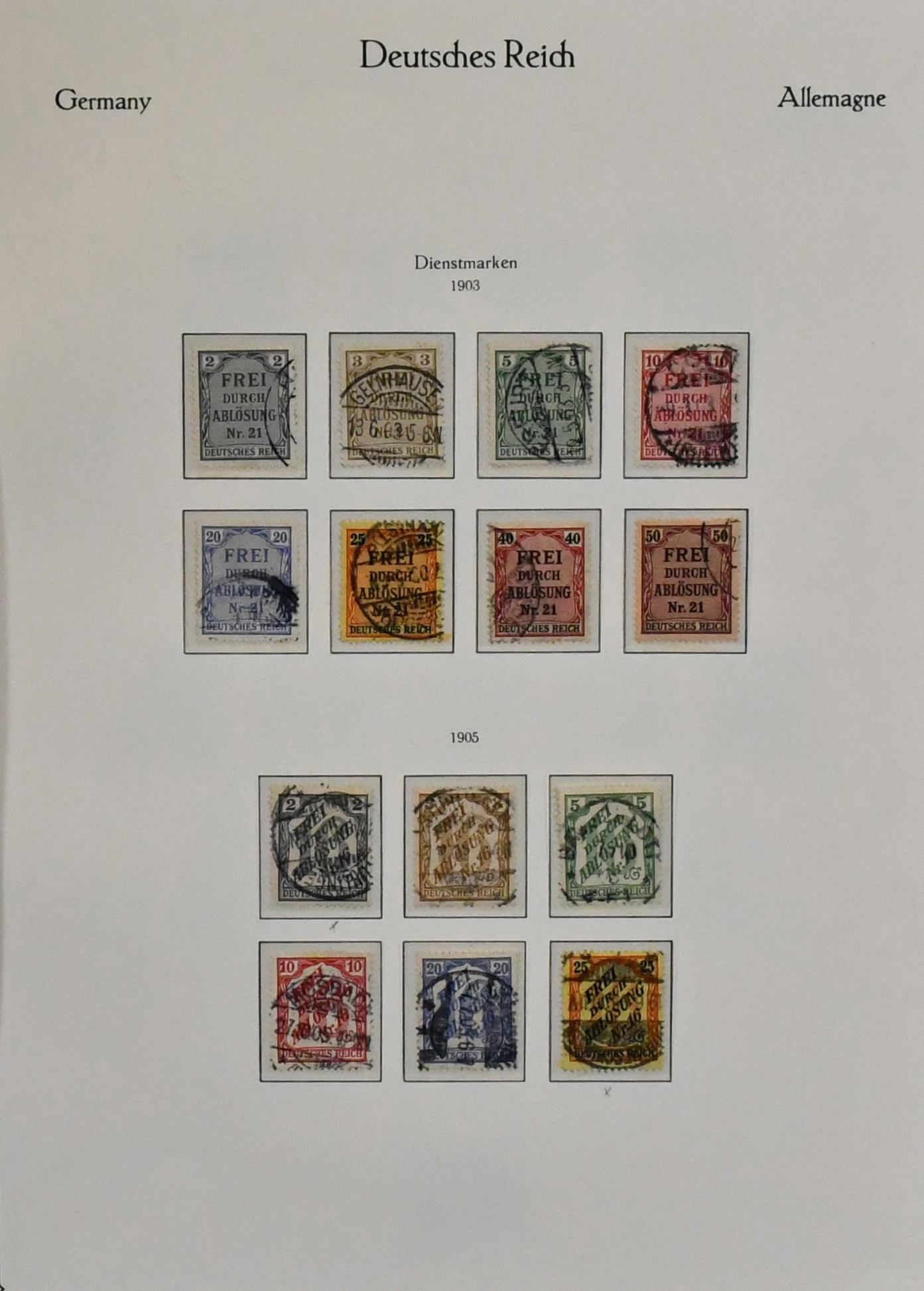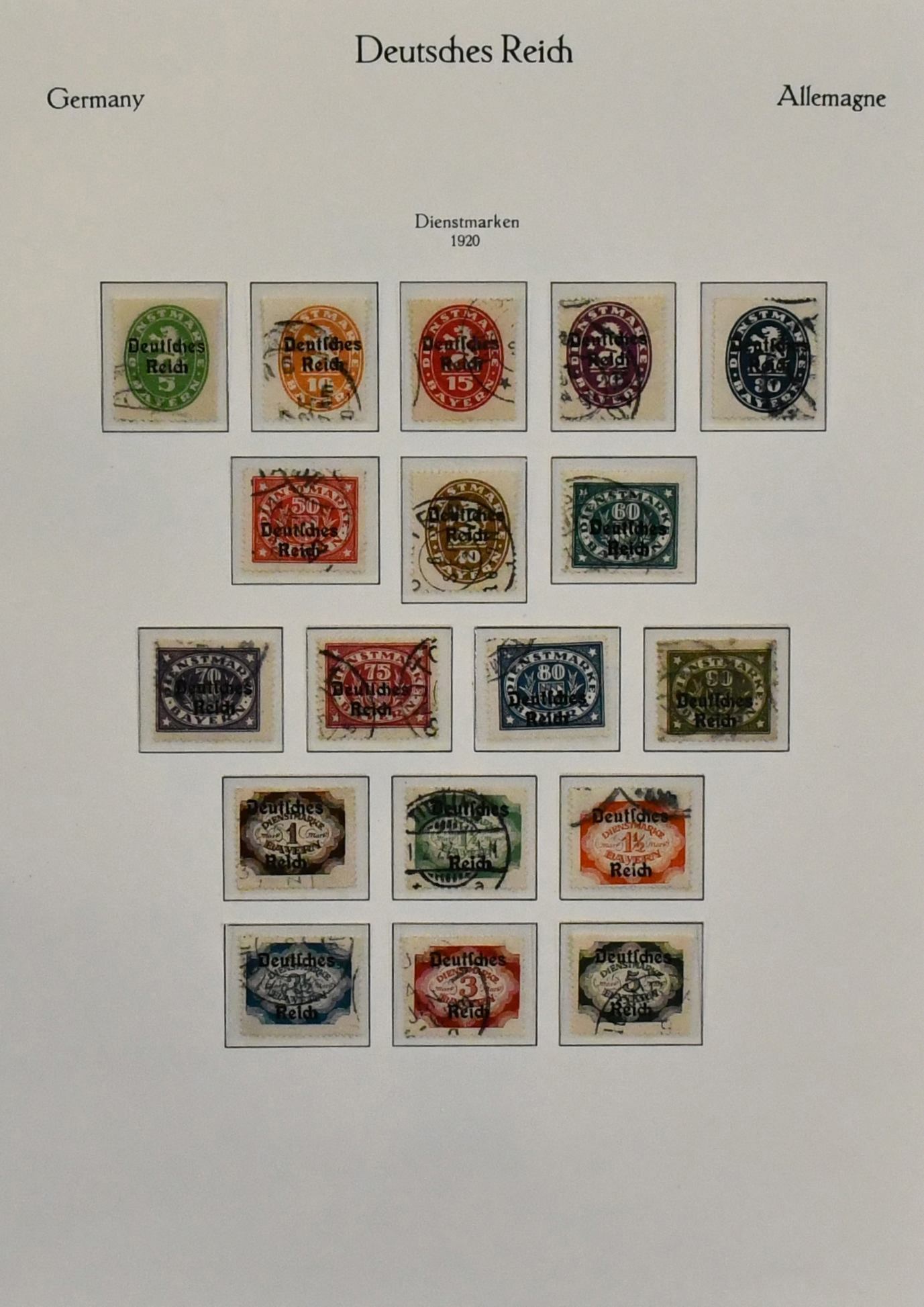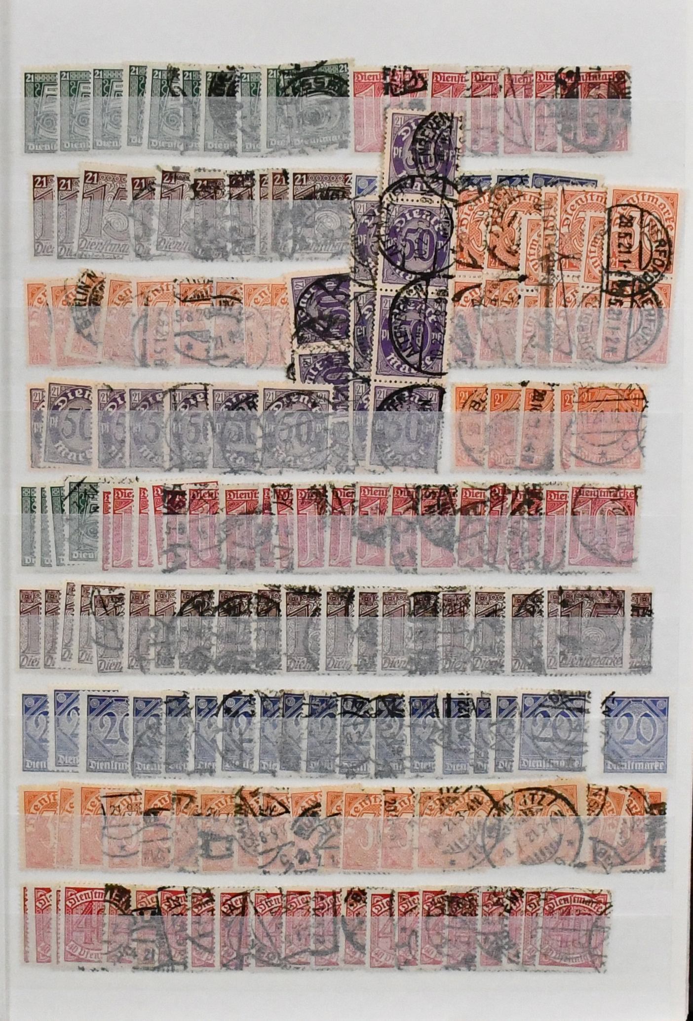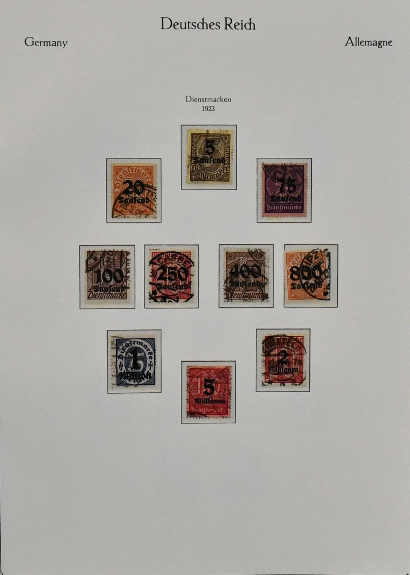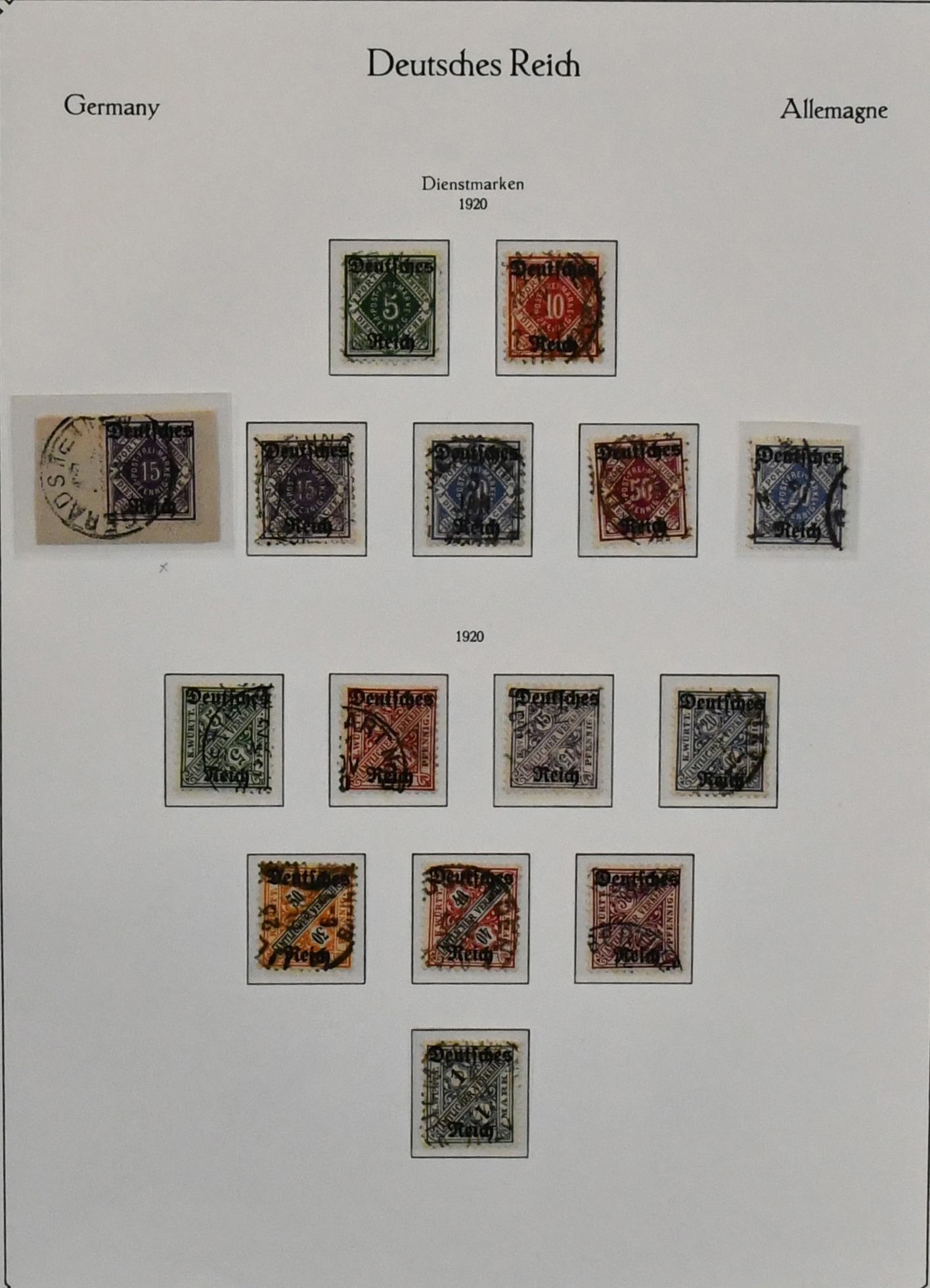 Dienst, postfr./ungebr. und gest. Posten, chronologisch auf SAFE-Blättern aufgezogen. Dabei Nr. 34/51 mehrf. gest., 83/88 auf Briefteil, viele bessere Infla-Werte, teils mit zweifelhaften Stempeln (ungeprüft) usw. Der Sammler ermittelte einen Michelwert von 12.000,-, unter Berücksichtigung des ungeprüften Inflateils vorsichtig taxiert