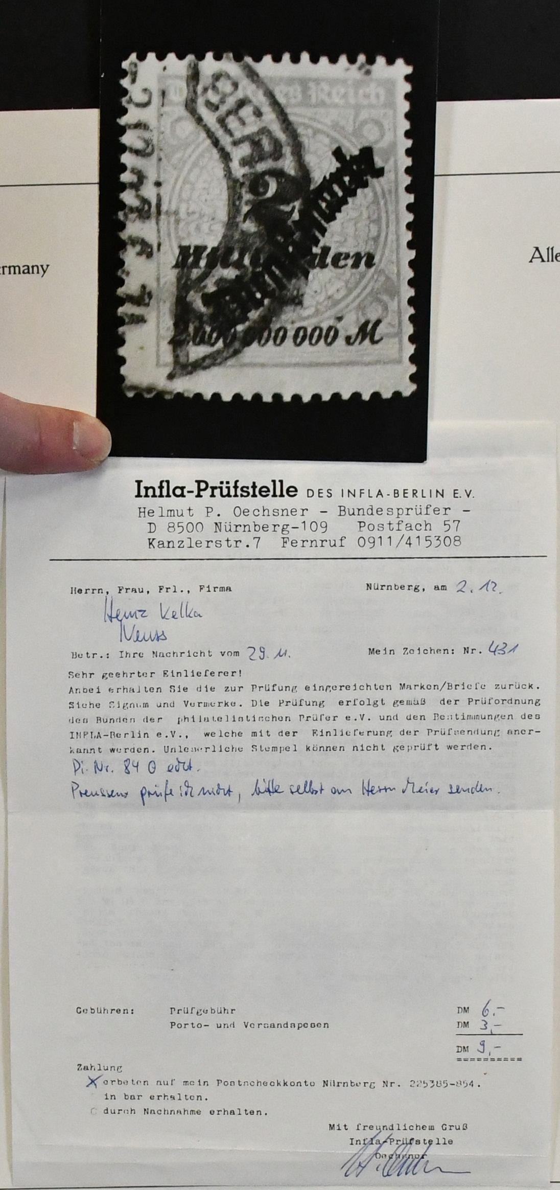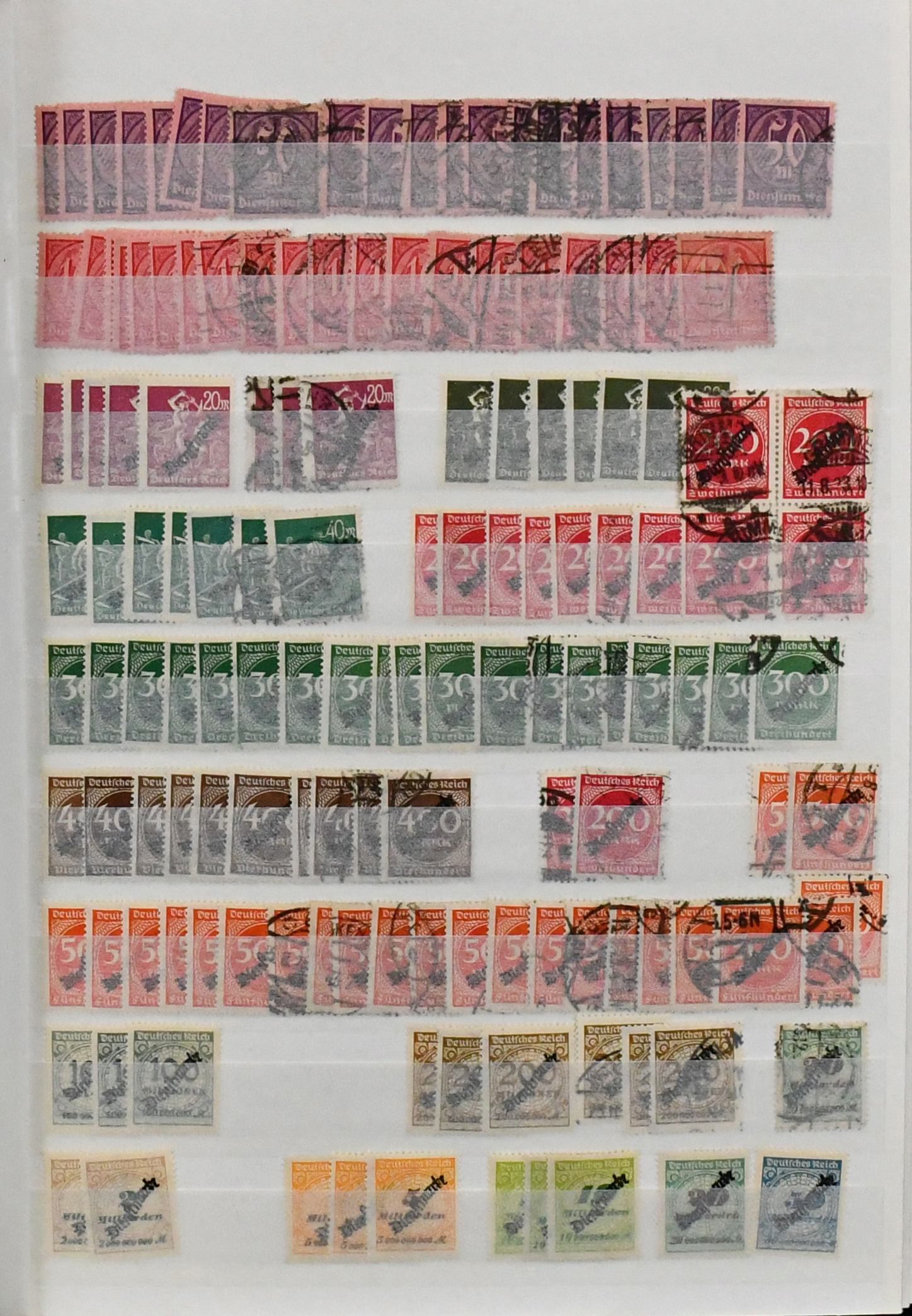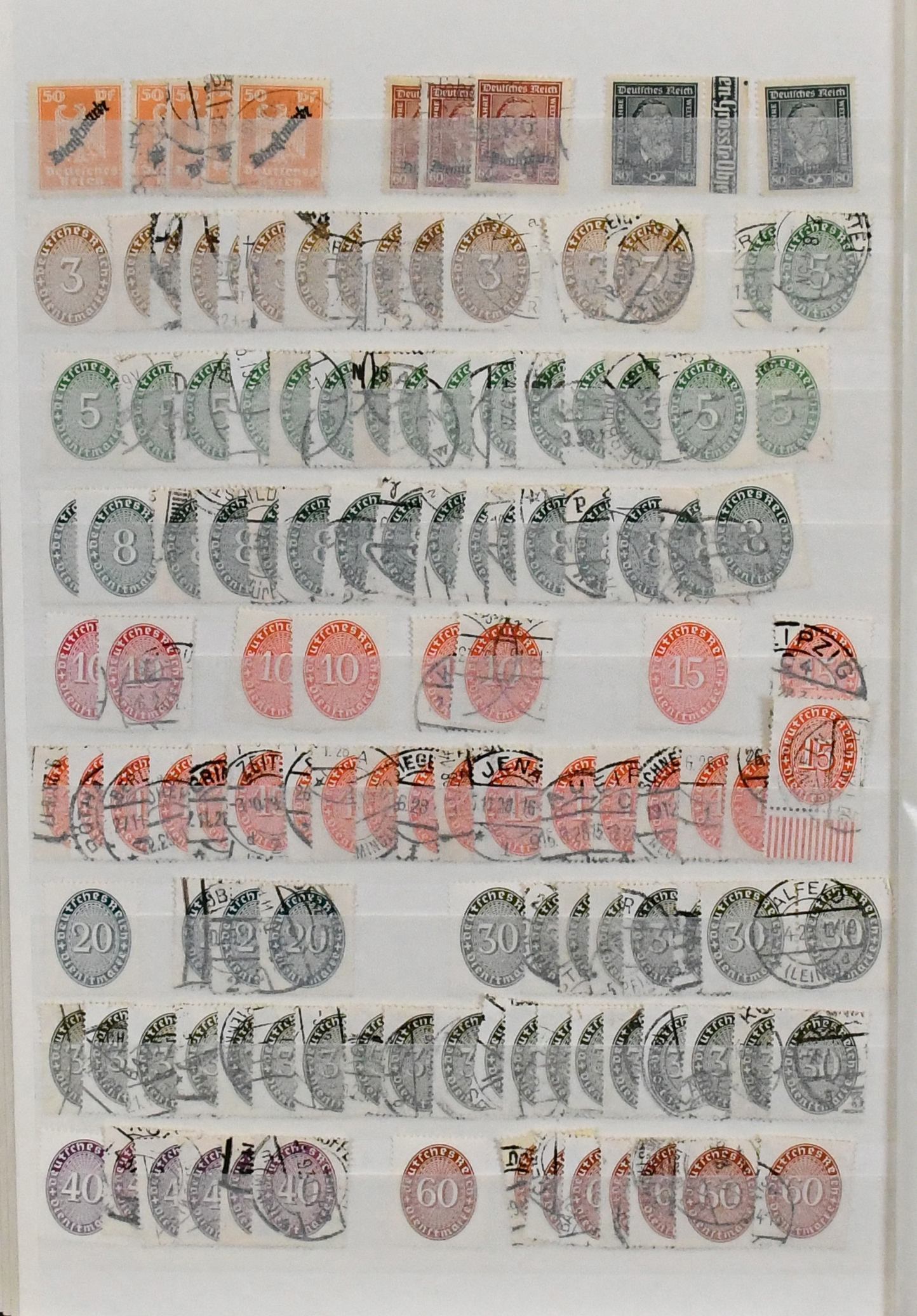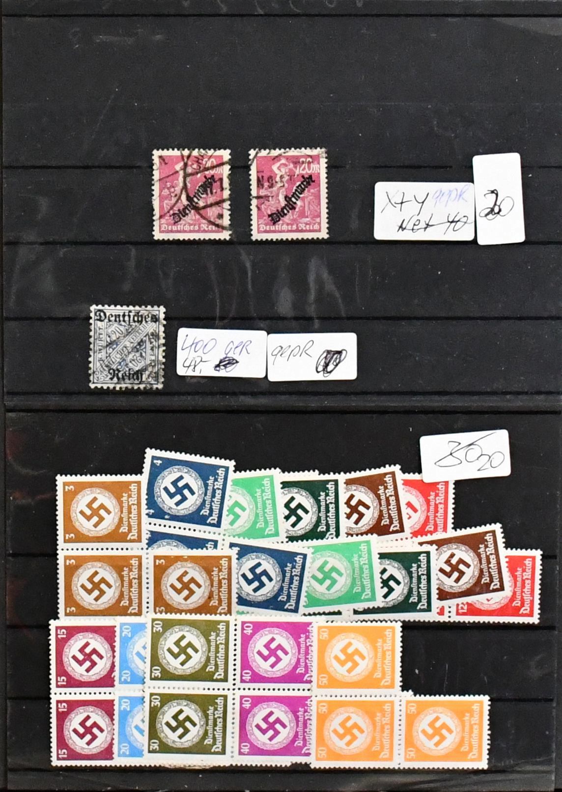 Dienst, postfr./ungebr. und gest. Posten, chronologisch auf SAFE-Blättern aufgezogen. Dabei Nr. 34/51 mehrf. gest., 83/88 auf Briefteil, viele bessere Infla-Werte, teils mit zweifelhaften Stempeln (ungeprüft) usw. Der Sammler ermittelte einen Michelwert von 12.000,-, unter Berücksichtigung des ungeprüften Inflateils vorsichtig taxiert