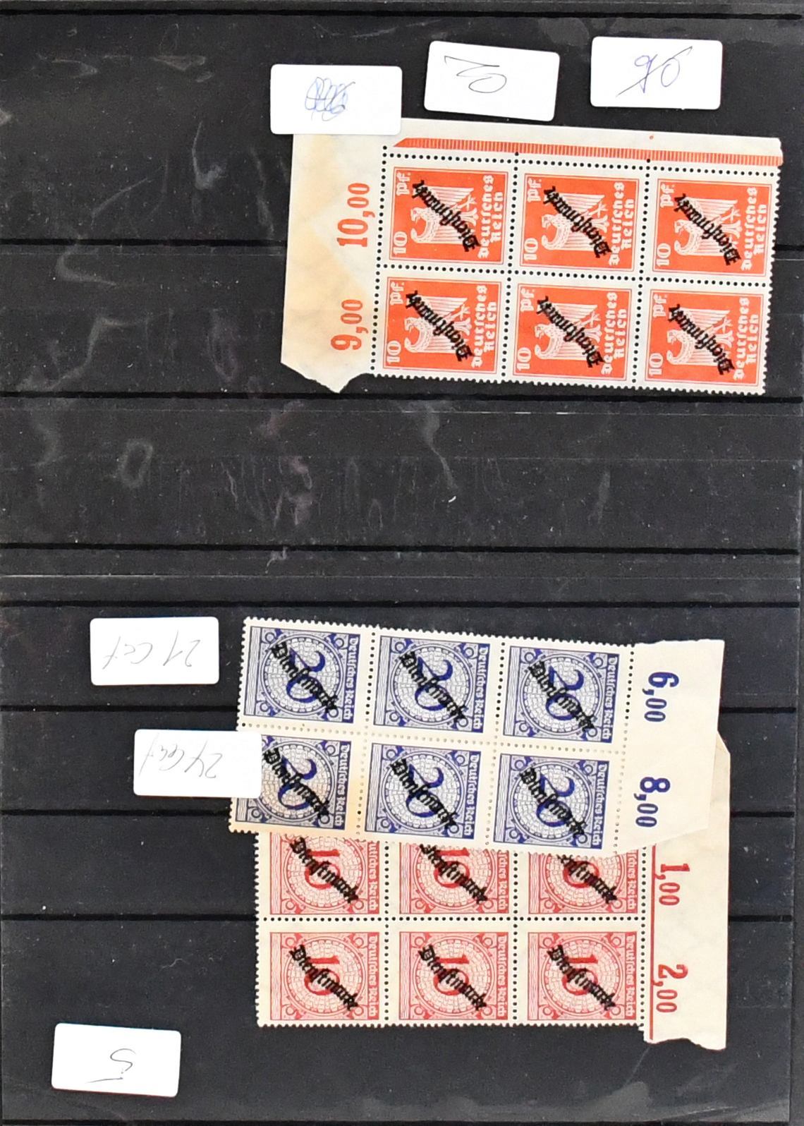 Deutsches Reich Dienst, Zusammenstellung inkl. einiger Besonderheiten wie postfr. Bogenecken Nr. 108 (WOR) und 110 (POR), 113 postfr. und neunmal gest., 130 postfr., Partei- und Behördendienst mit zweimal Nr. 177 gest. (ungepr.) usw. Mi. ca. 4500,-, günstig!