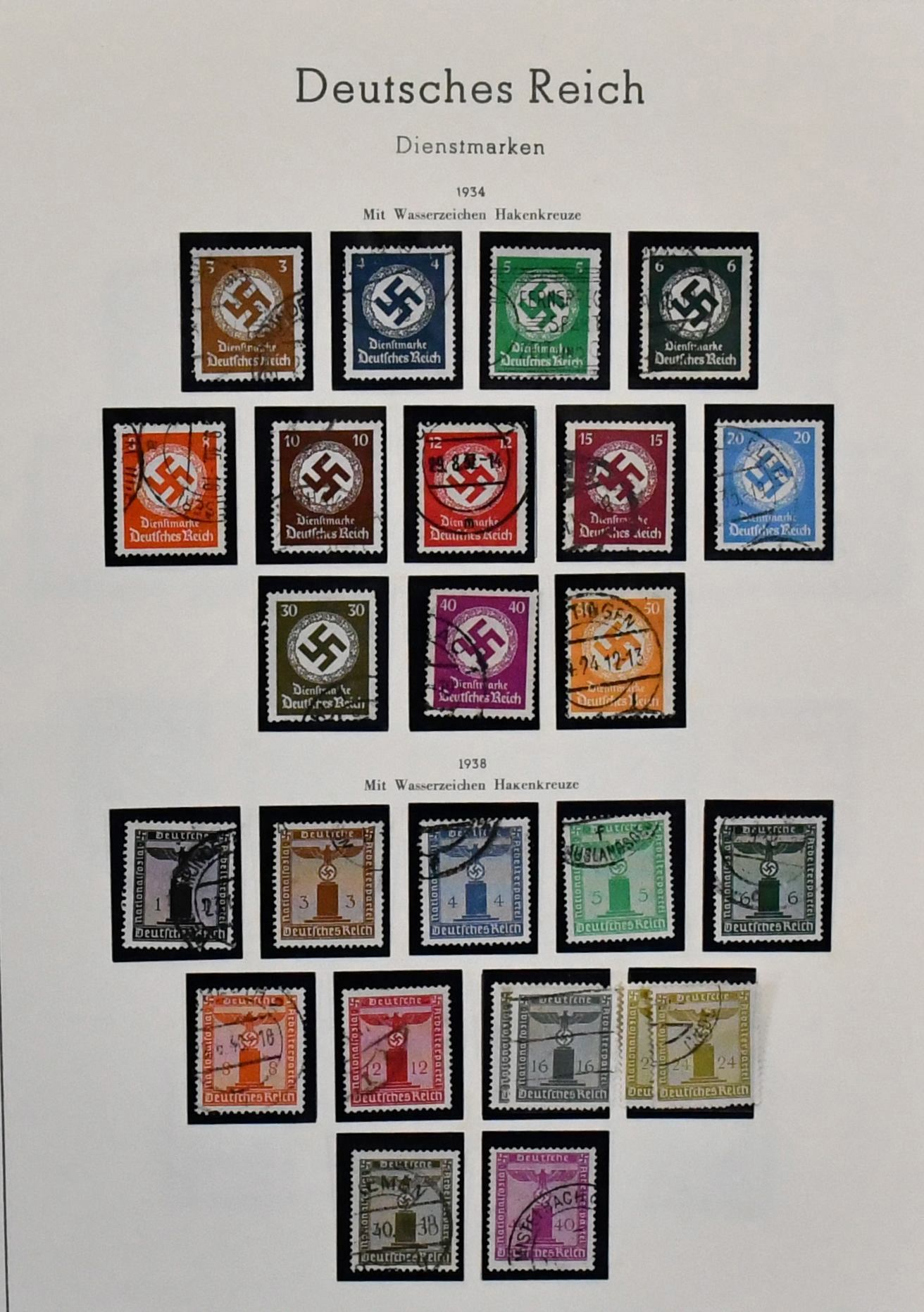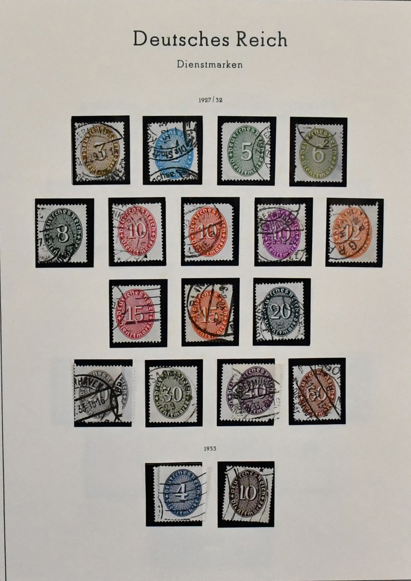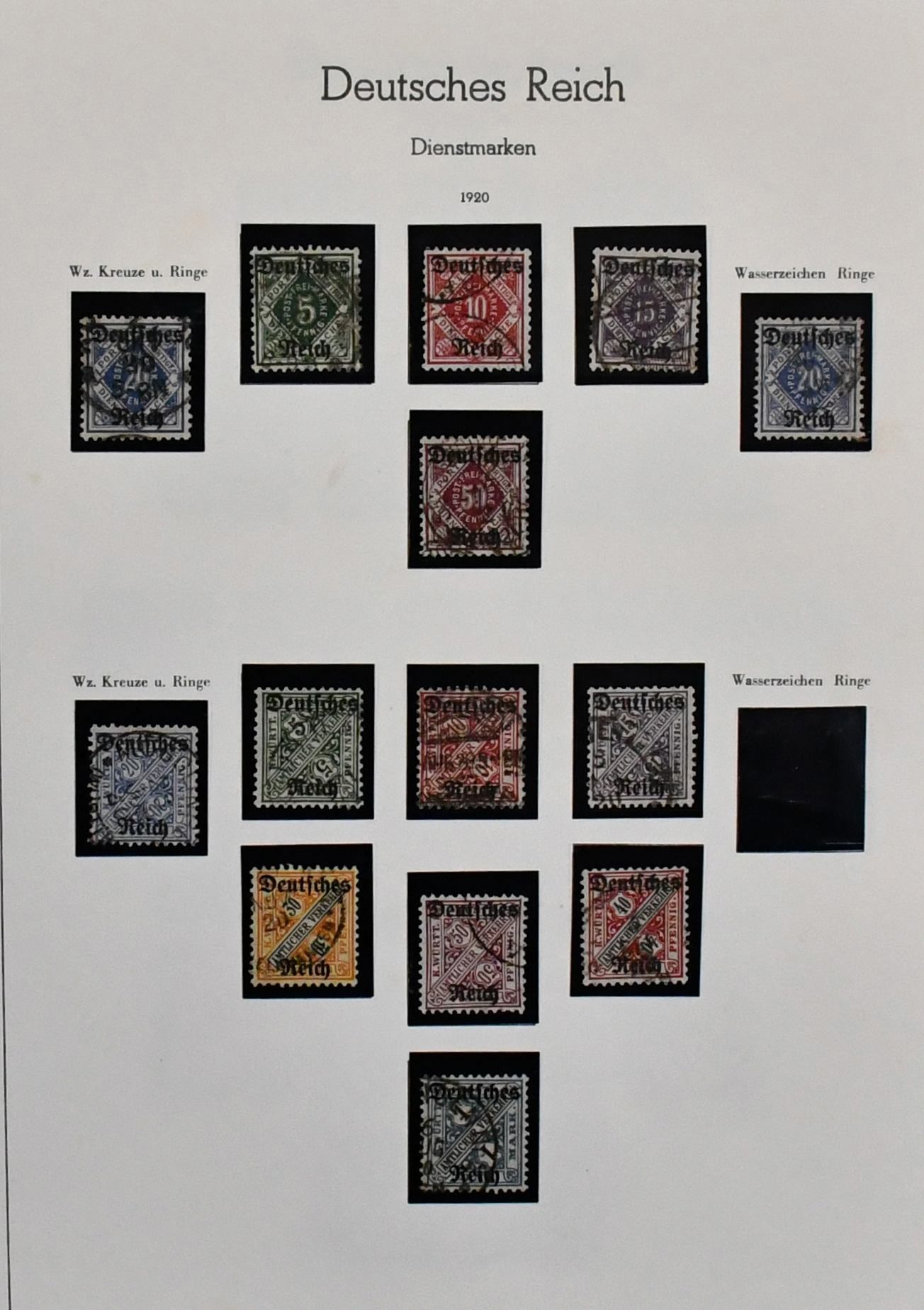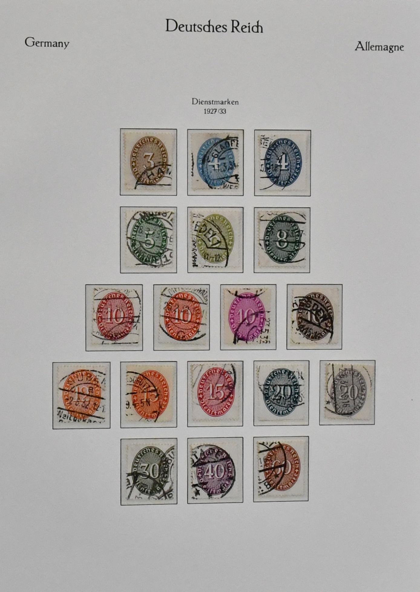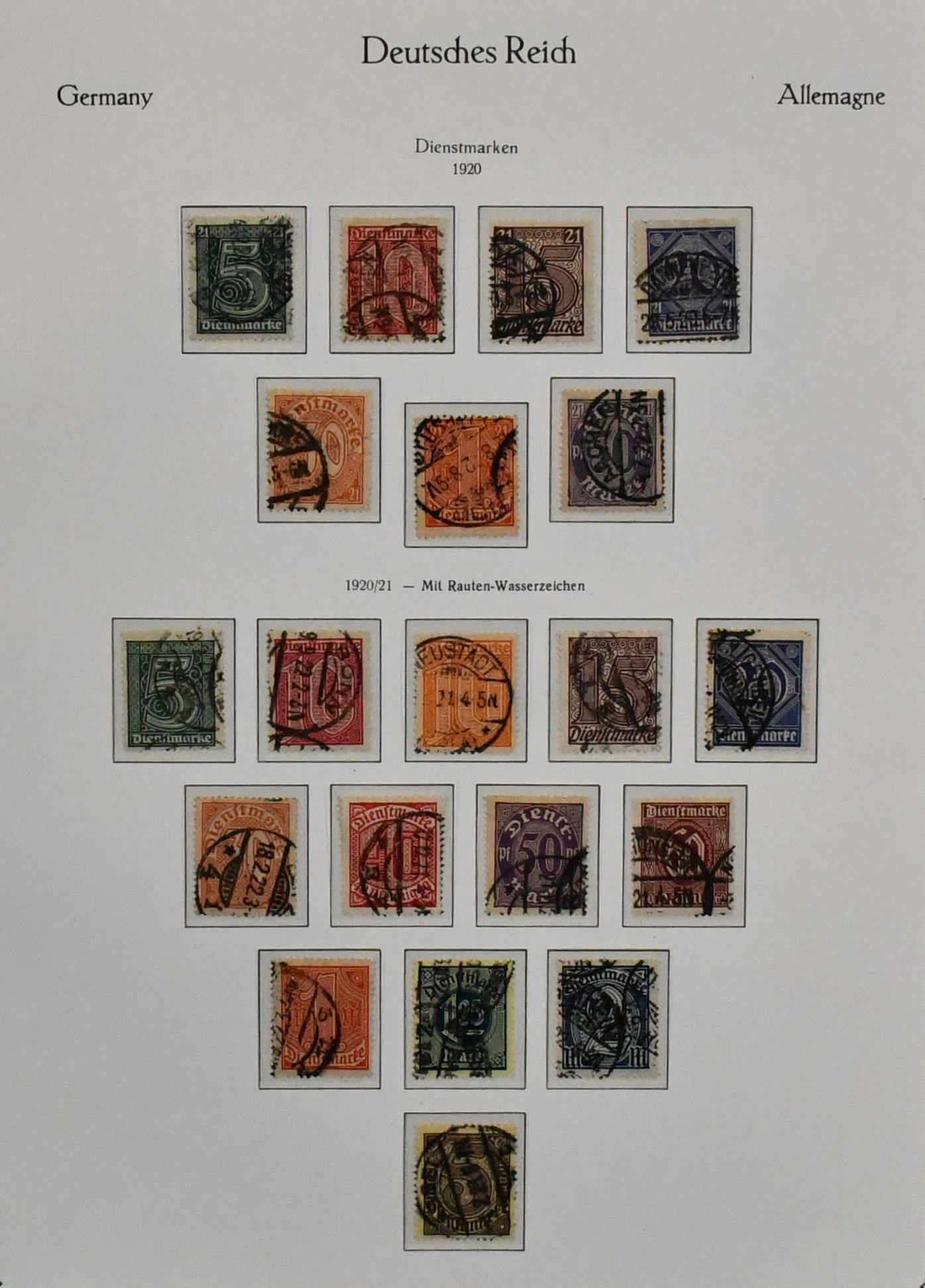 Dienst, alte gestempelte, von Nr. 16-177 komplette Slg., teils untersch., mit allen besseren Ausgaben (Infla ungeprüft), dabei Nr. 34/64, 65, 75/88 usw., auf uralten Vordrucken. Mi., wenn alle Stempel echt, 4000,-