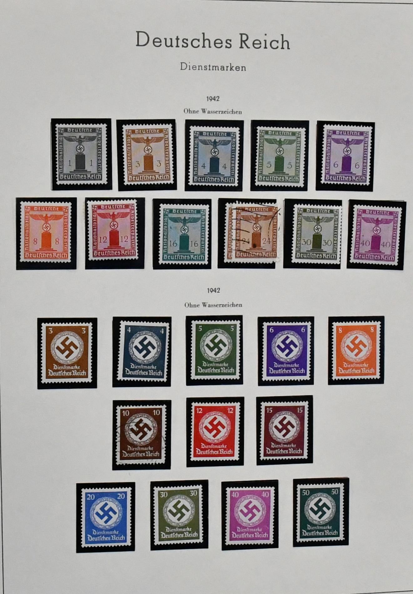 Dienst, gest. Slg. ab Nr. 1/8, mit u.a. Nr. 14, 16/51, 89/98, 99/154, 166/77 usw., auf Schaubek-Vordrucken. Mi. 1500,-, dazu ungeprüfte Nr. 177 unberechnet