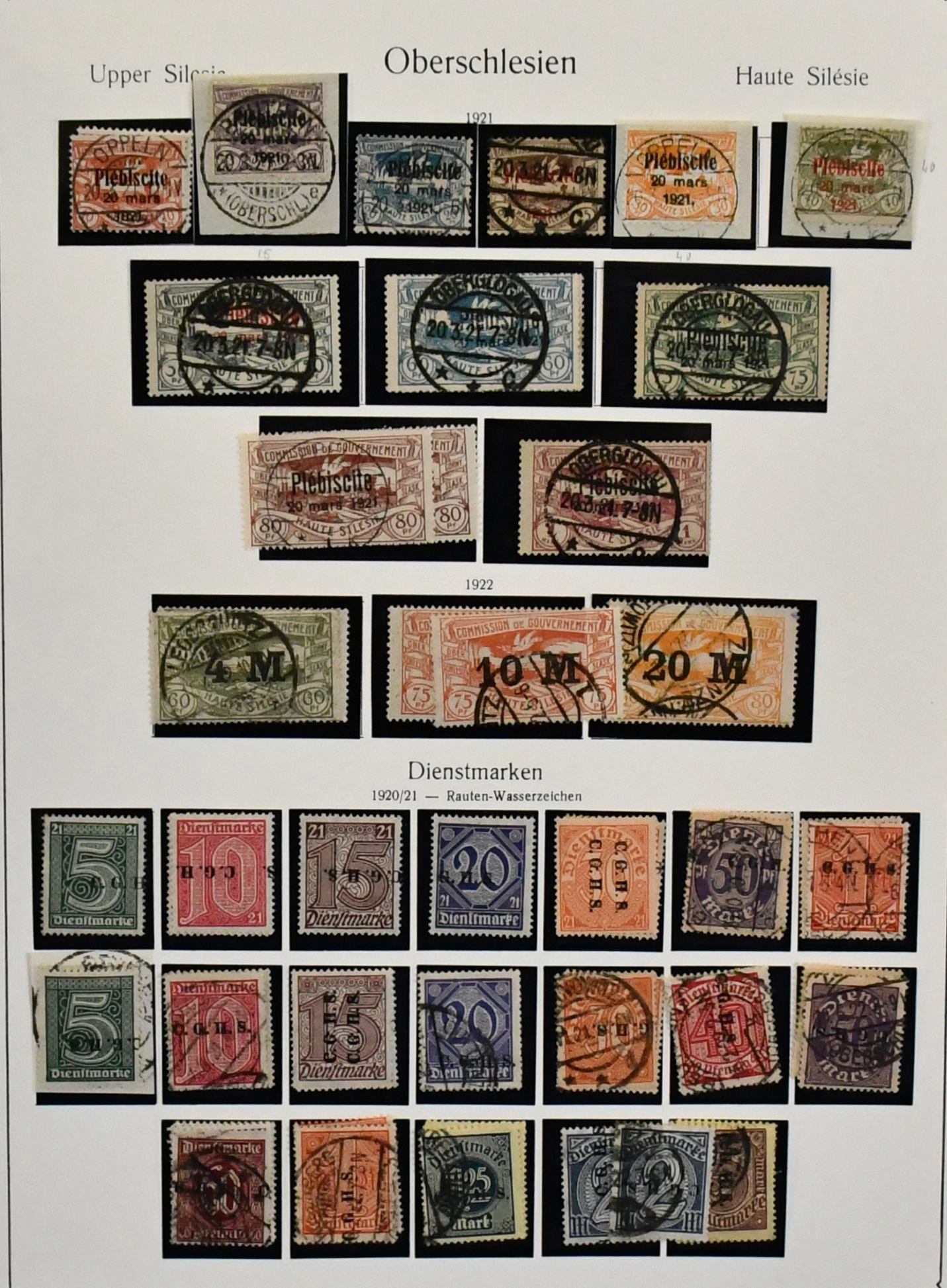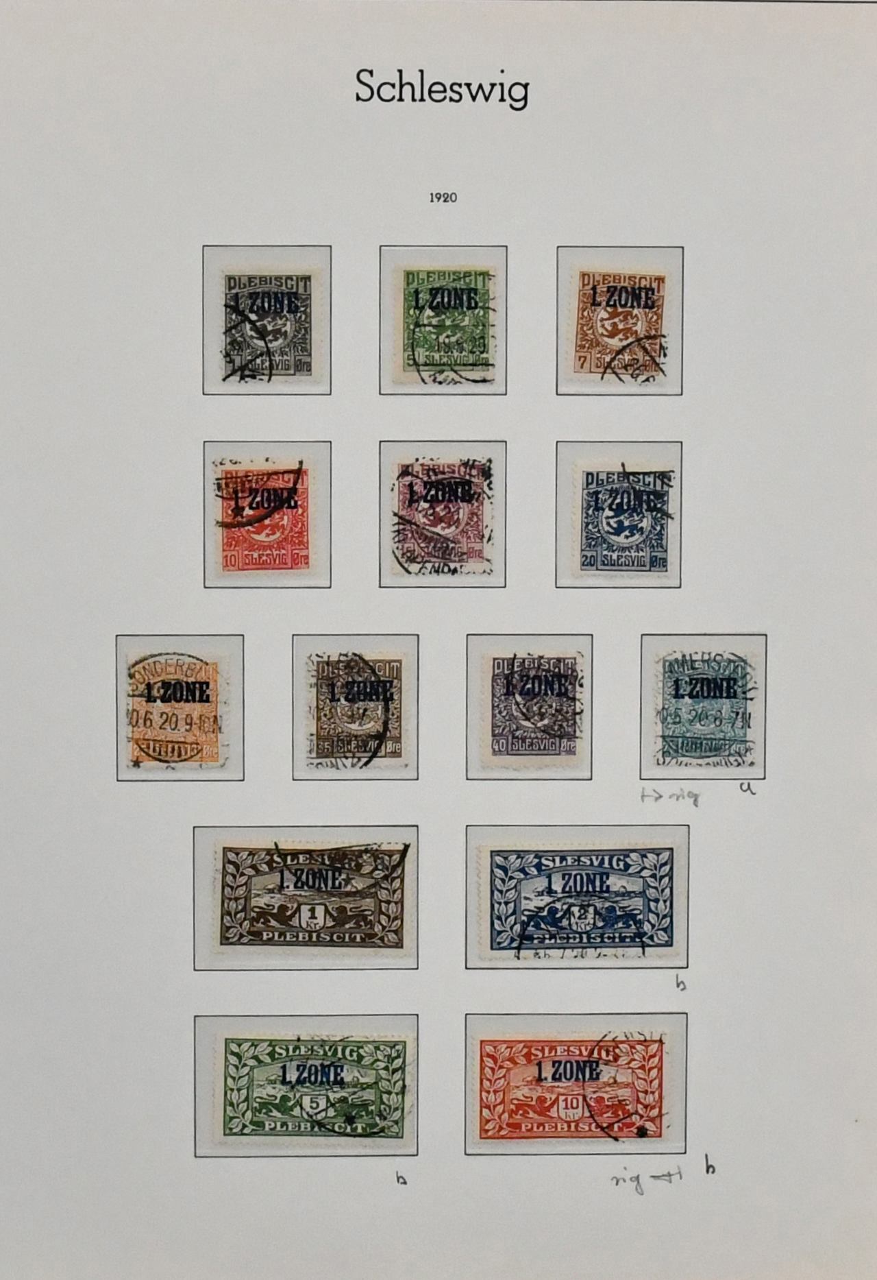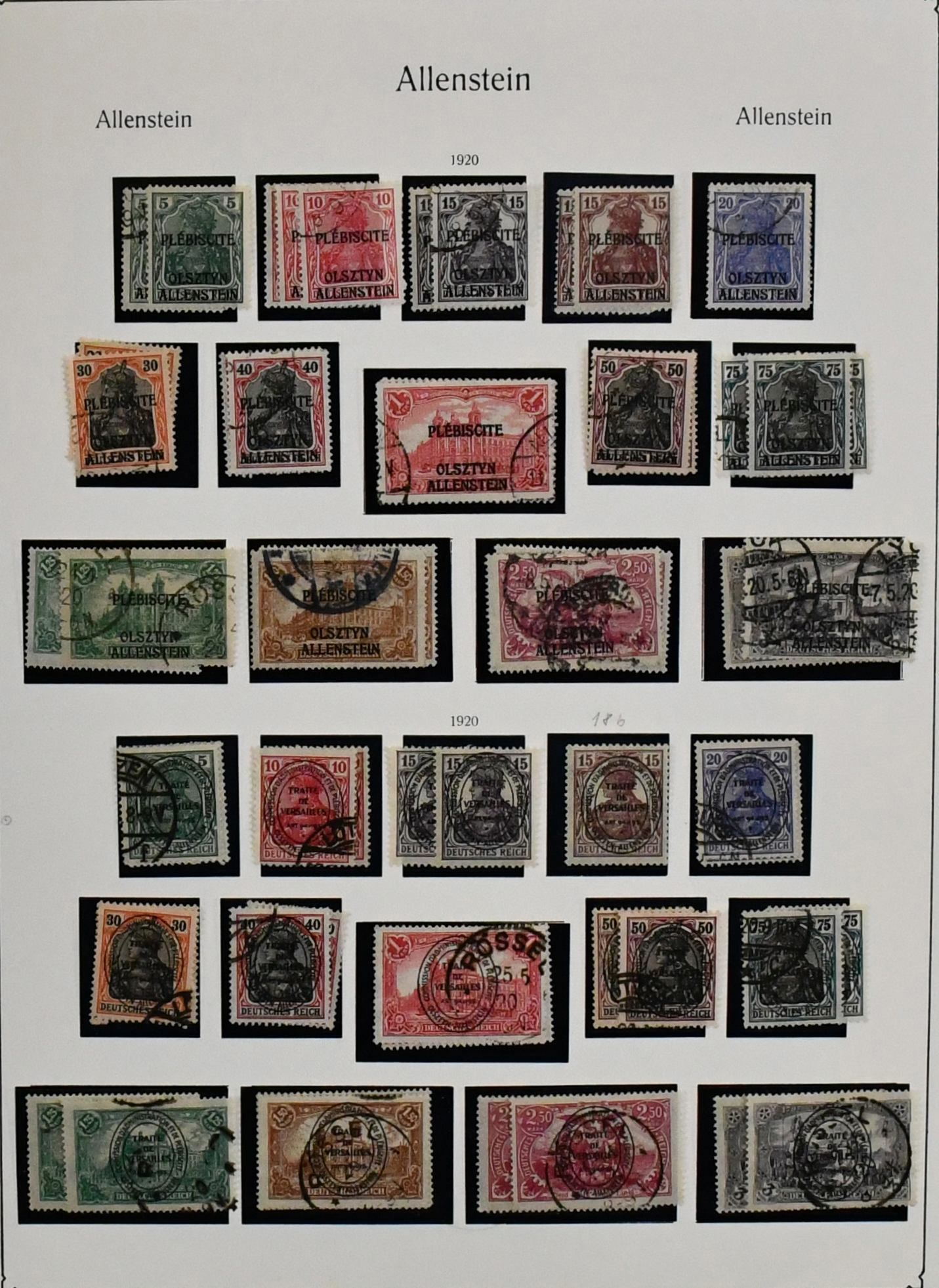Deutsche Abstimmungsgebiete, Allenstein bis Schleswig, gestempelter Sammlungsteil mit Allenstein Nr. 1-28 überkpl. (Farben), Marienwerder Nr. 1-14B teils dopp. mit Wz., Oberschlesien mit Briefstück Nr. 10F mit Altprüfung, 11DD, 12Va, 13-43 überkpl., teils Farben, Dienst, Östl. Oberschlesien Nr. 1-20, Schleswig Nr. 1-23