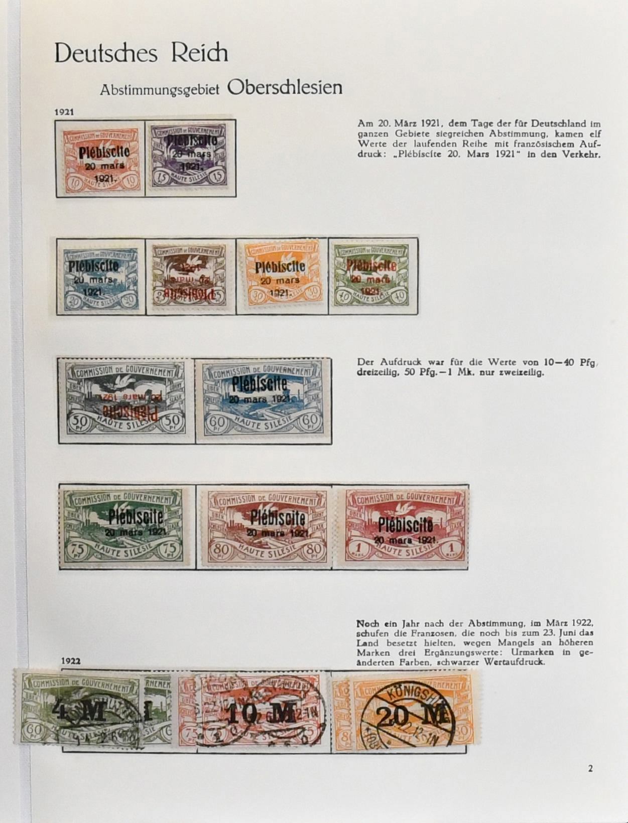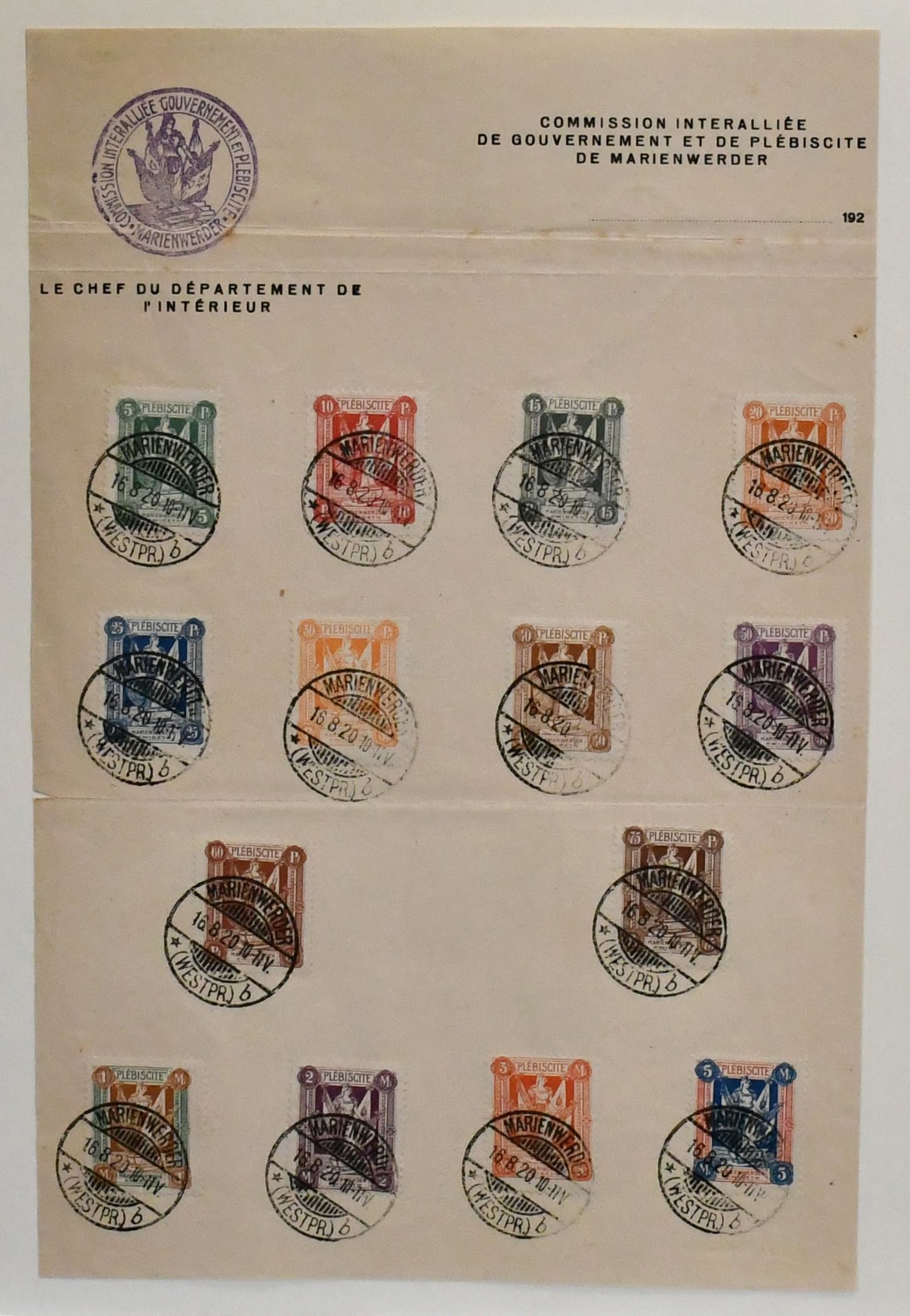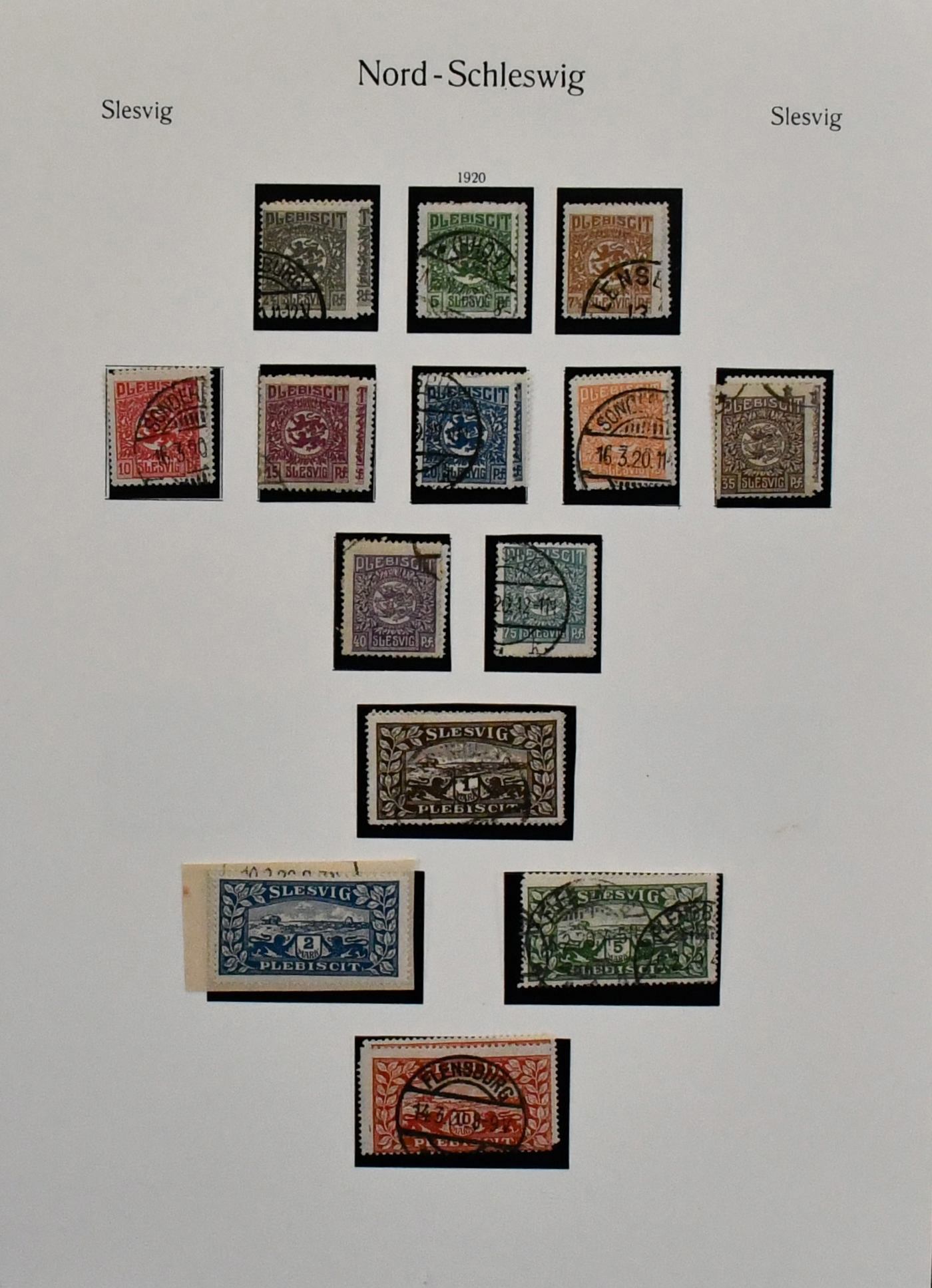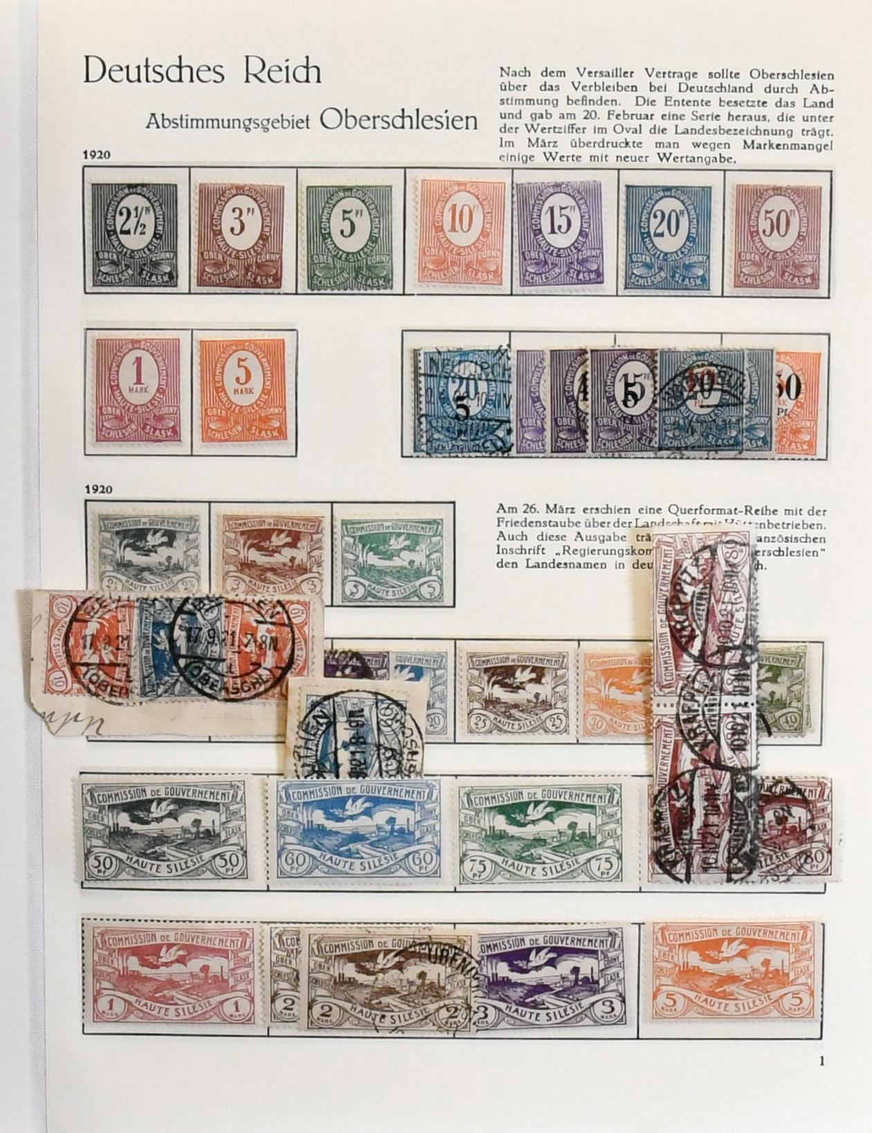 Deutsche Abstimmungsgebiete, Allenstein bis Schleswig, gestempelter Sammlungsteil mit Allenstein Nr. 1-28 überkpl. (Farben), Marienwerder Nr. 1-14B teils dopp. mit Wz., Oberschlesien mit Briefstück Nr. 10F mit Altprüfung, 11DD, 12Va, 13-43 überkpl., teils Farben, Dienst, Östl. Oberschlesien Nr. 1-20, Schleswig Nr. 1-23
