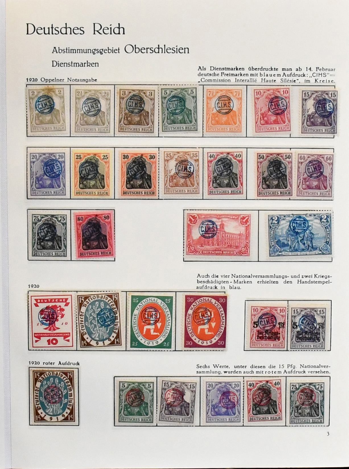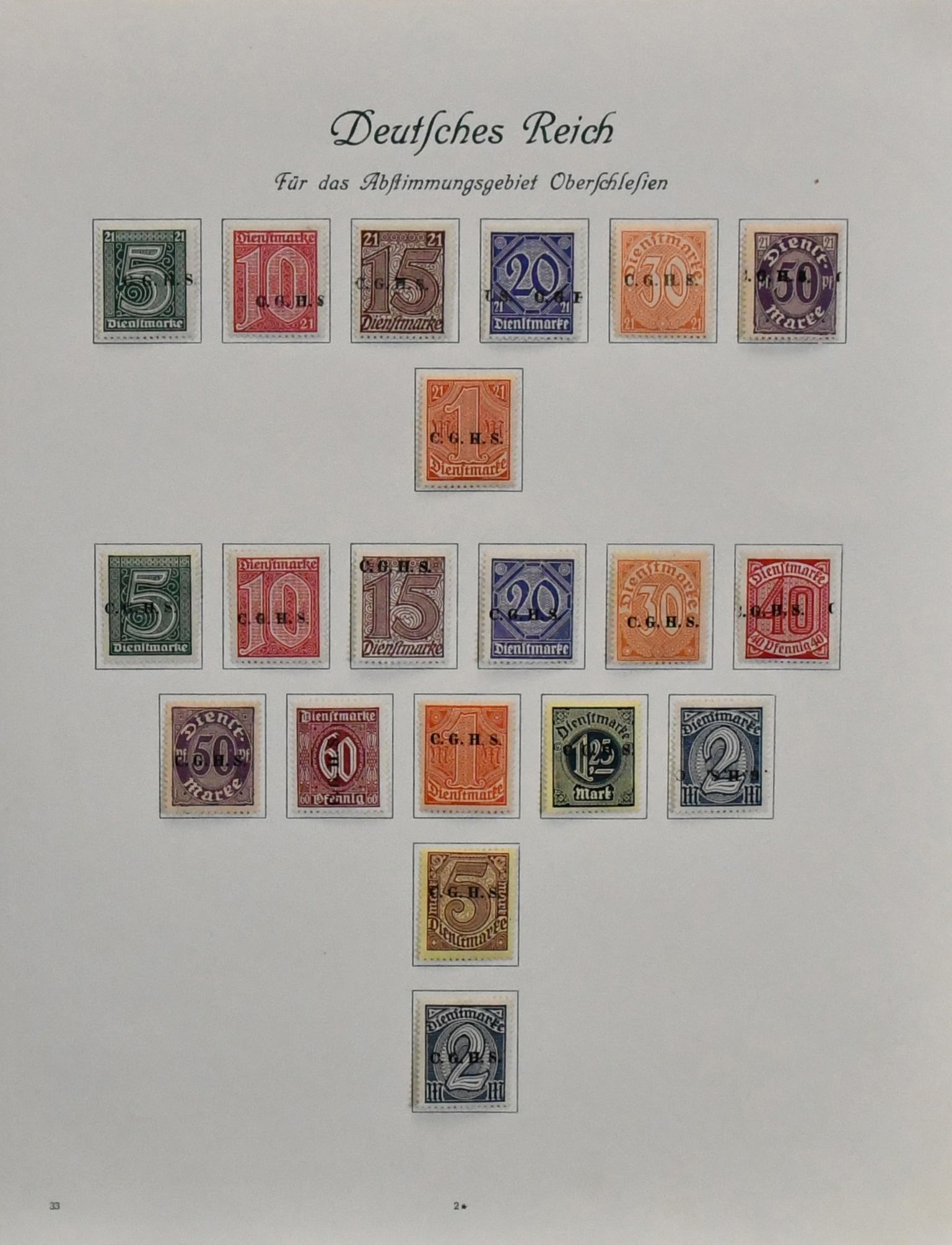 Oberschlesien, ungebr. Slg. ab Nr. 1/12, mit viermal Nr. 10F, alle mit Altsignaturen, ferner Dienst Nr. 1/20 mehrf., teils auch gest., mit insgesamt rund 90 Werten etc., auf alten Borek-Vordrucken