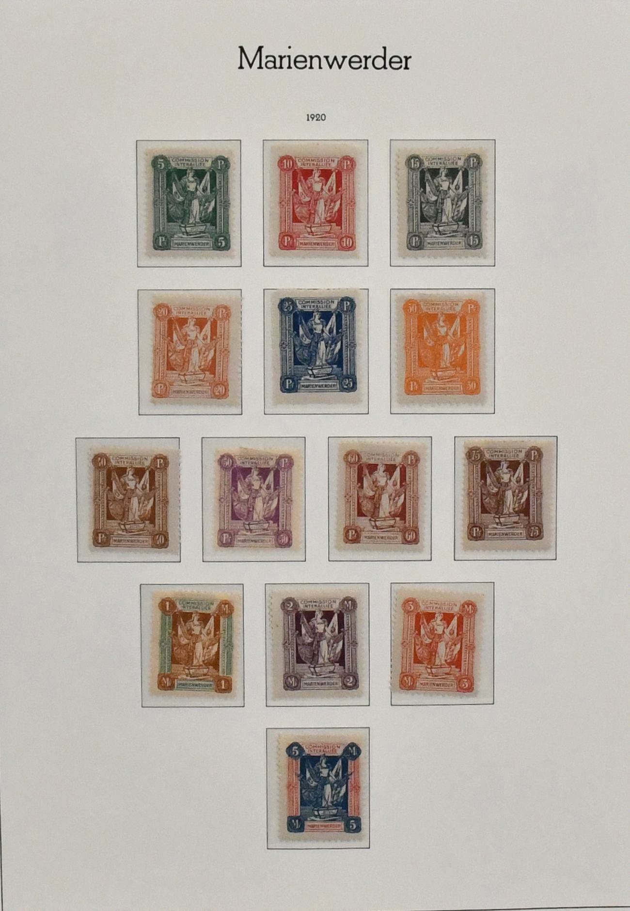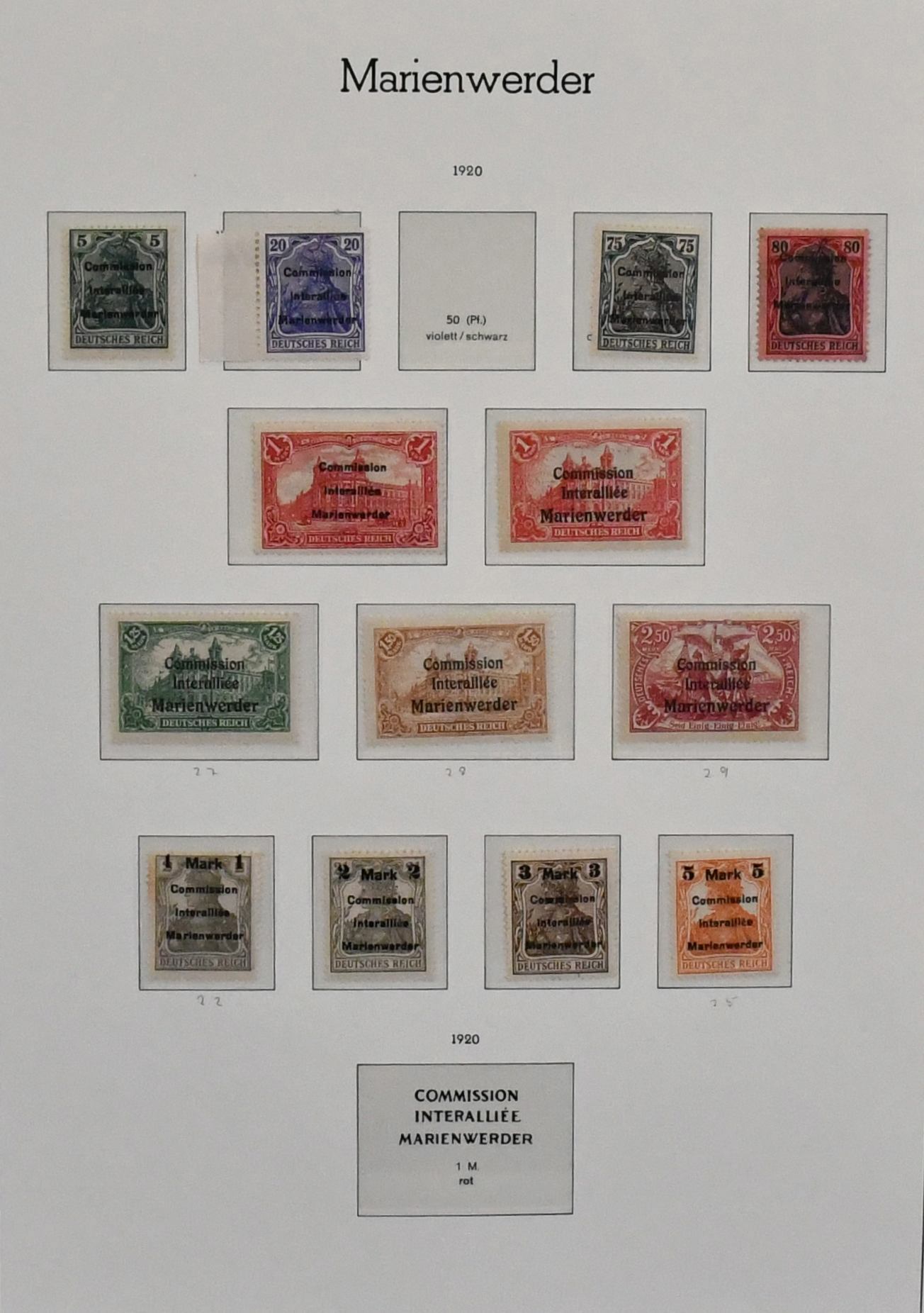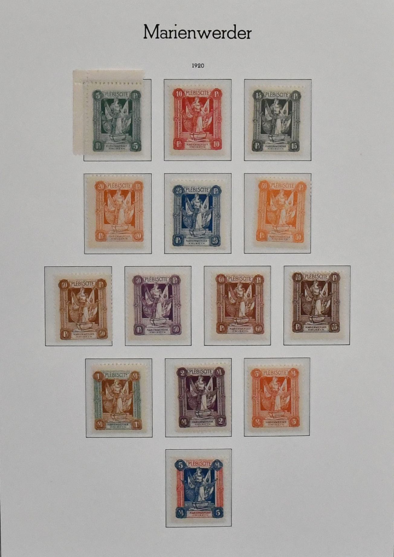 Marienwerder, bis auf Nr. 17 und 21 nahezu kpl. Sammlung, mit Nr. 1/14, 19/20 (Mi. 190,-), 22/25 (Mi. billigst 100,-), 30/43 postfr. u. gest. (305,-) usw., auf Leuchtturm-Vordrucken